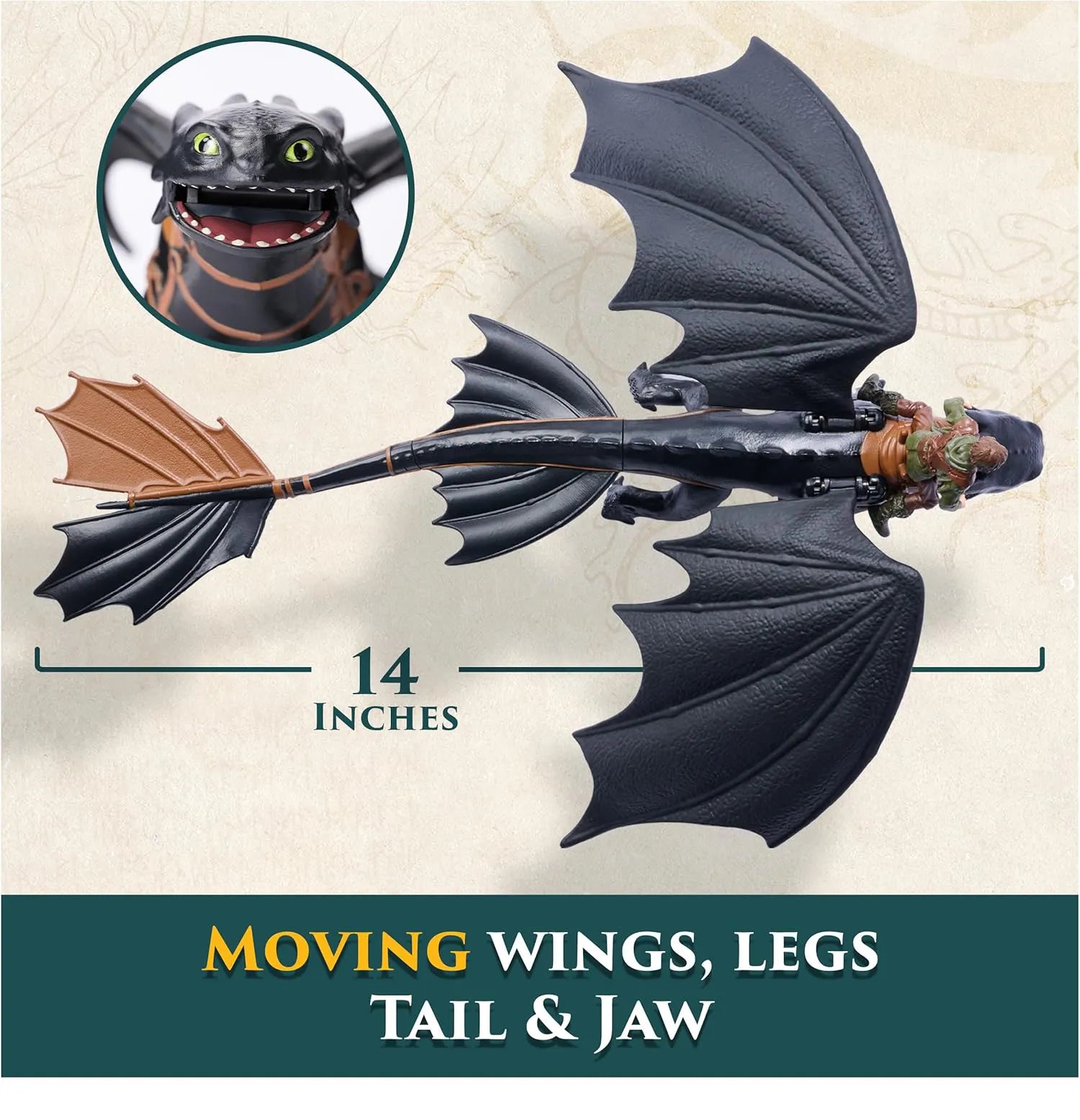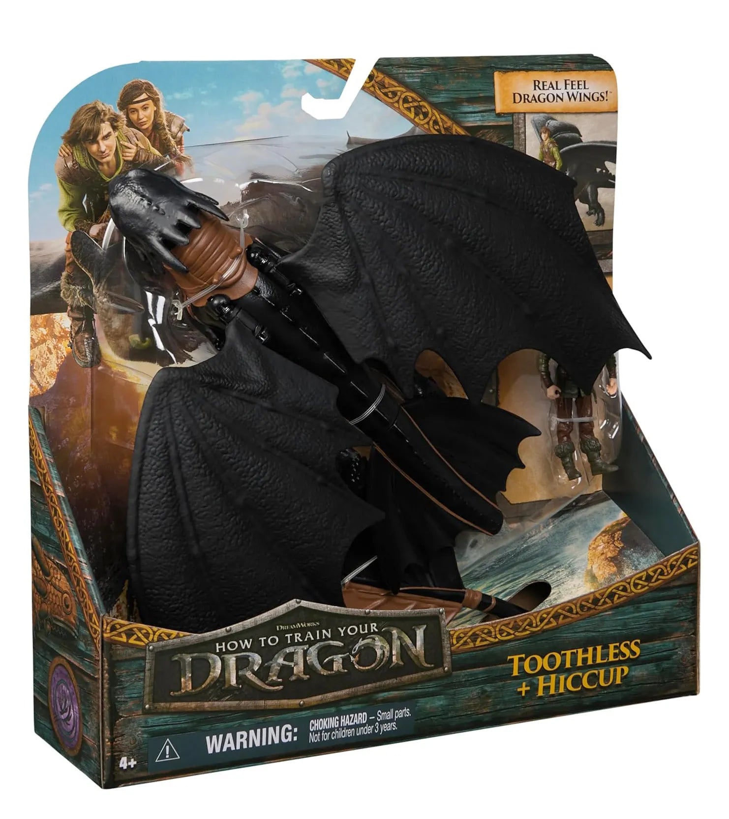 • Dragon & Viking Rider: Create thrilling How To Train Your Dragon adventures with a 3-inch Hiccup action figure and 13-inch Toothless dragon toy, with real feel dragon wings and movable limbs