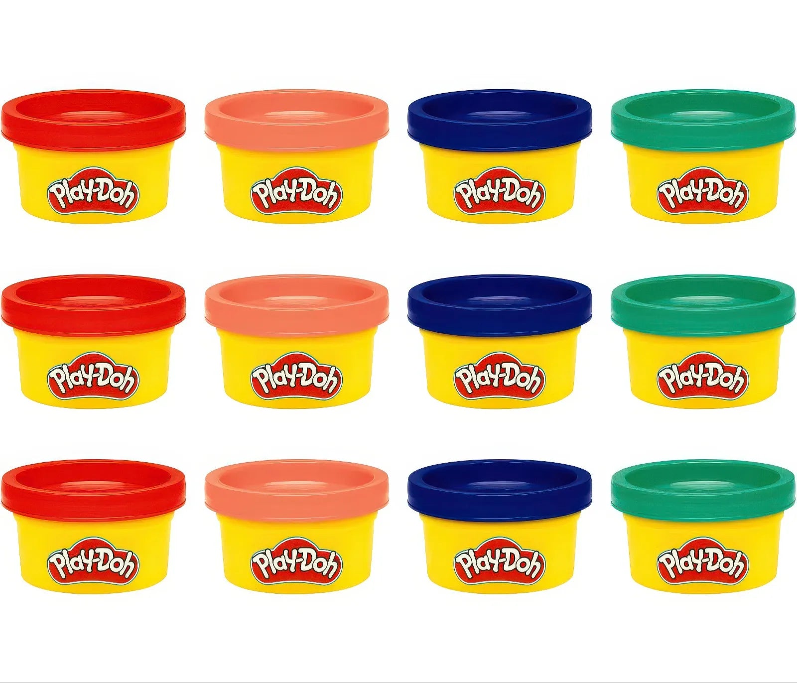• 12 mini Play-Doh cans – 4 different colours with 3 cans of each colour for easy sharing