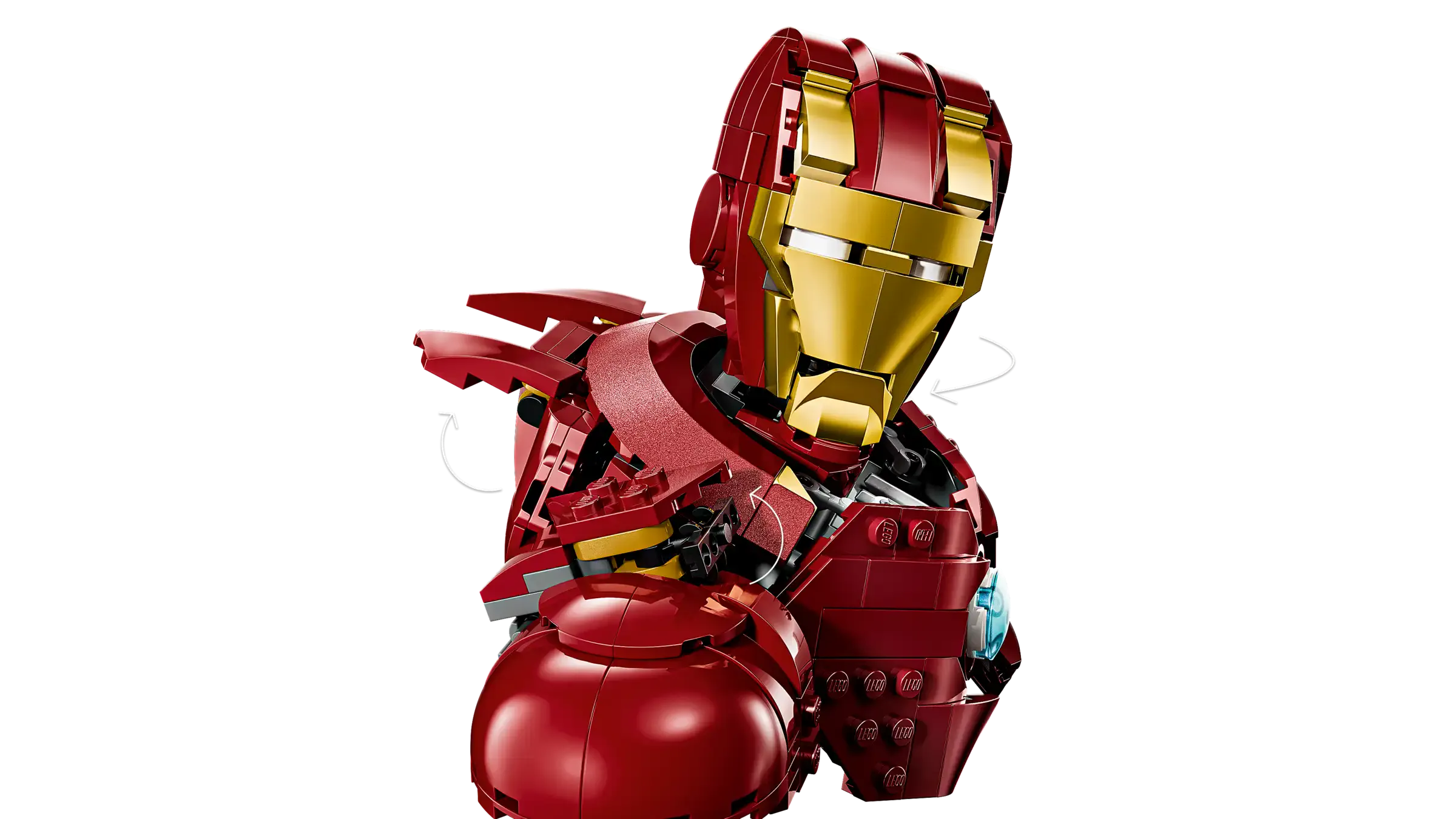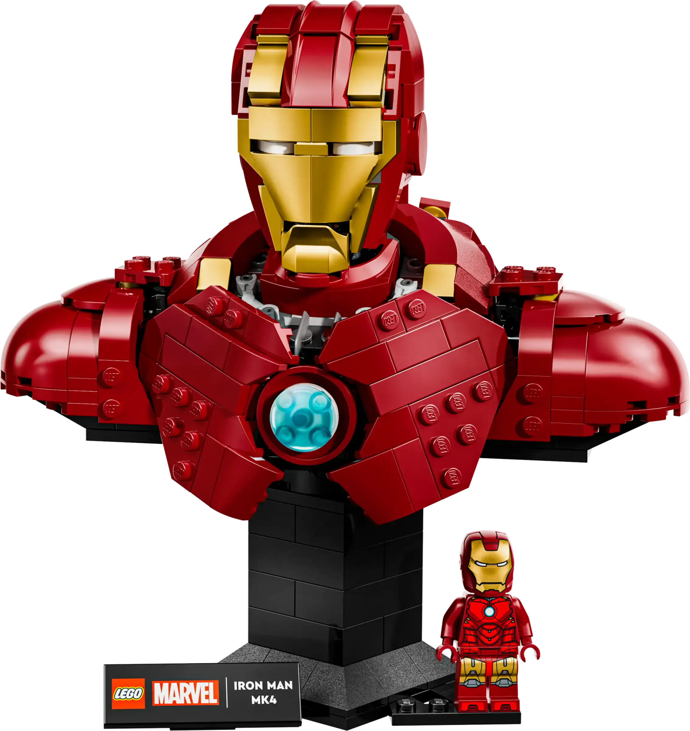 • LEGO® ǀ Marvel Iron Man figure for adults – Iron Man MK4 Bust is a collectible, build-and-display set for experienced model-makers and adult Super Hero enthusiasts