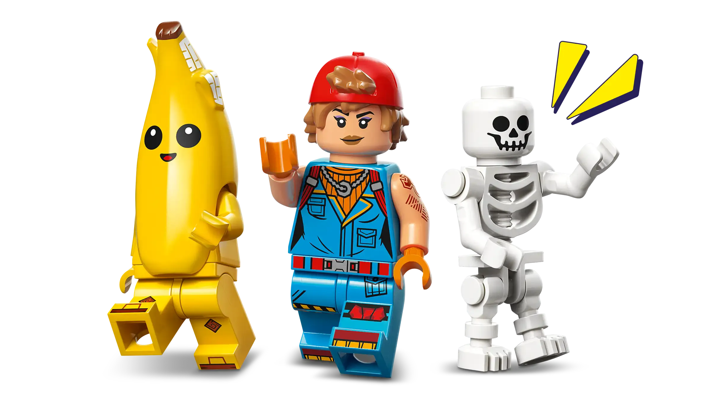• Video game figures – Includes Peely, Sparkplug and skeleton minifigures, as well as a Supply Llama figure and a wolf figure with a movable tail and legs so kids can act out different scenes