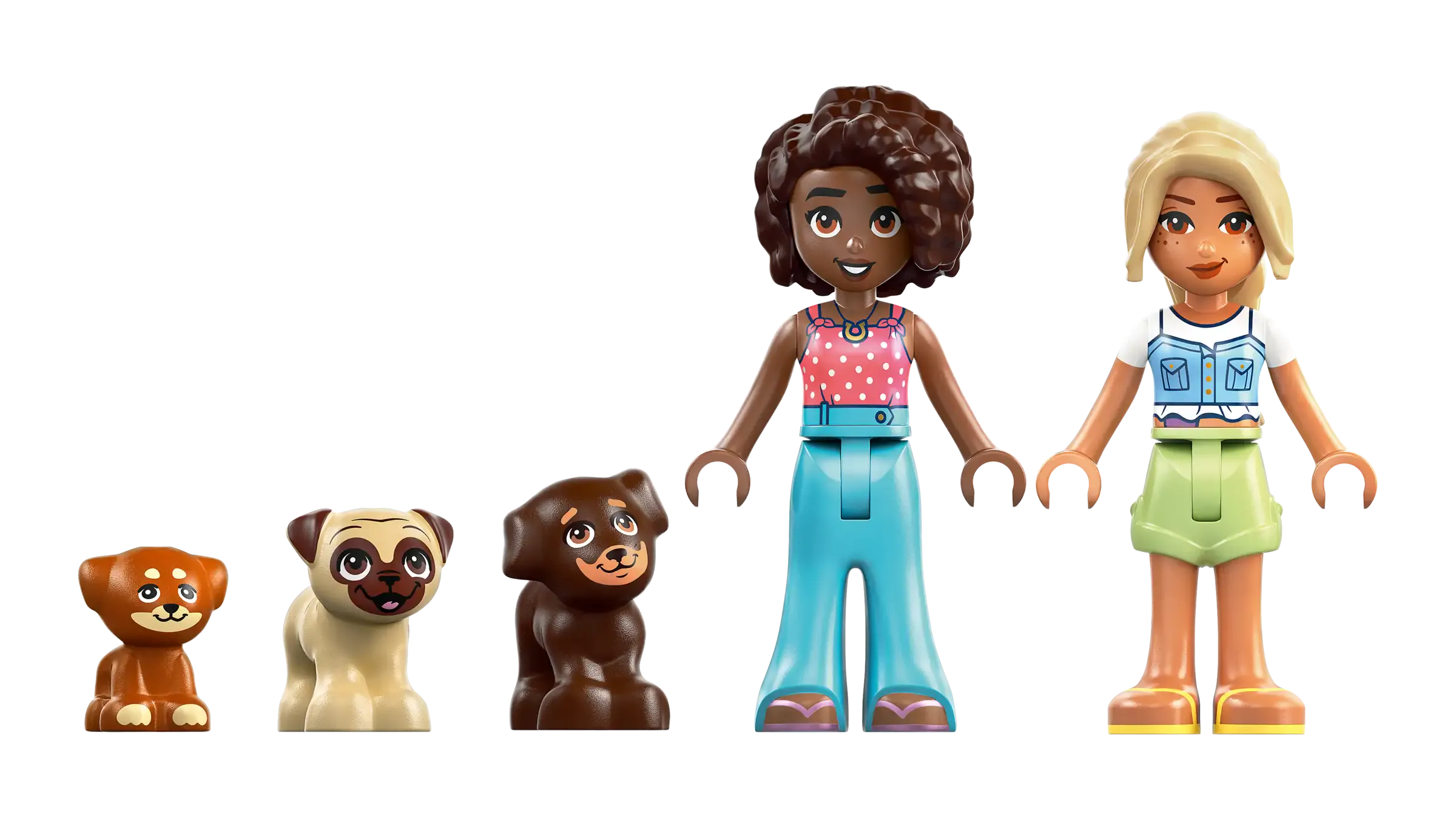 2 LEGO® Friends mini-dolls and 3 dog figures – This set comes with Aliya and Sara mini-dolls, plus puppies Aira, Dango and Maple, so kids can explore social situations and create friendship stories