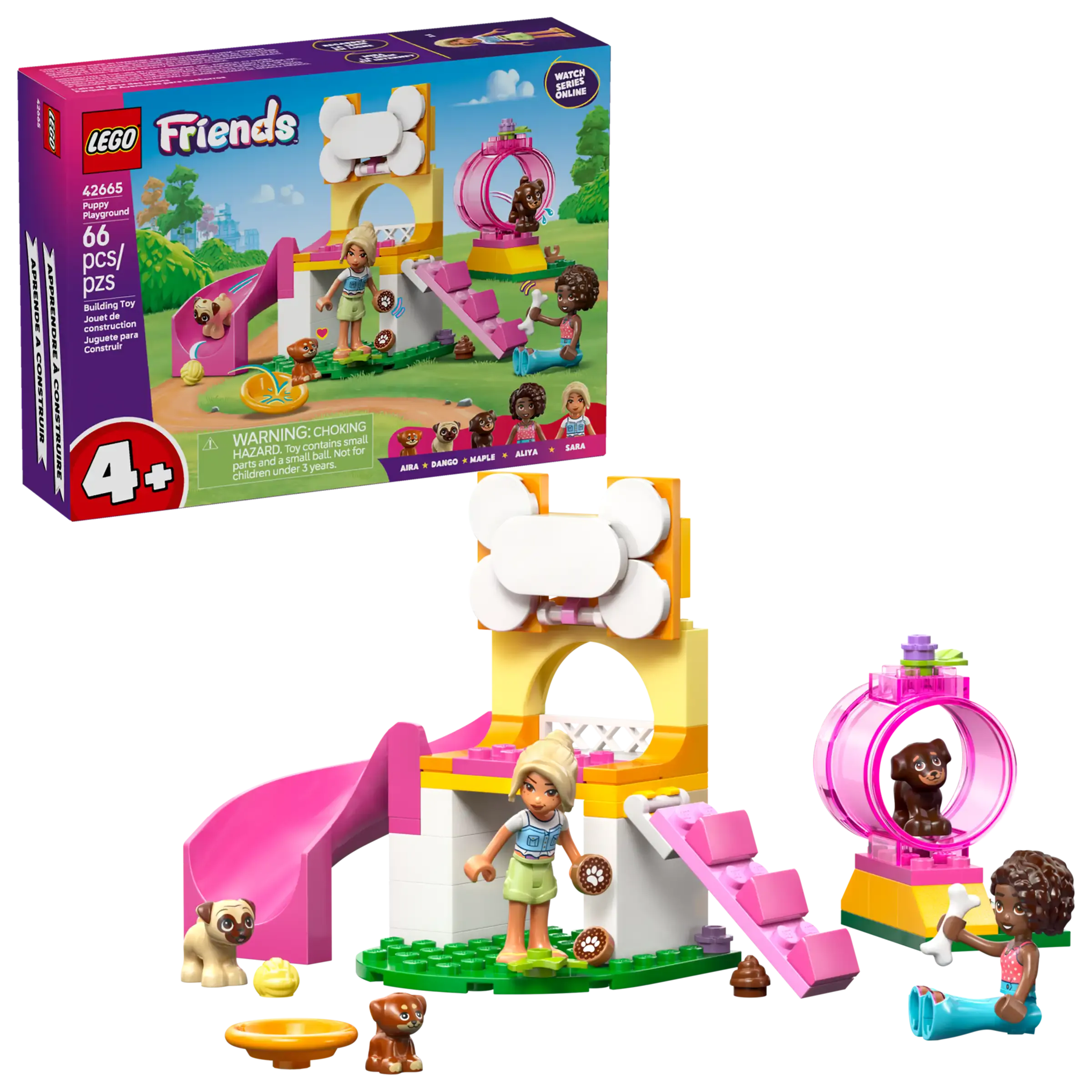 • Building kit packed with puppy power – This kids’ LEGO® Friends Puppy Playground for girls and boys aged 4 and up features a buildable playground, 2 mini-dolls, 3 dog figures and accessories
