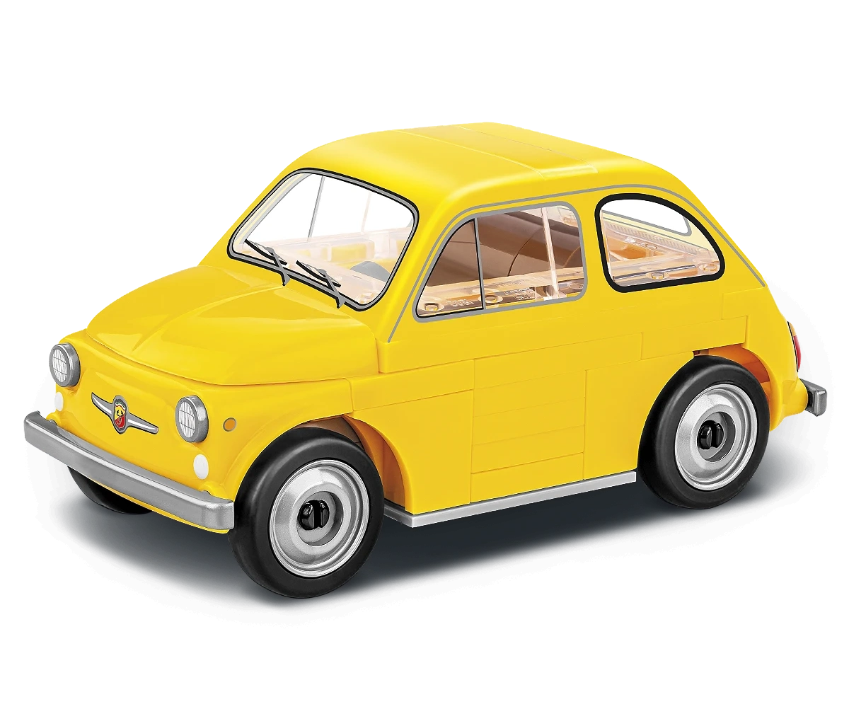 The 1:35 scale model, composed of 100% COBI bricks, faithfully reflects the characteristic shape of the legendary Fiat Abarth 595 car. In this model we did not use any stickers. They have been replaced with durable prints that do not wear off even during intense play. Rotating wheels equipped with tires are perfect for moving the model during play. Once built the model is 9cm long and the set also includes a plate with the name of the car.
