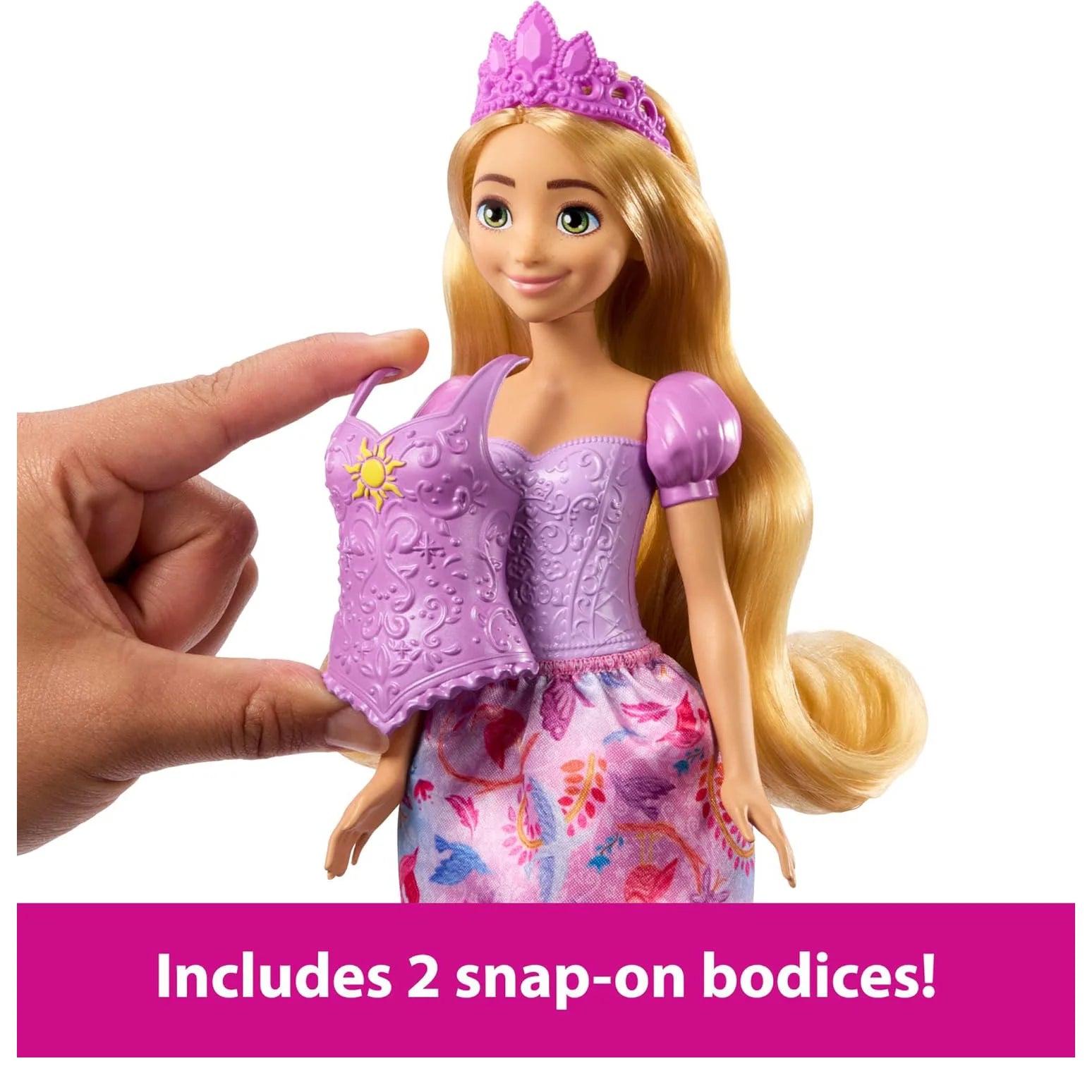 Mattel Disney Rapunzel Fashion Doll 28cm with 2 Looks, 9 Accessories, 2 Snap-On Bodices & 2 Skirts, 2-in-1 Stories Inspired by Disney Tangled