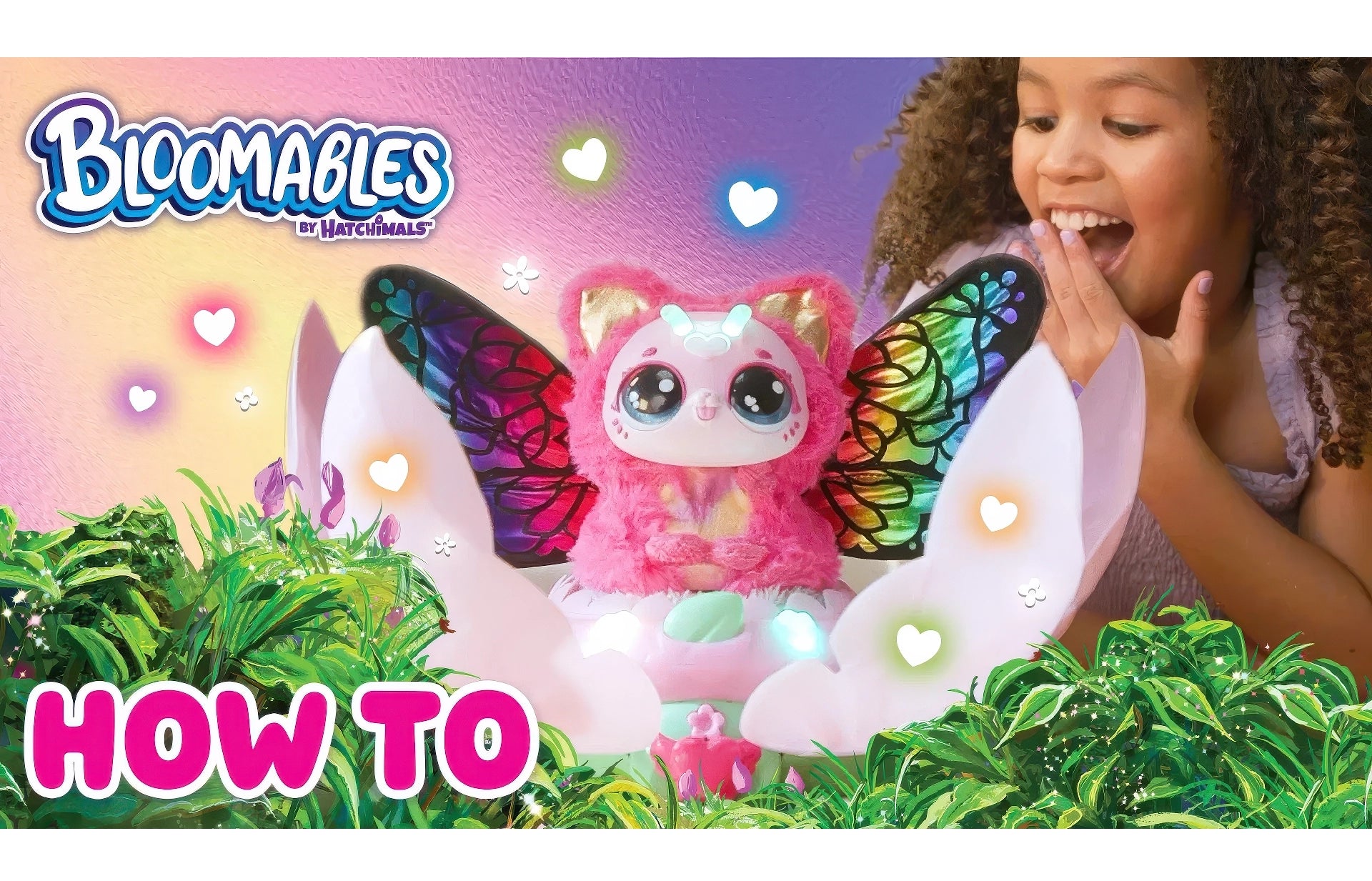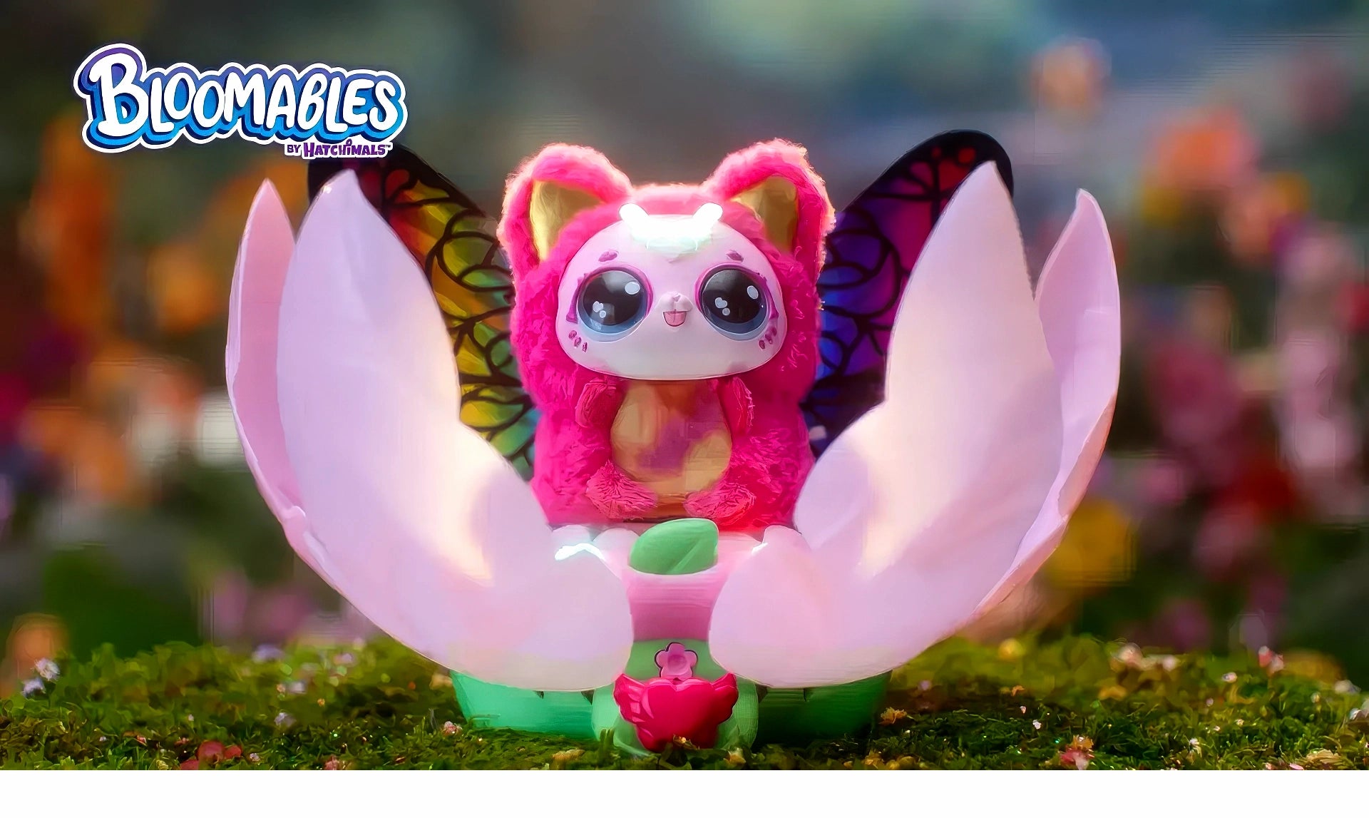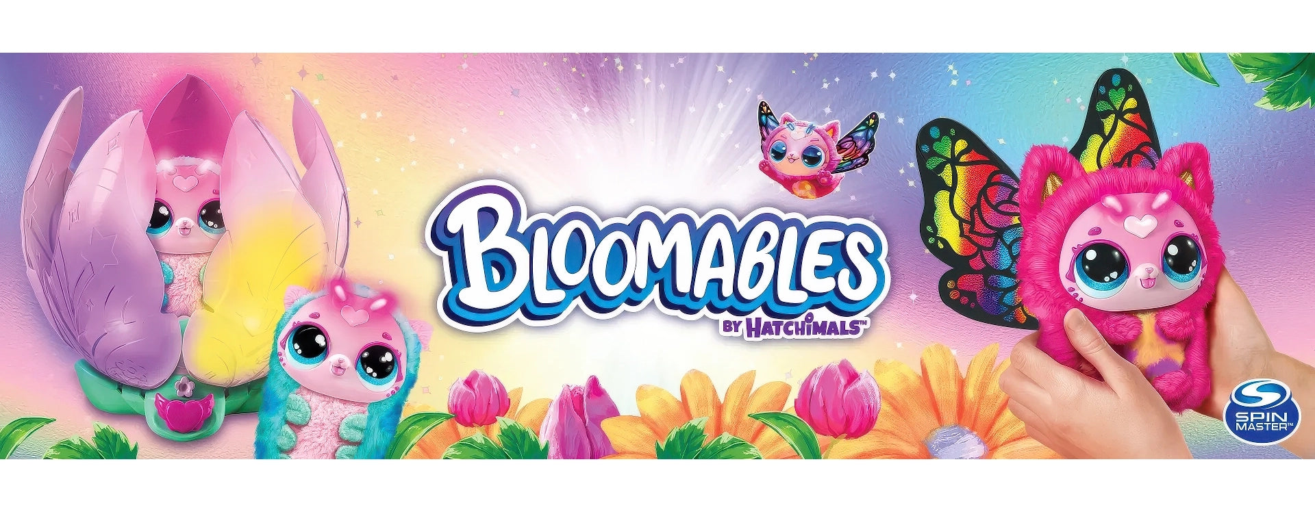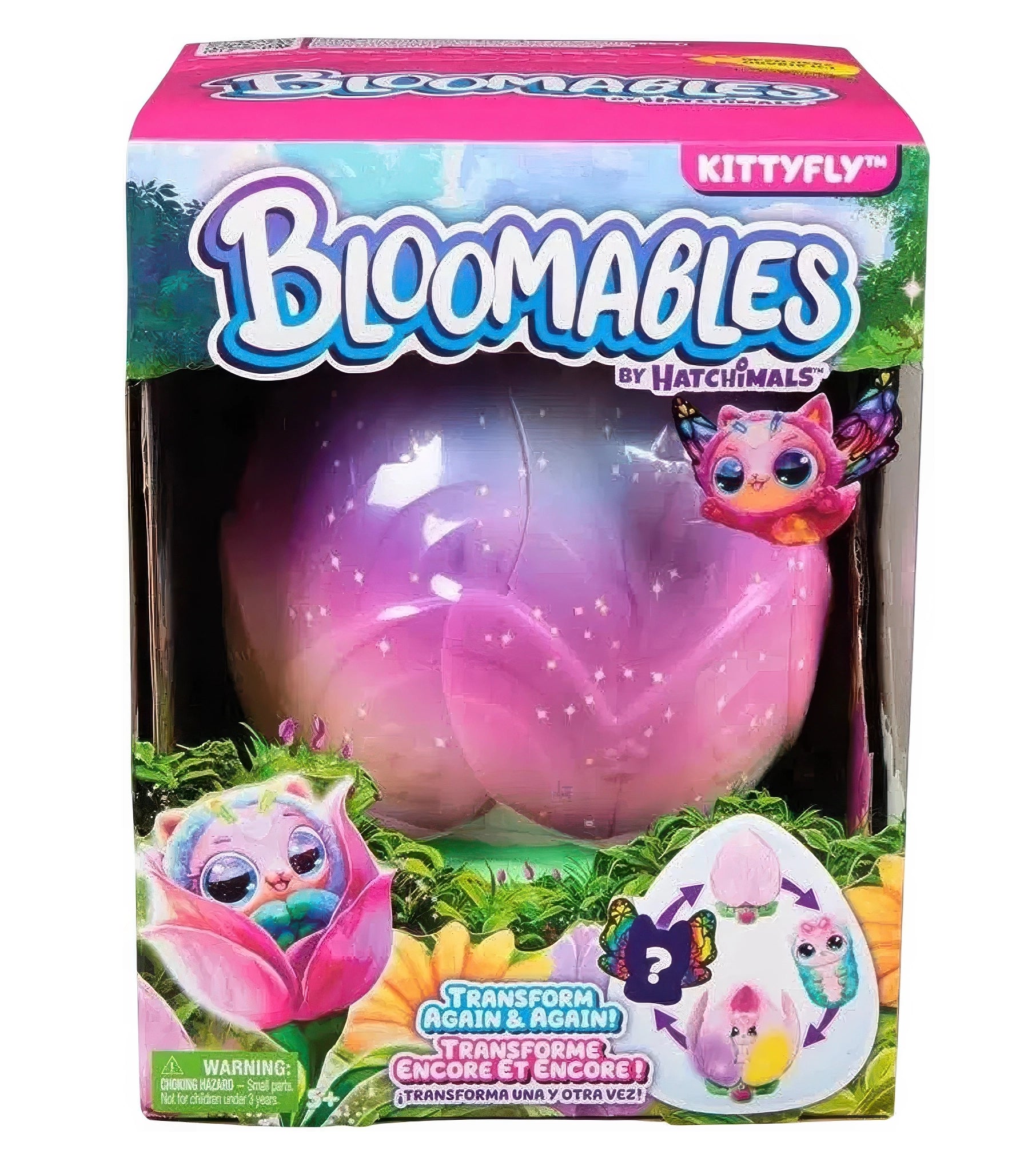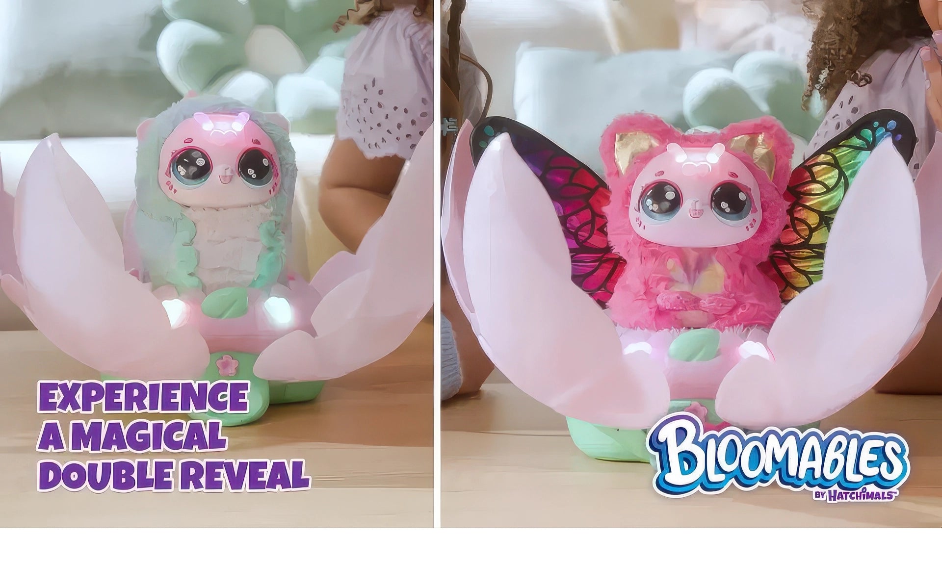 Bloomables by Hatchimals are in bloom! In Kittyfly Surprise, you'll discover 1 of 2 mystery plush pets with over 100 unique sounds and reactions, and a repeatable double reveal that transforms with love!