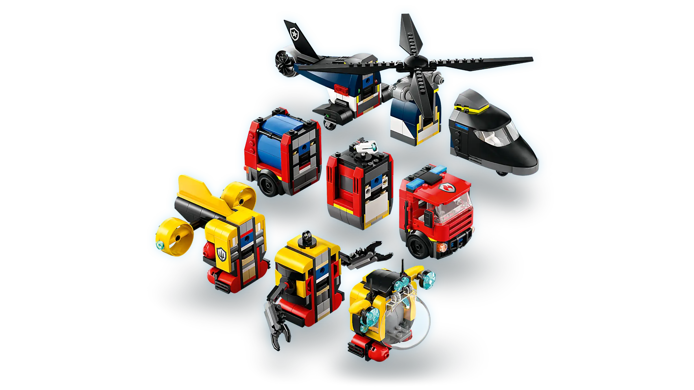 This helicopter, fire truck, and submarine toy playset includes a printed building guide and 3D instructions in the LEGO Builder app – a digital building companion with intuitive zoom and rotate tools. This allows kids to visualize models from all angles as they build.