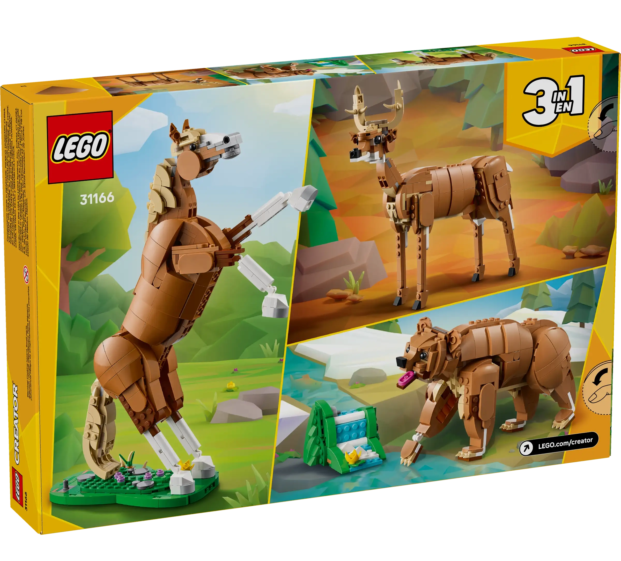 Kids have 3 different building options with the same set of bricks: a posable LEGO® horse toy; a posable bear toy with a small waterfall build; or a posable elegant deer toy. All 3 animal figures in this transforming toy set make creative and fun gifts for kids.