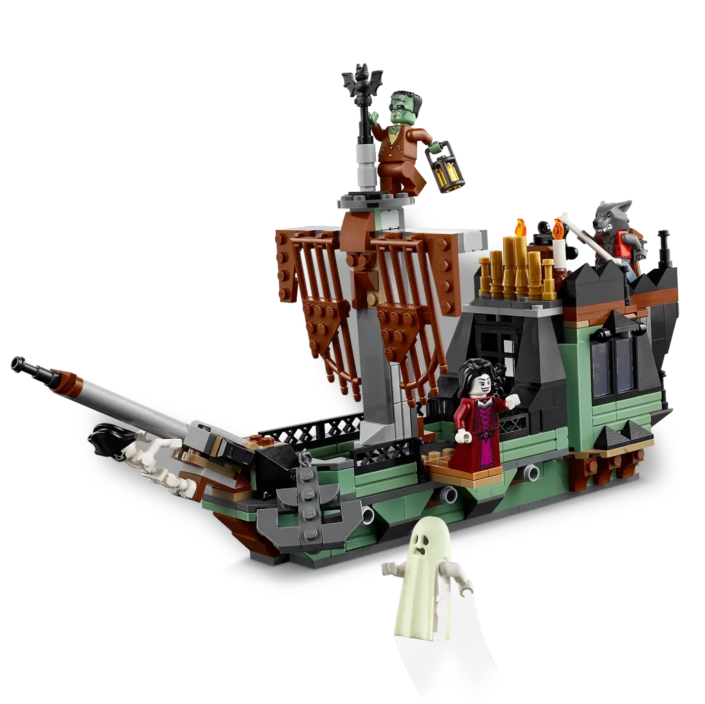 Boys and girls aged 9 plus enjoy 3 building options with the same bricks: an interactive haunted house, a haunted ship toy or a haunted train set with a platform. Each playset comes with 5 minifigure characters: a werewolf, vampire, ghost with a glow-in-the-dark cape, Frankenstein’s monster and a skeleton.