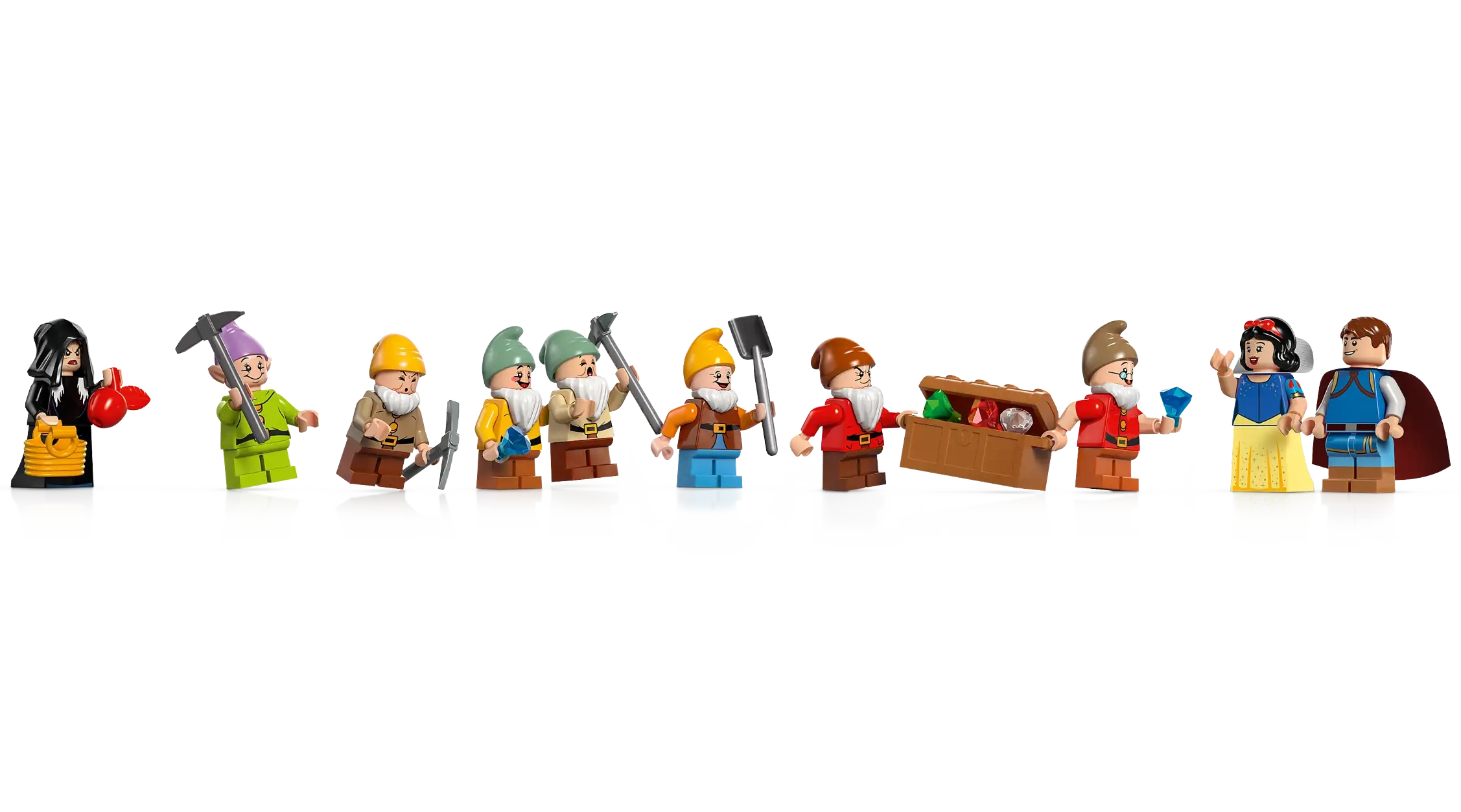 • Iconic movie characters – Featuring Snow White, the Evil Queen in Disguise, the Prince, Bashful, Doc, Dopey, Grumpy, Happy, Sleepy and Sneezy, plus 6 LEGO ǀ Disney animal figures