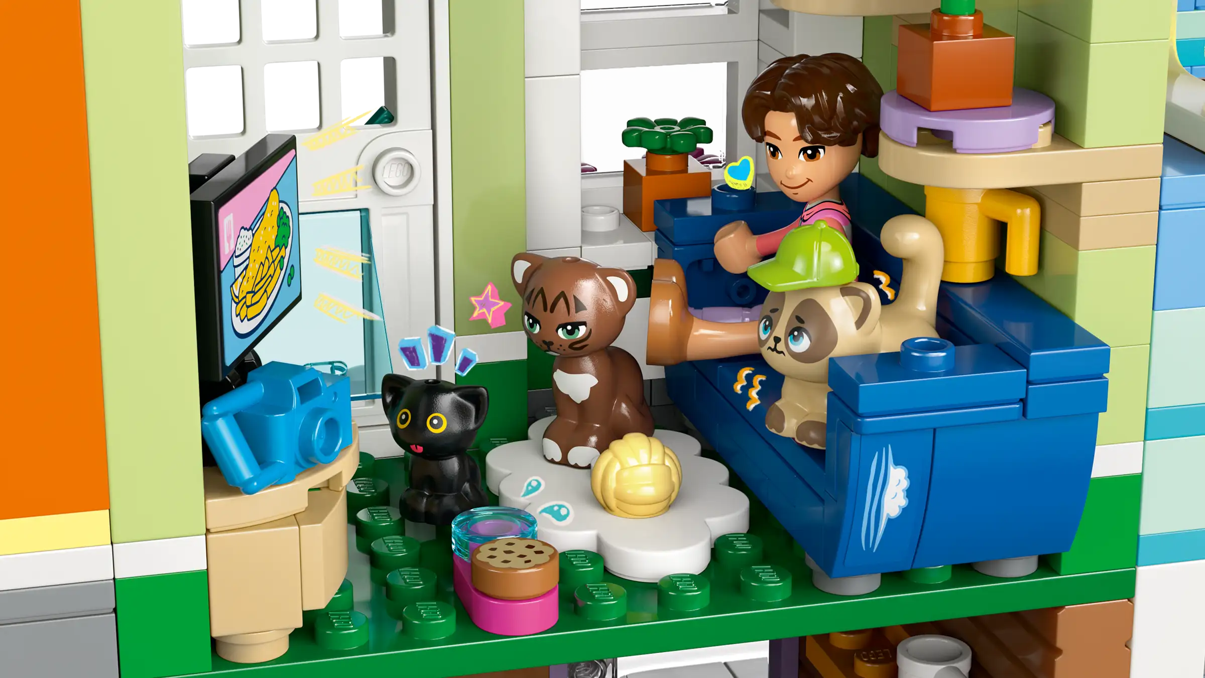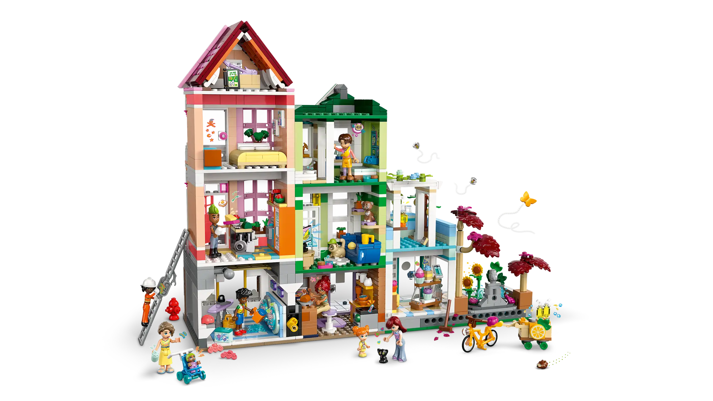 • Build the LEGO® houses – The apartments feature fun details that are personalized to the different characters, with lots of rooms and accessories to discover