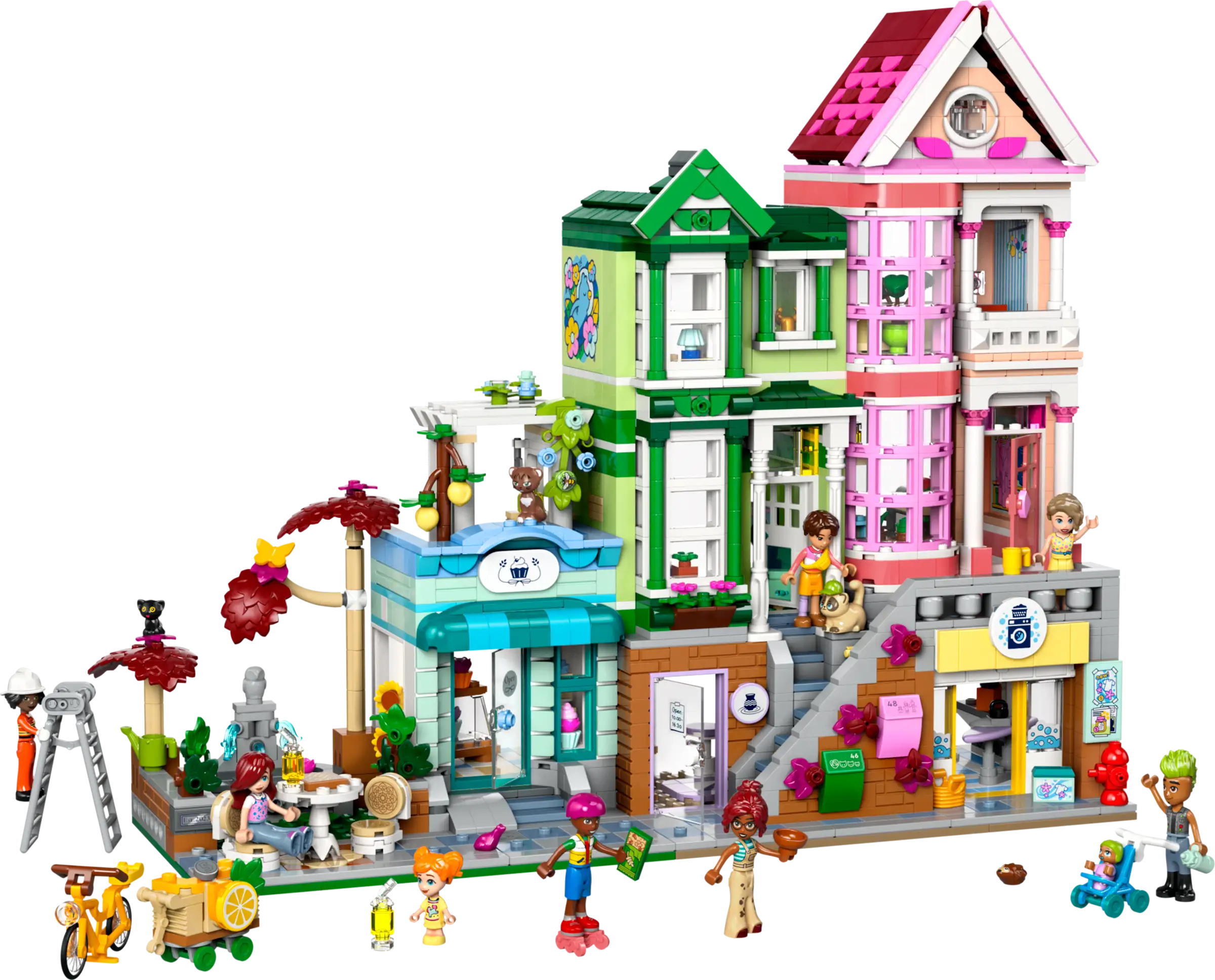 Discover a model kit full of community spirit with the LEGO® Friends Heartlake City Apartments and Stores (42670) buildable toy. This set makes a great gift for kids aged 12 years old and up and includes 3 colourful LEGO houses, a bakery, a ceramics studio, a laundromat and much more. There are lots of fun details and storylines to discover, plus 9 characters, including 7 mini-dolls and 3 cat figures.