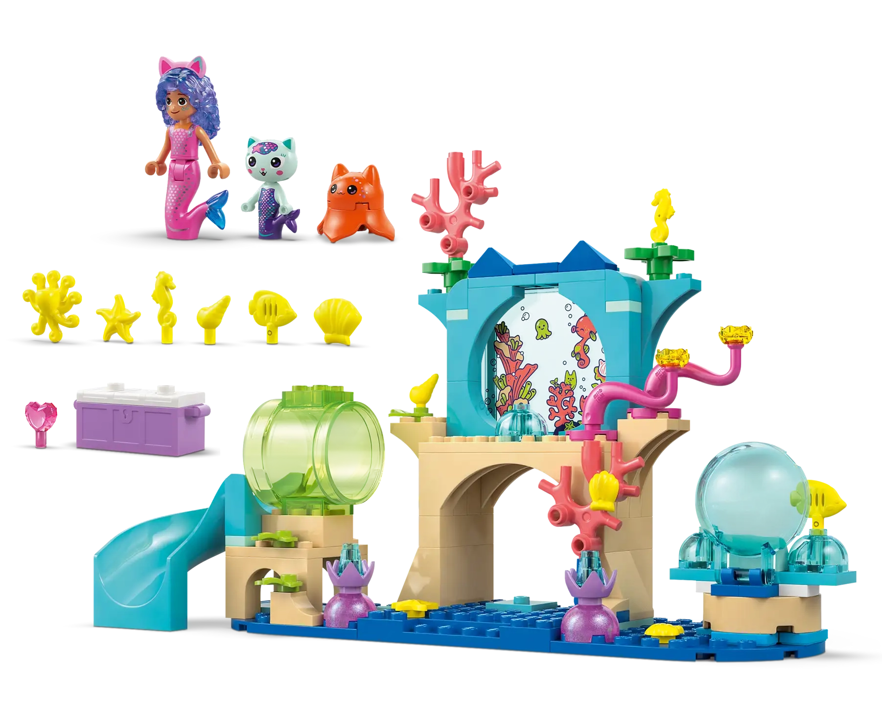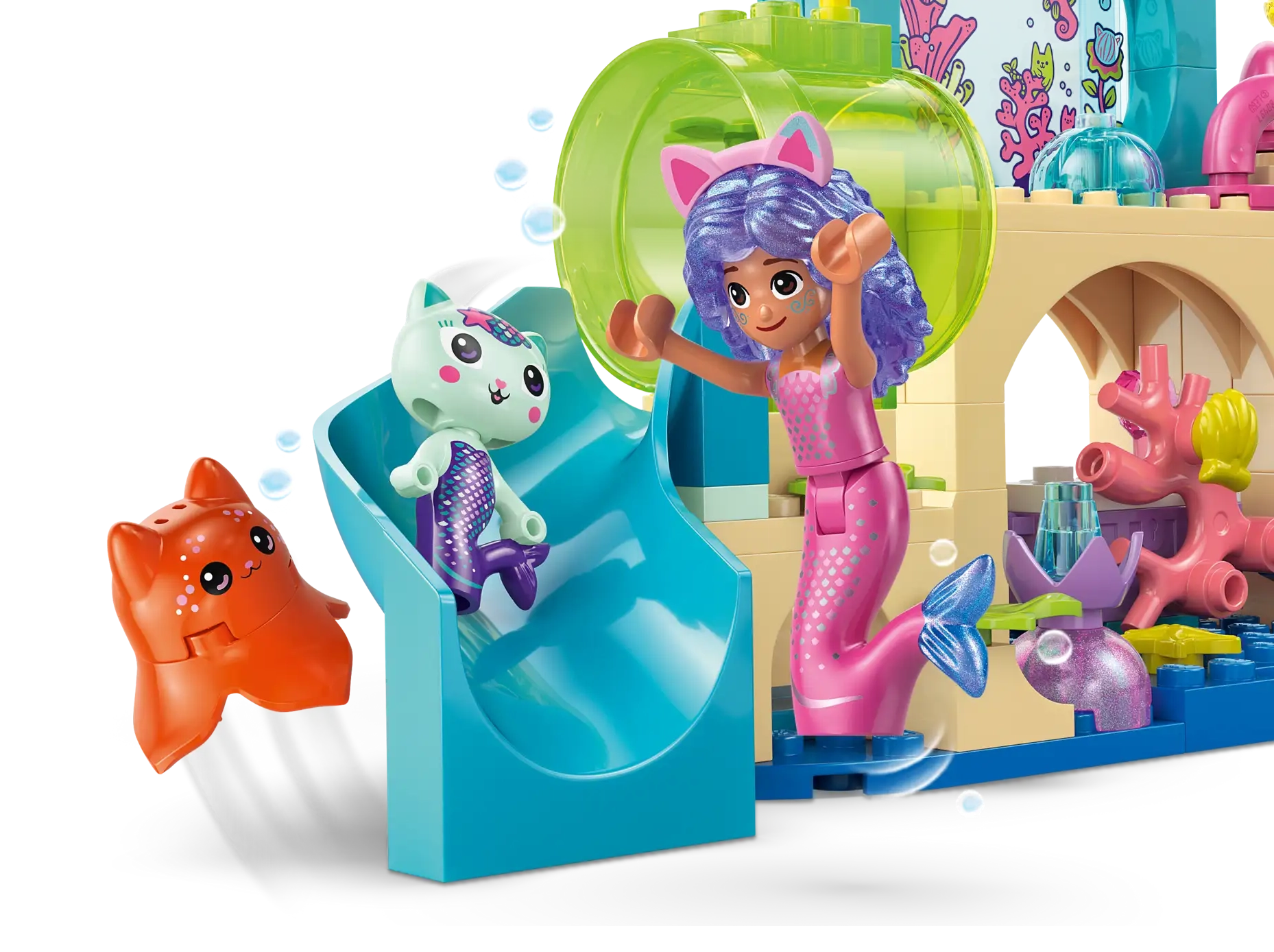 • LEGO® Gabby’s Dollhouse playset – Kids can recreate stories with Gabby and role-play aquarium adventures of their own