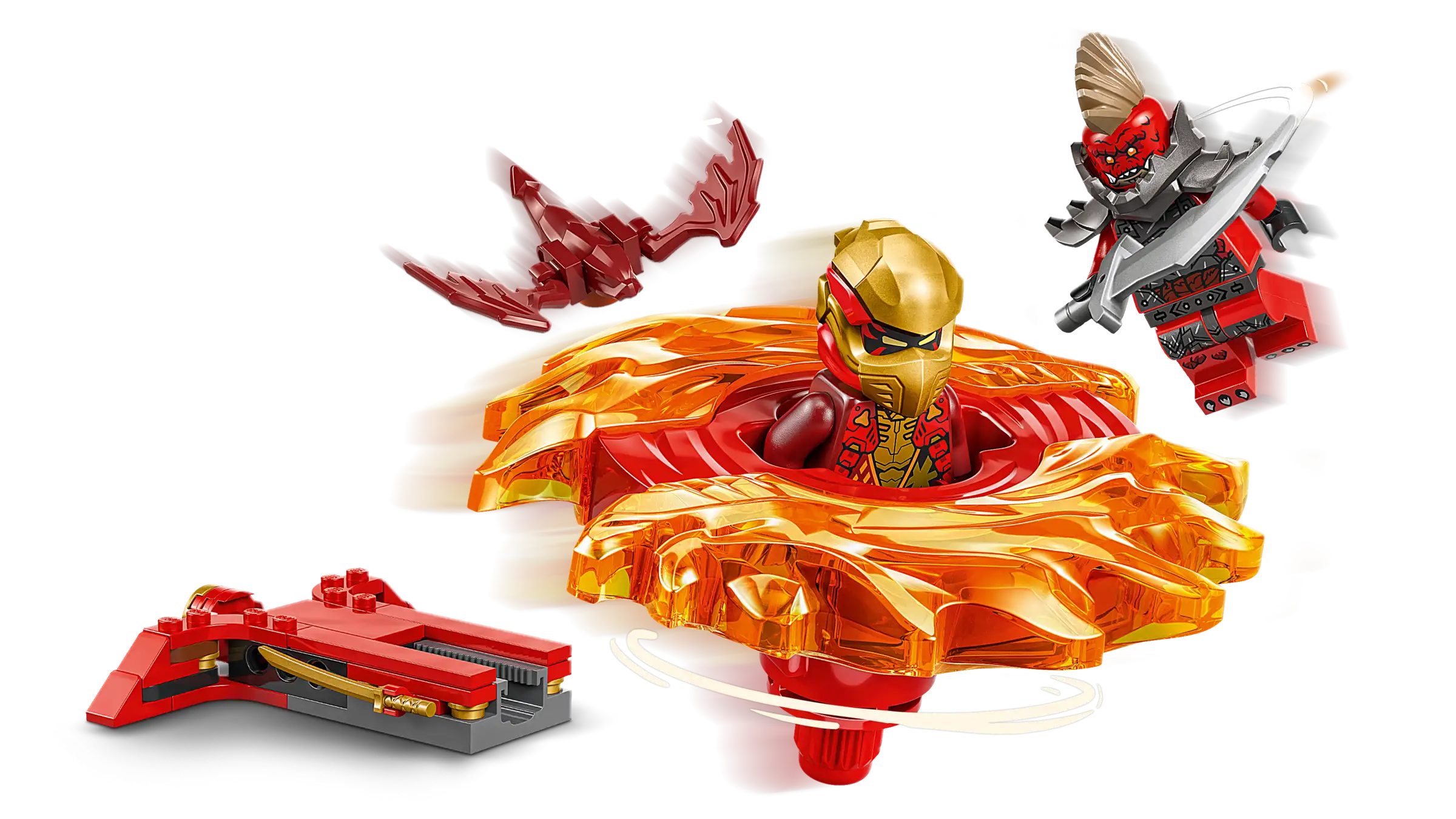 • Fast-paced spinner toy – Push the launcher’s button to unleash Kai’s Dragon Spinjitzu Spinner toy into a rapid spin and watch as 2 power elements possibly fly off when it hits its target
