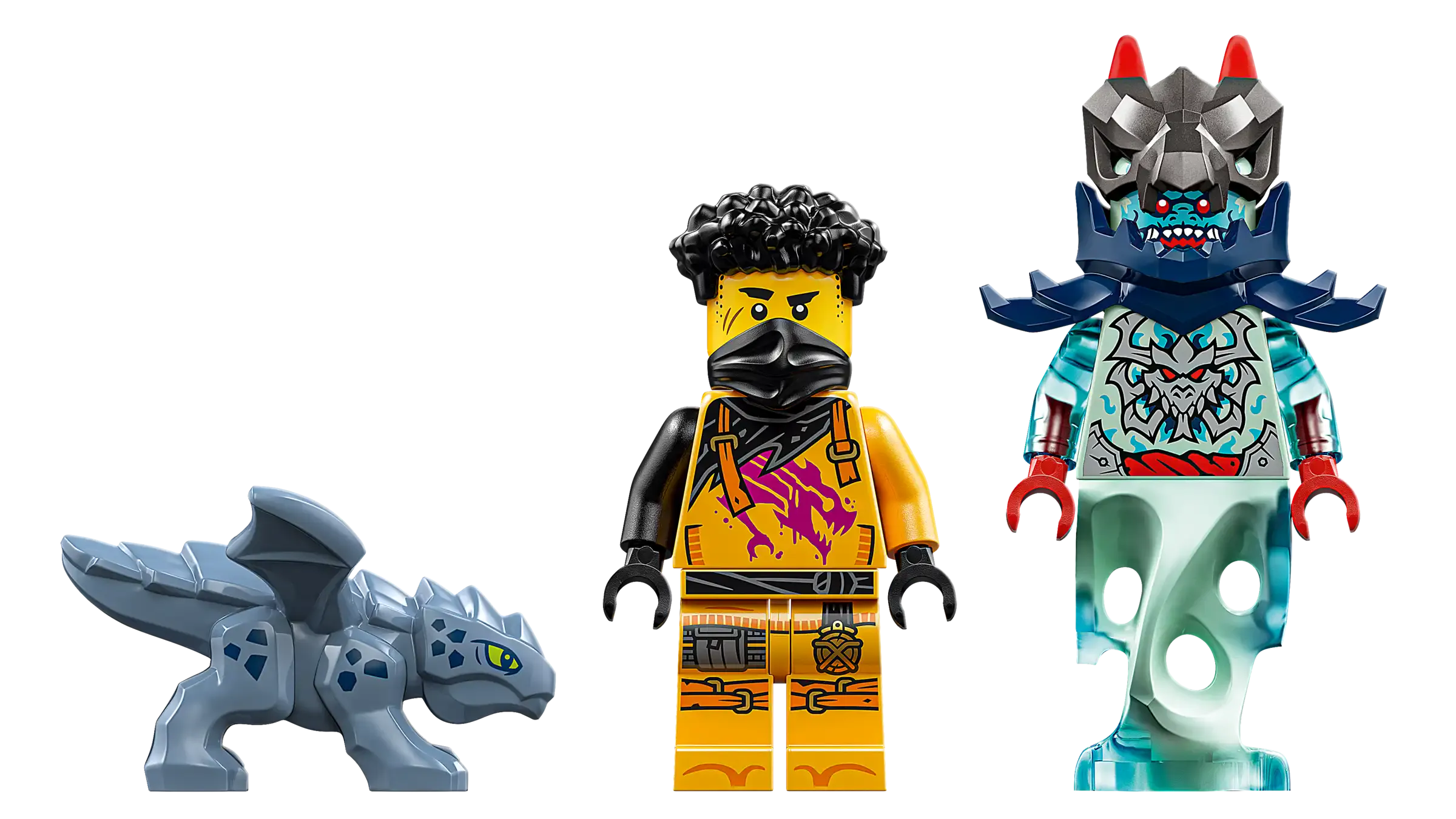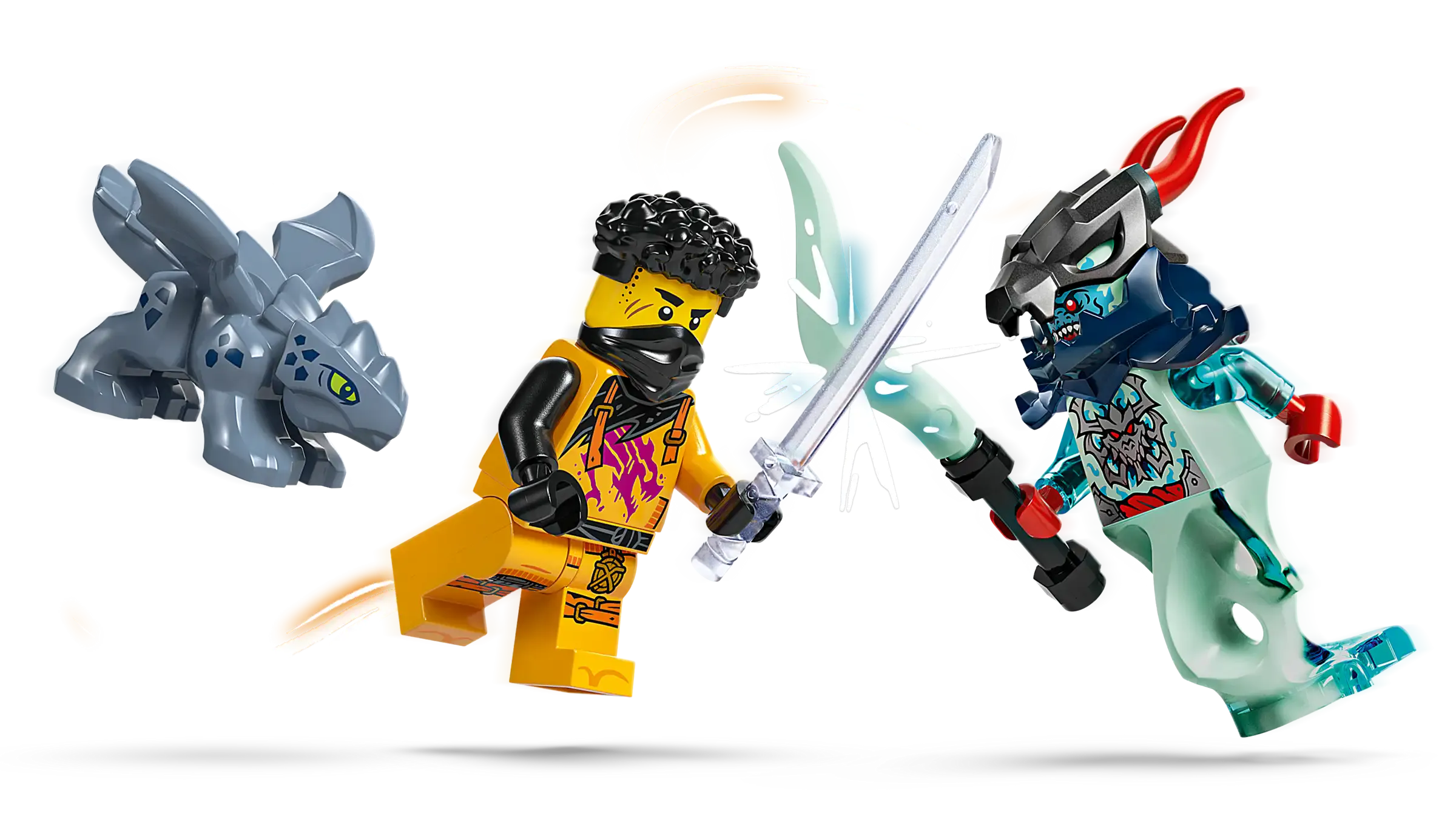 • 2 NINJAGO® minifigures – LEGO® set comes with Arin armed with a crystal katana sword accessory and a villainous Spectral Dragonian Warrior for good vs. evil battles, plus a Baby Riyu model