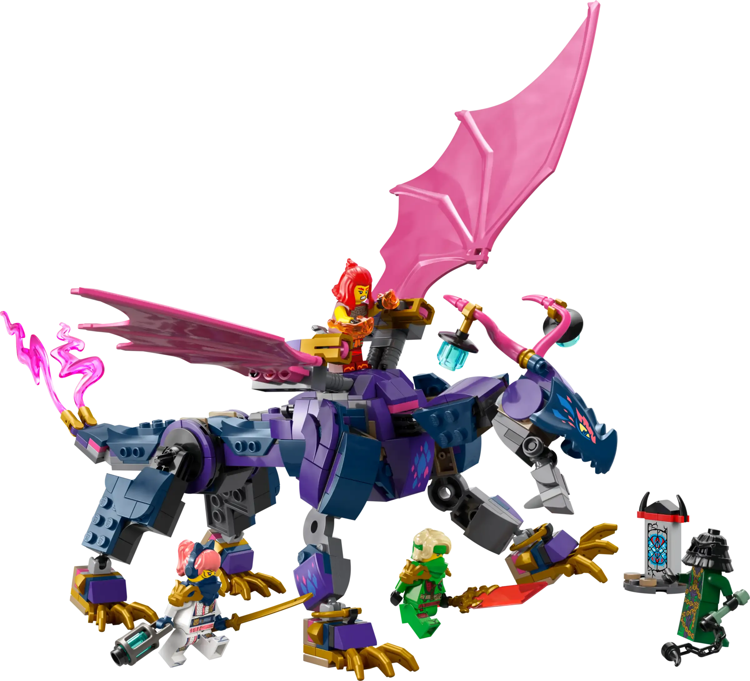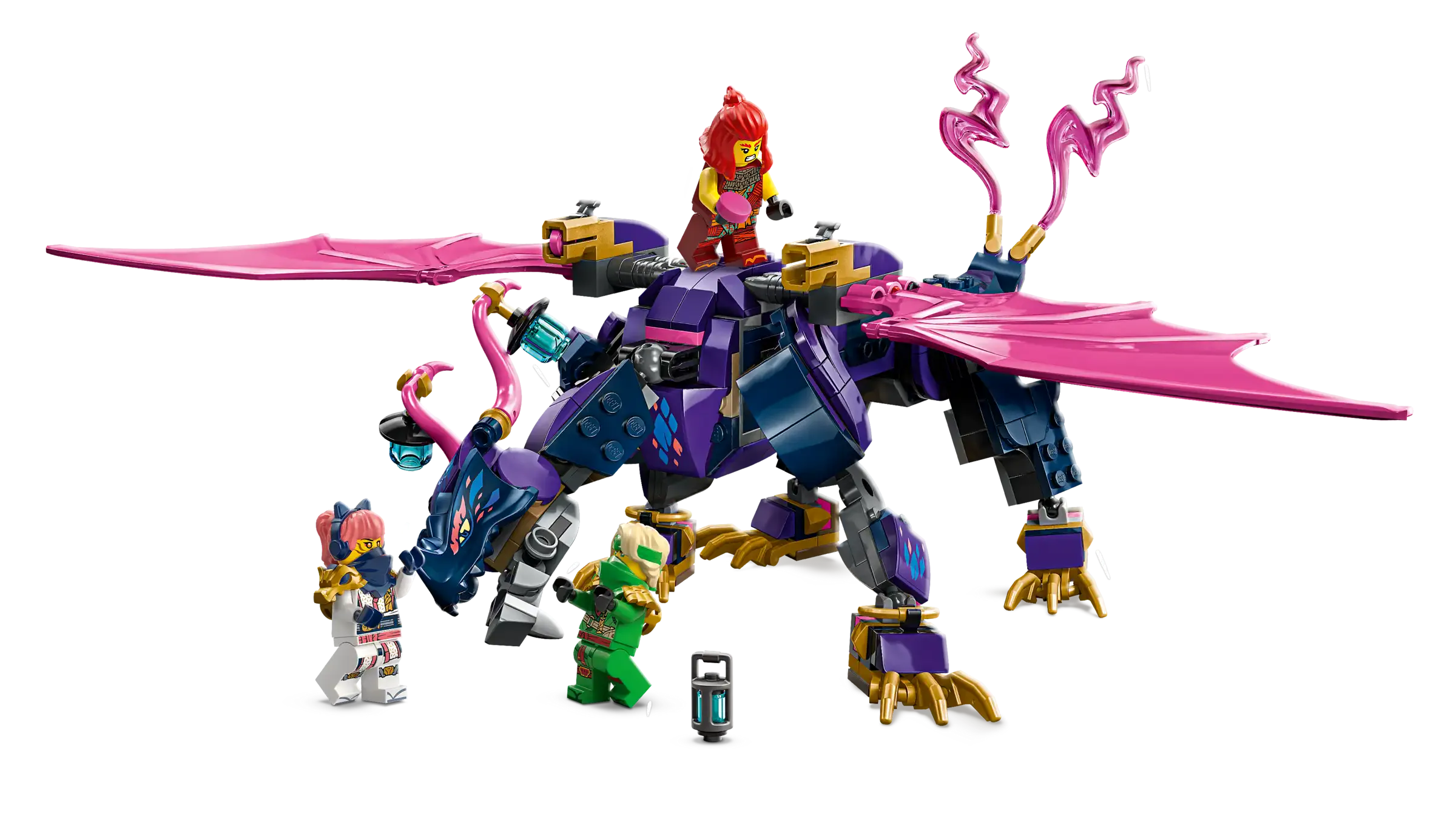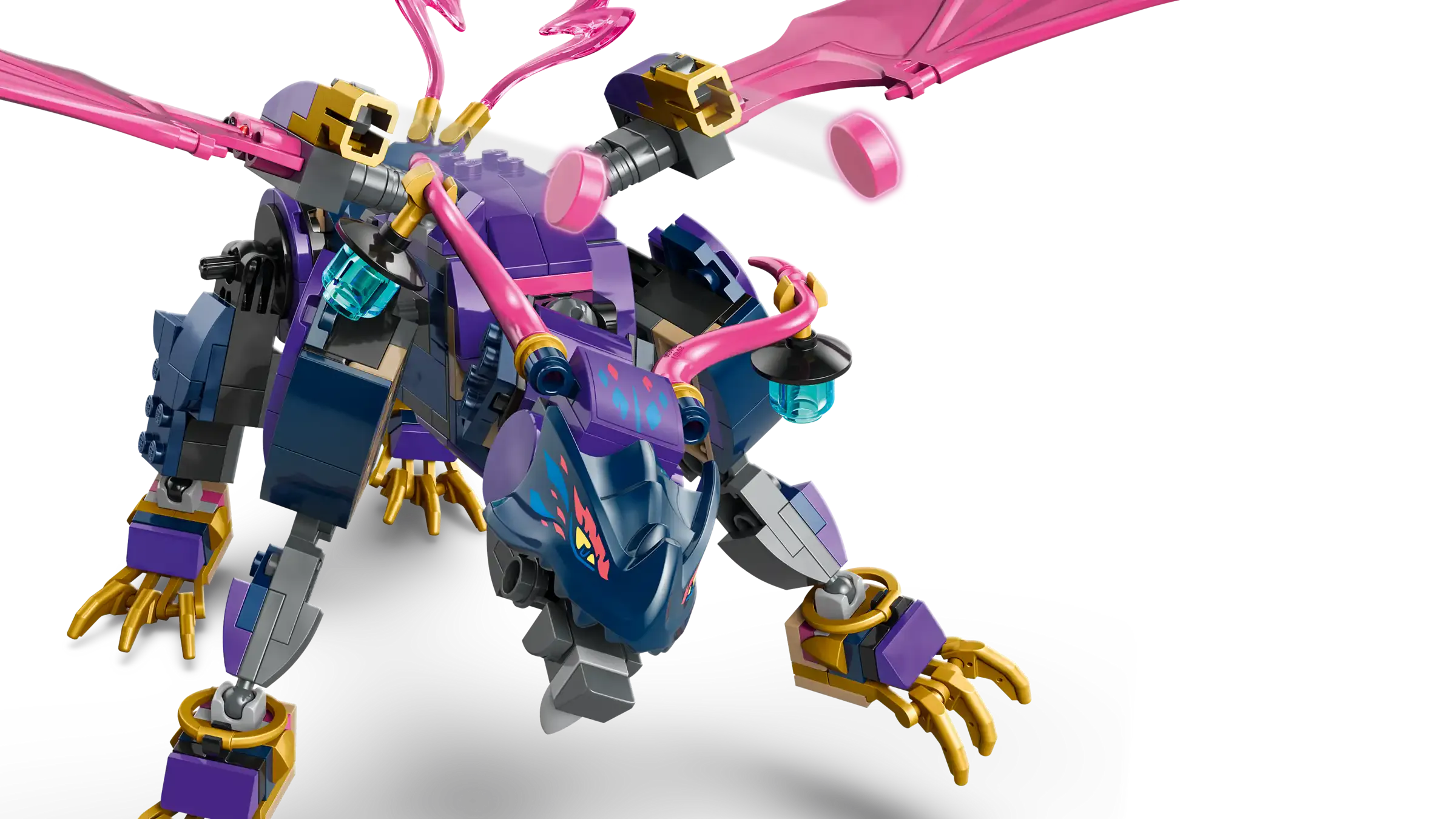 • Highly posable dragon figure – This large dragon model features a posable tail, legs, wings, head and jaw, 2 positions on its back for a minifigure, plus a stud shooter under each wing