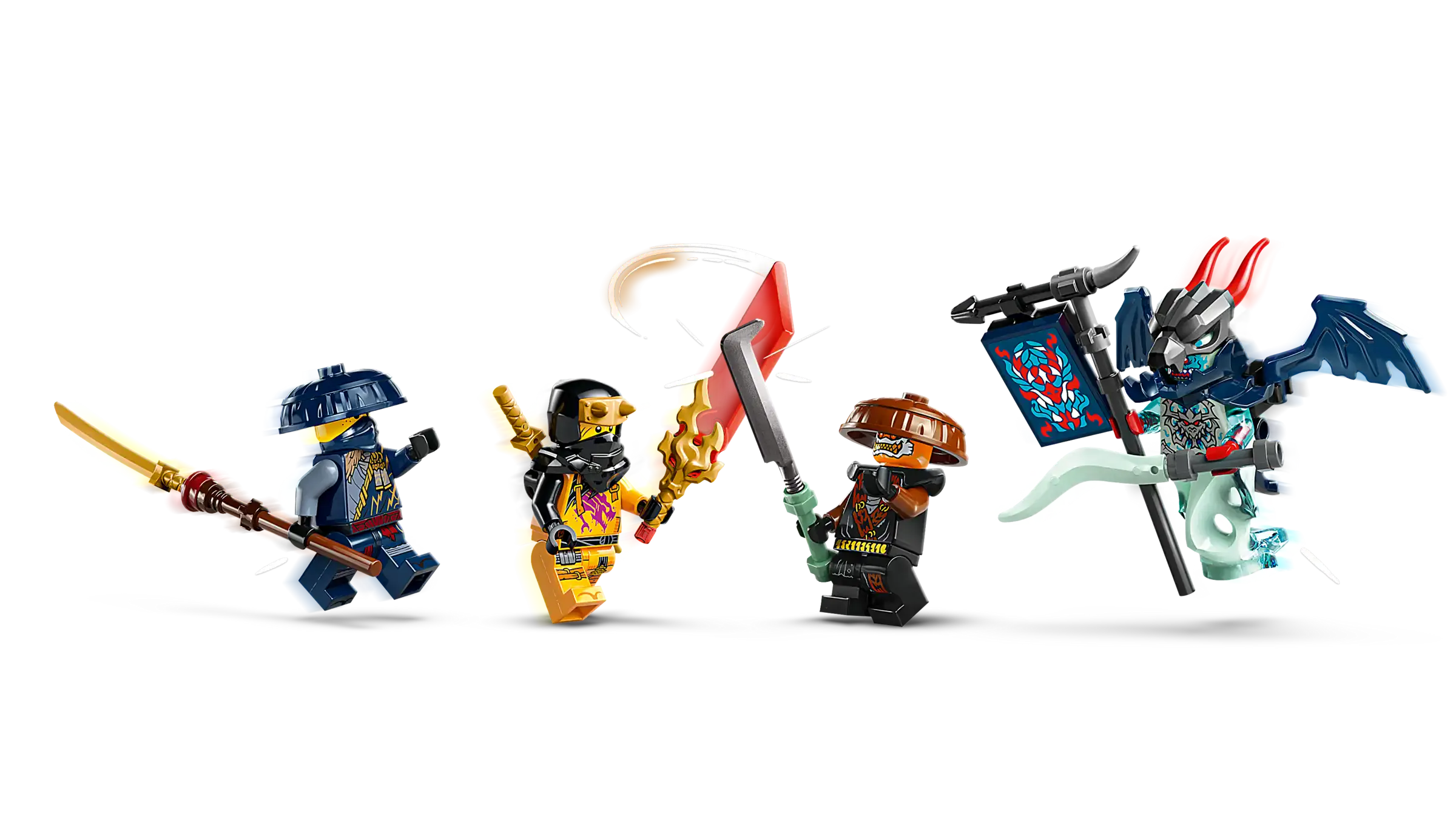 • 4 minifigures – Rogue, Arin, and the villainous duo Rox and a Spectral Dragonian Warrior who have a banner with a secret message that can only be read using Arin’s reveal blade accessory