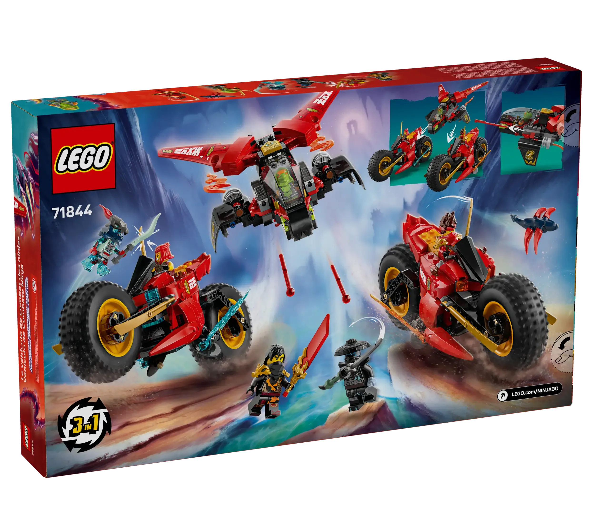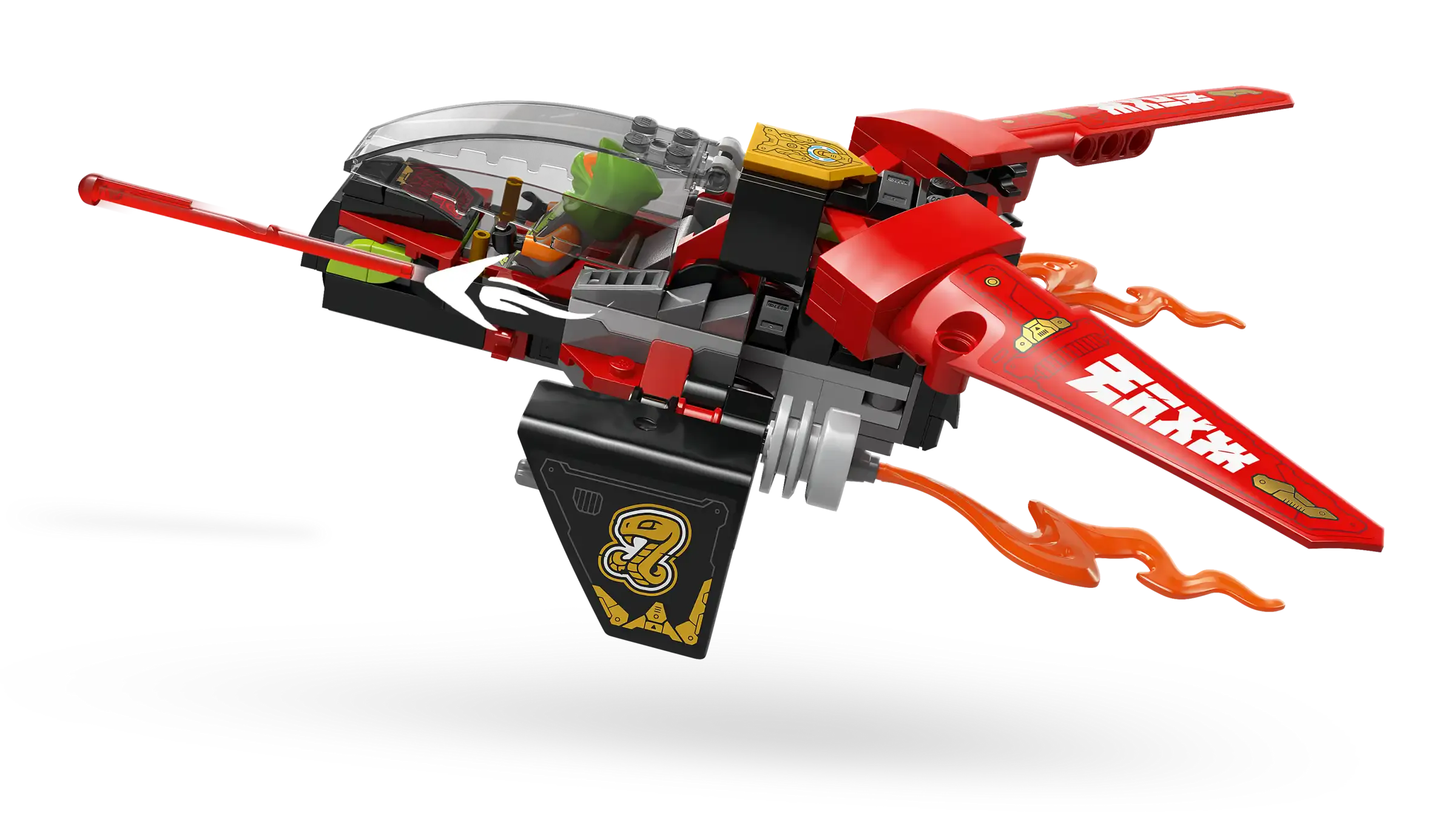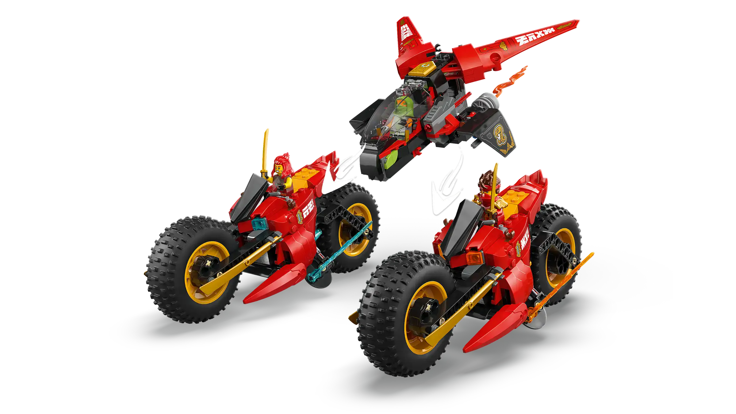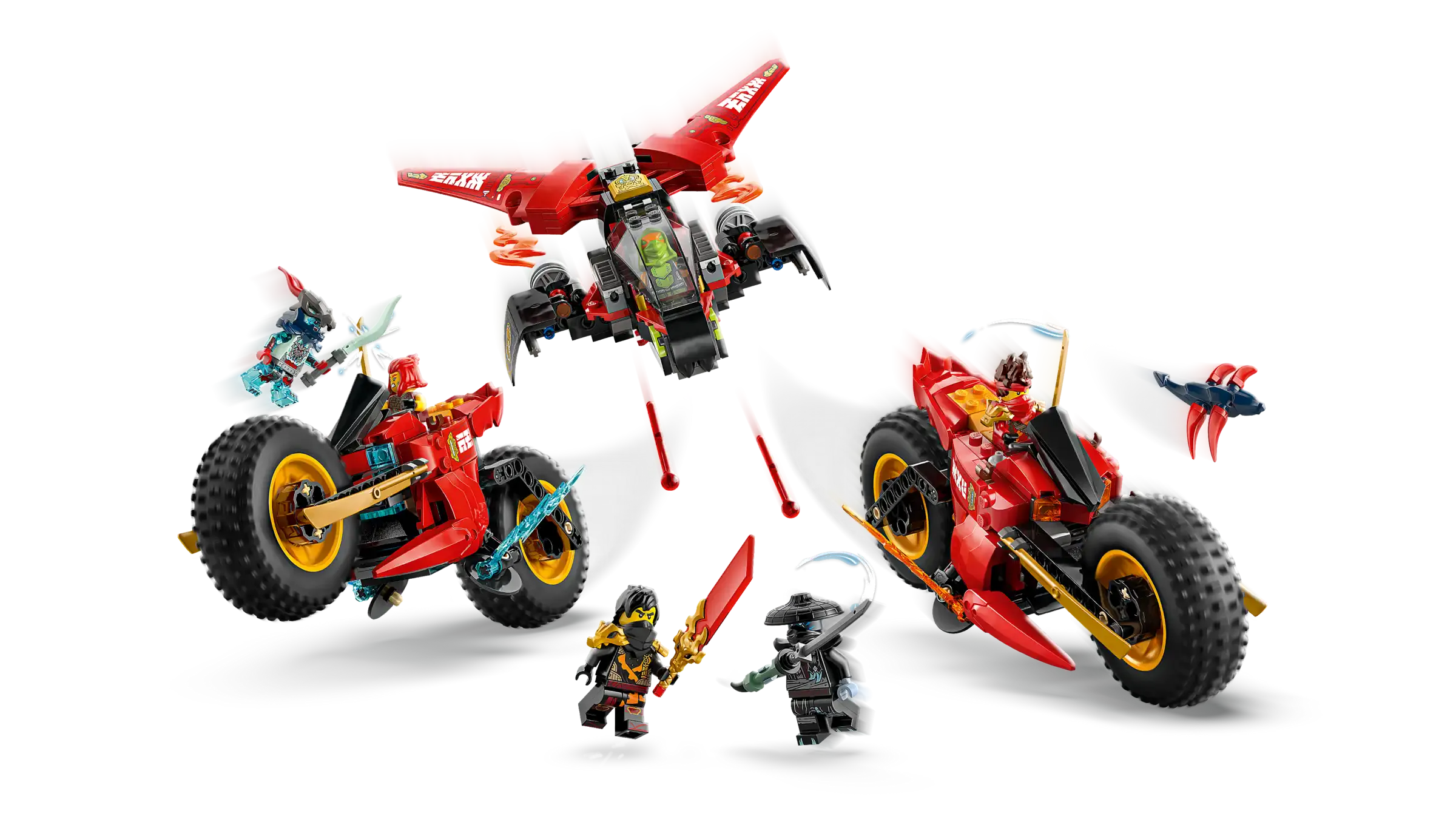 • Detachable ninja vehicles – The large NINJAGO® vehicle can be separated into 3 smaller vehicles: Kai’s ninja bike, Wyldfyre’s ninja bike and Frak’s aircraft jet toy with 2 stud shooters