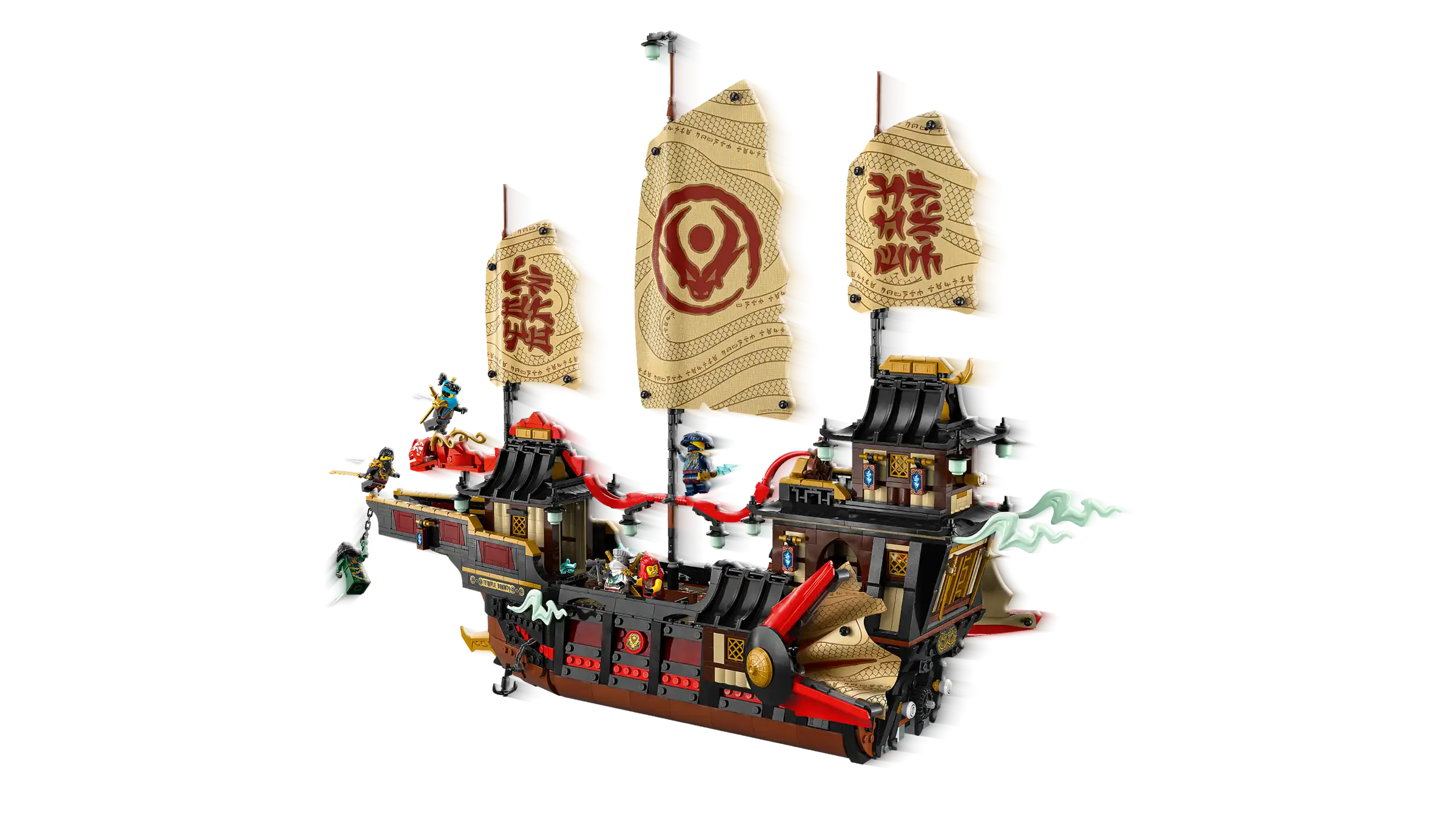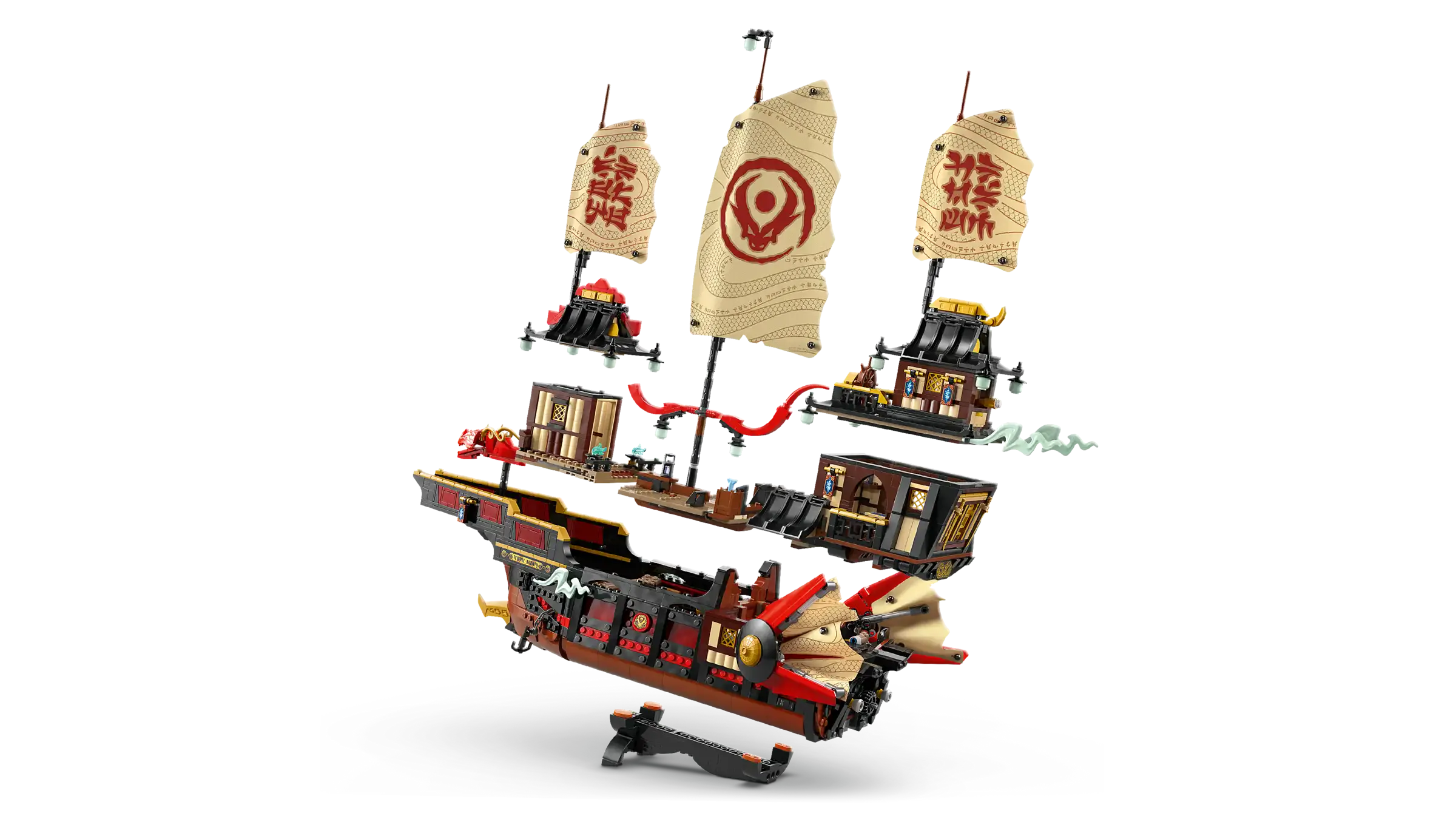 • Interactive ship playset – NINJAGO® fans turn a gear to move the sails, remove roofs and floors to gain access to the interior and a sushi bar, and fold a table in the main cabin to reveal a secret