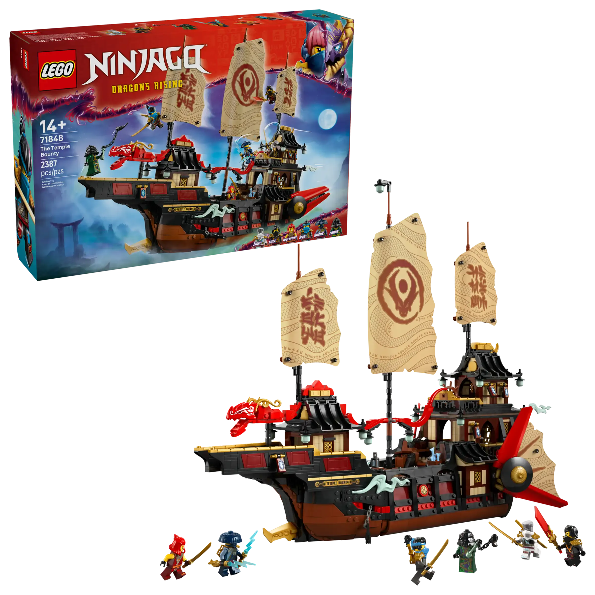 Older NINJAGO® fans aged 14 and up will be thrilled to add The Temple Bounty (71848) ship toy to their collection of LEGO® NINJAGO models. The large and highly detailed boat model is the latest in a line of famous NINJAGO ships and is packed with cool features and functions. It also comes with a display stand so fans can show it off on a shelf or bedside table.