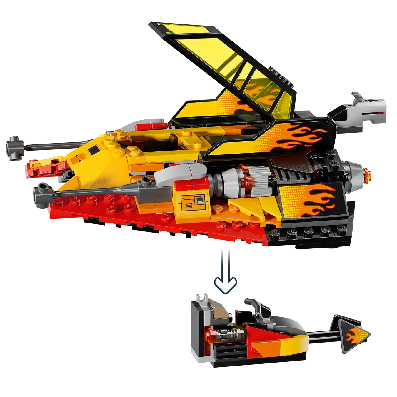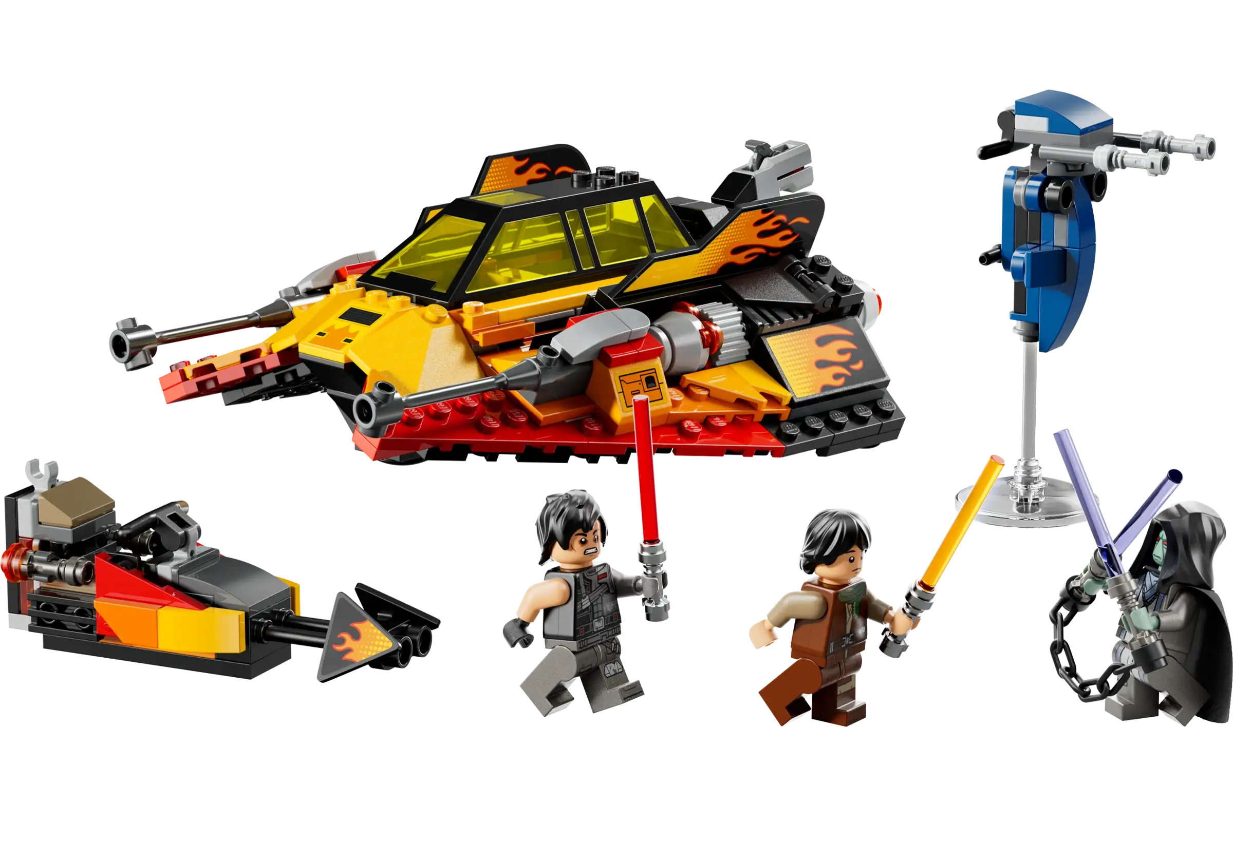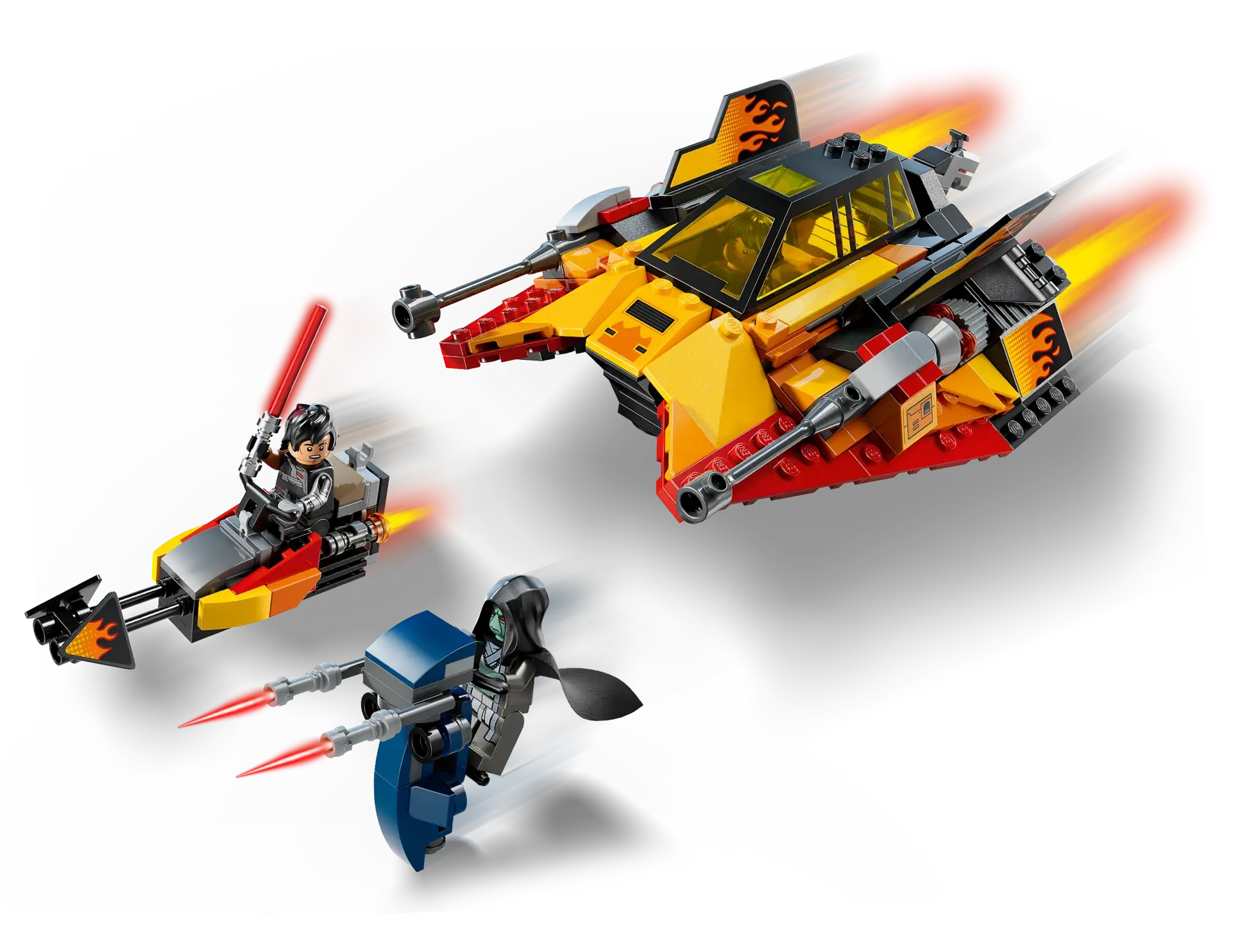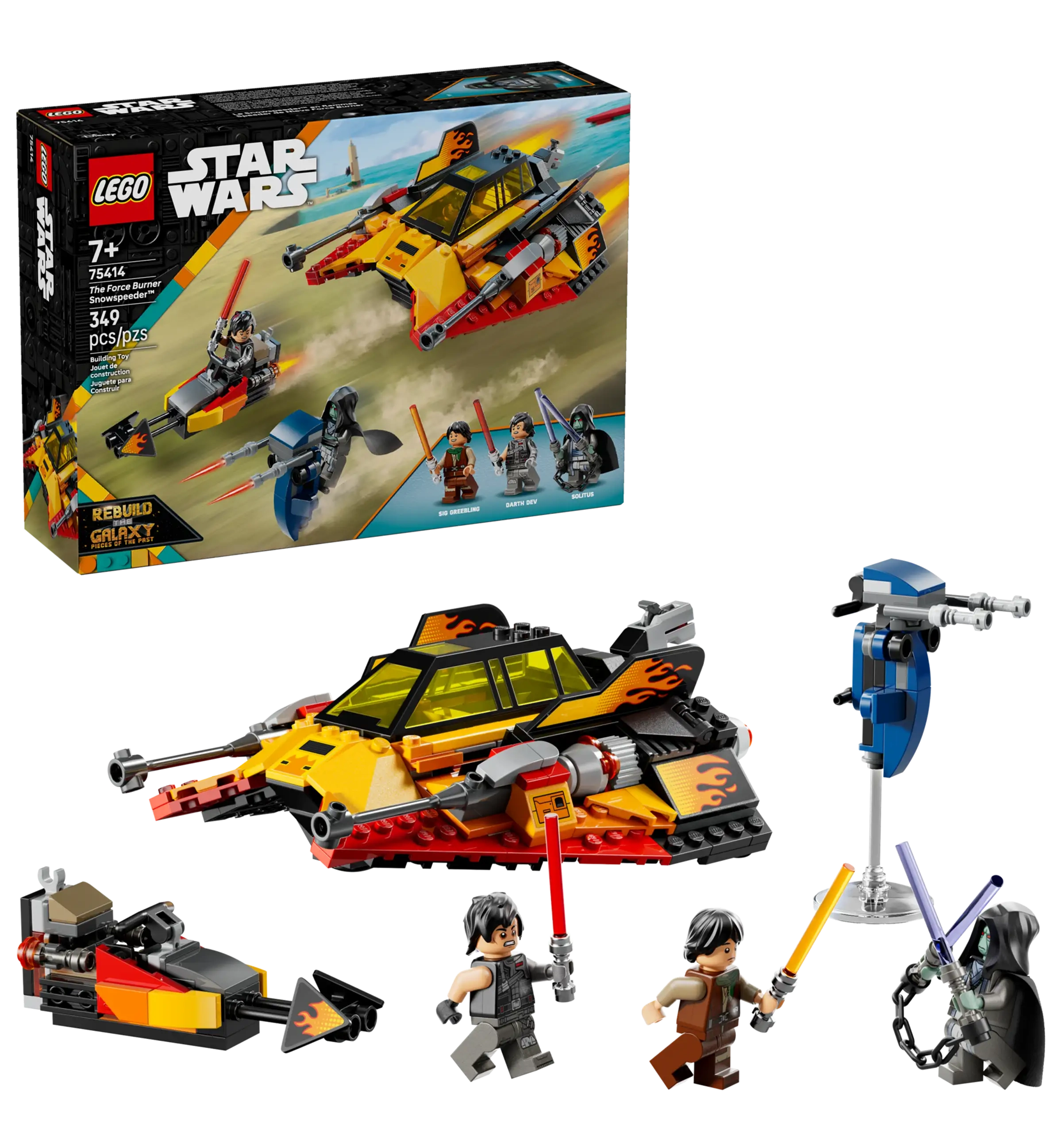 • 2 LEGO® Star Wars™ vehicles in 1 – The Force Burner Snowspeeder features flame decals, an opening double cockpit with a hidden, detachable speeder bike, and a rear stud shooter