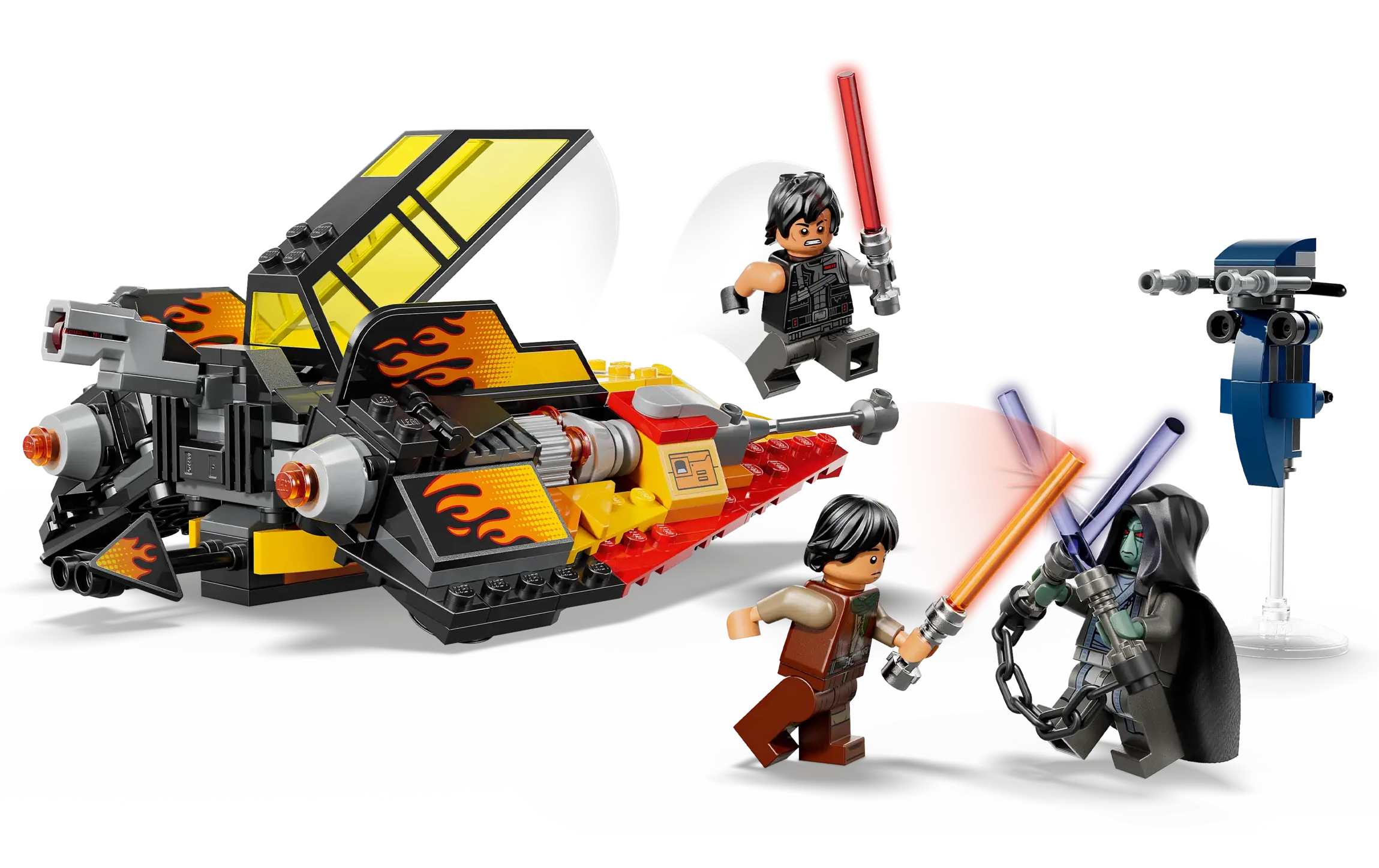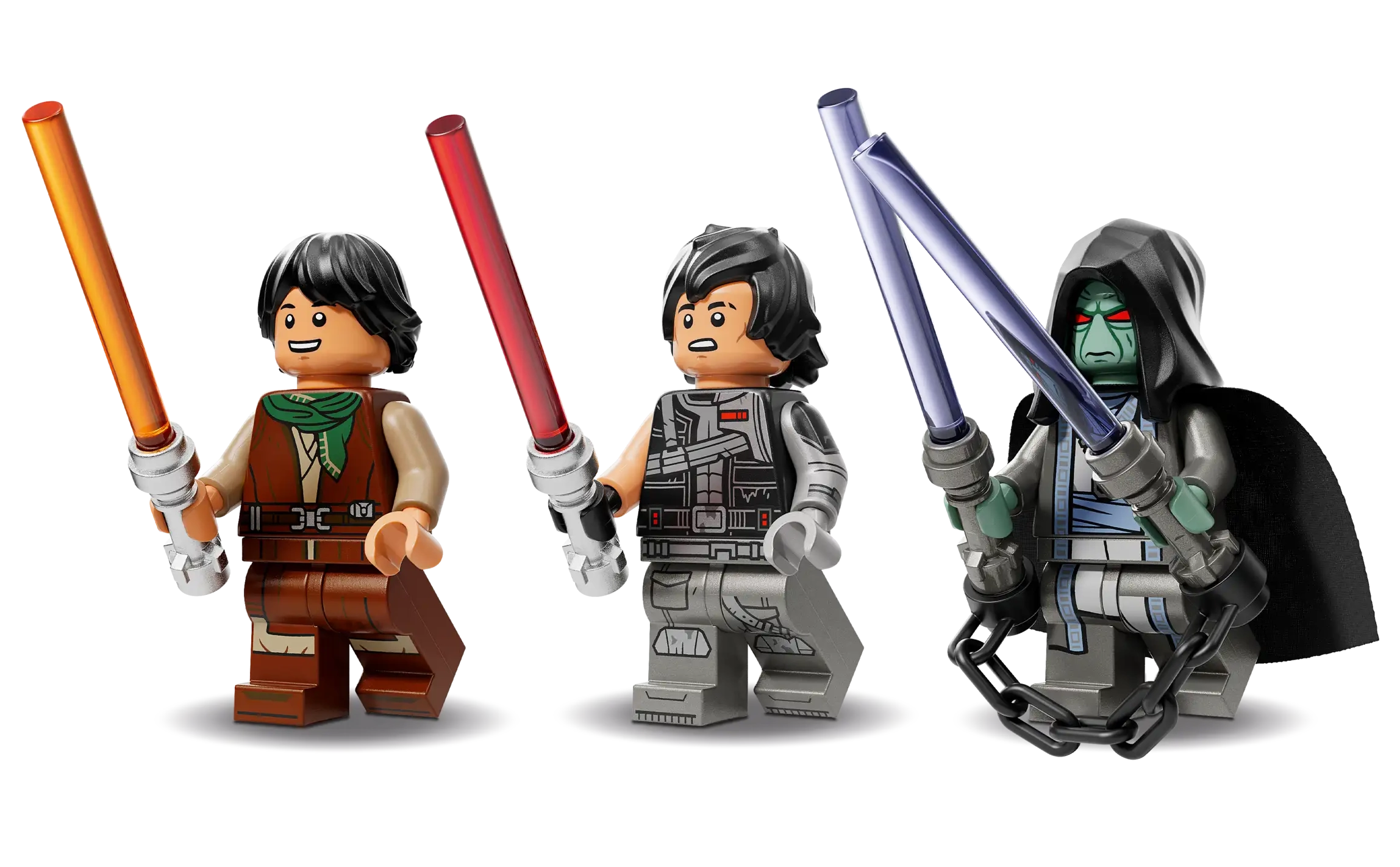 • 3 LEGO® Star Wars™ minifigures – Sig Greebling with a Lightsaber™, DarthDev with a Lightsaber™ and Solitus, who has a dual Lightsaber™ with a chain