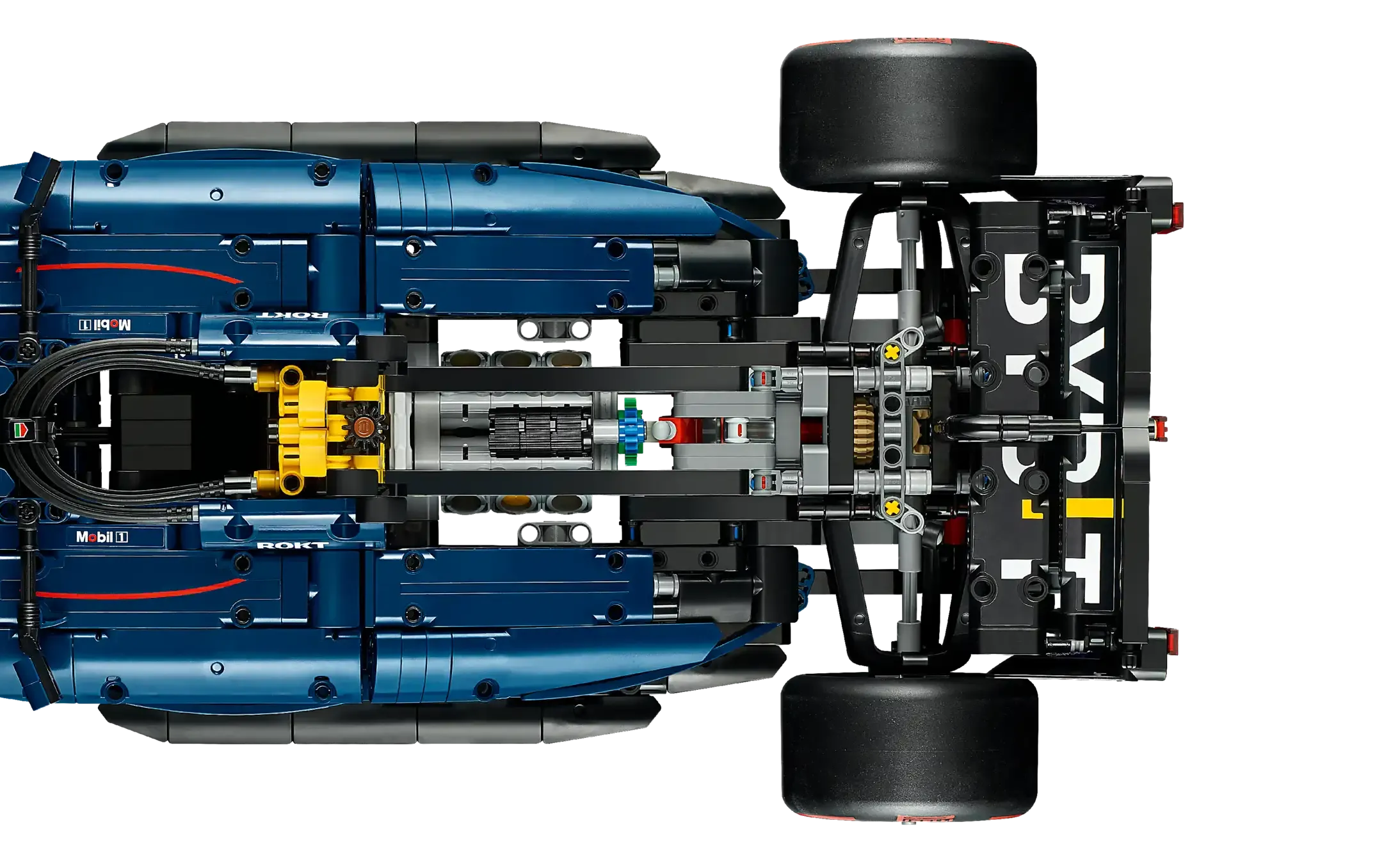 • An F1 racing car model packed with features – Celebrate your love for motorsports as you explore details including front and rear suspension, steering, an adjustable spoiler and printed tires
