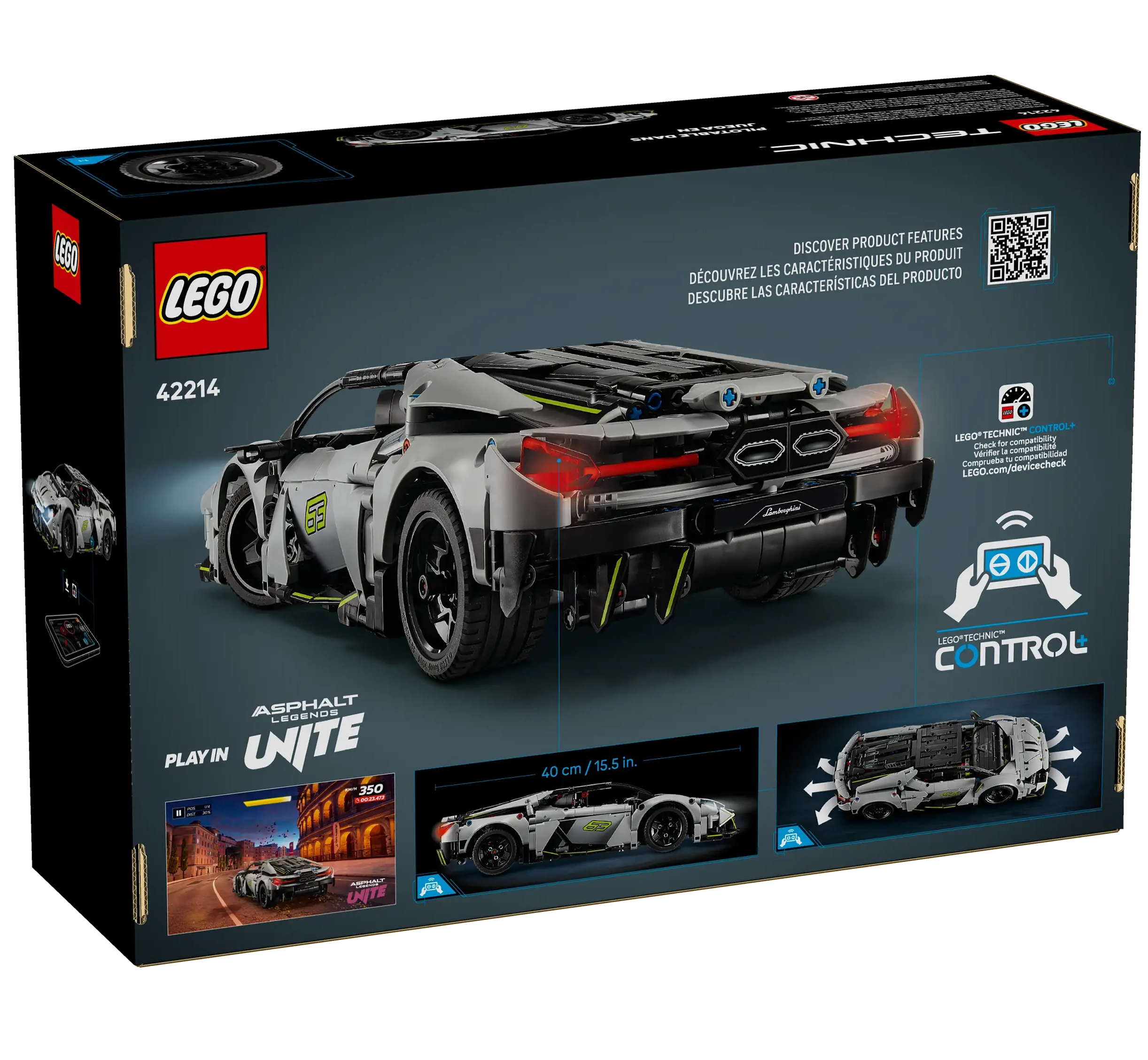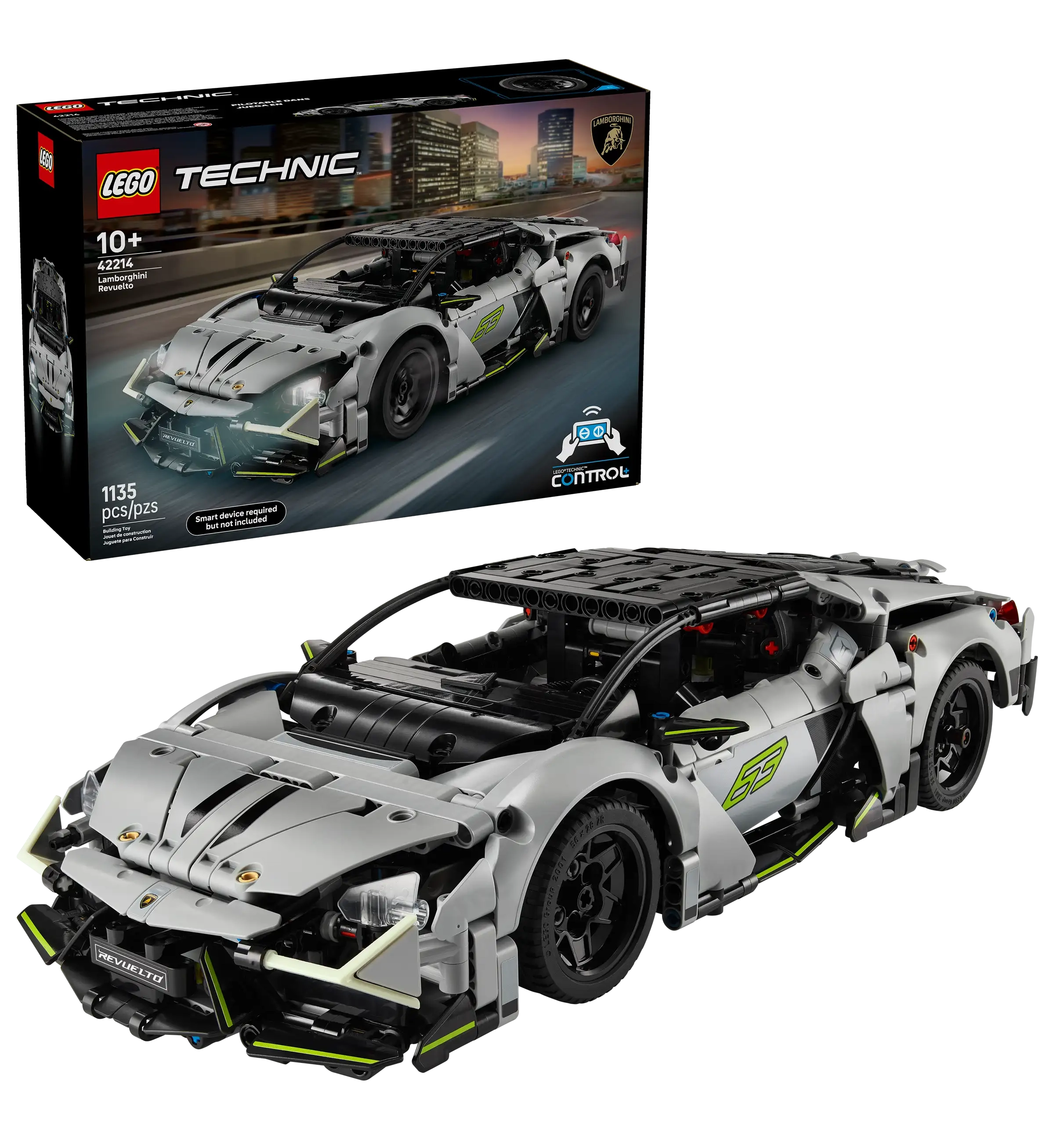 Inspire kids to build a detailed model version of the stunning Lamborghini Revuelto Super Sports Car with this LEGO® Technic™ STEM building toy (42214) for boys and girls aged 10 and up. With features inspired by the real-life car, this model includes an engine cover and cool glow-in-the-dark headlight details. Meanwhile, the sleek design is sure to impress any Lamborghini super fan. But the build is just the start with this fast-action set. Access the CONTROL+ app to steer the car, control the lights and see live data feedback from the app’s cockpit screen as kids perfect their driving skills.