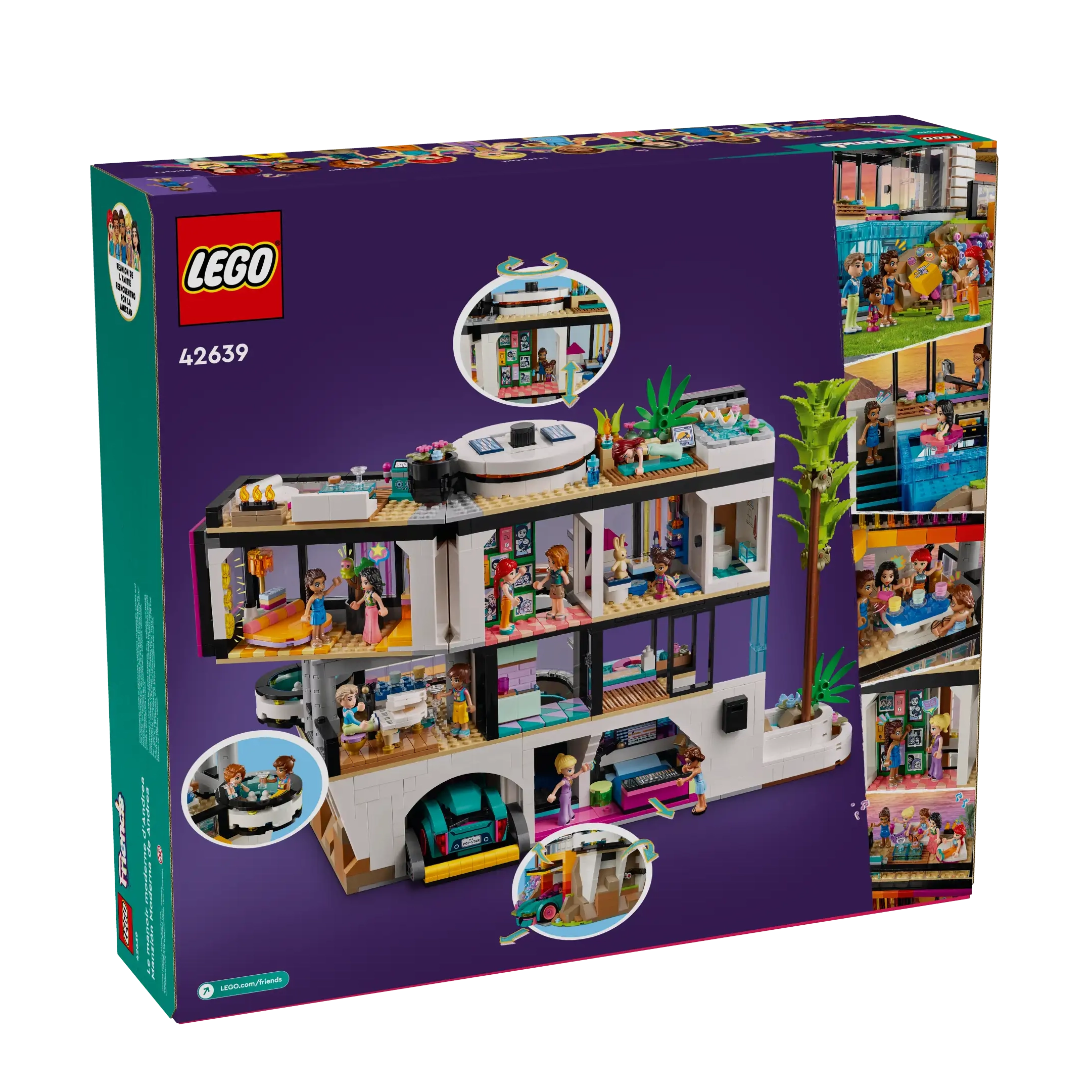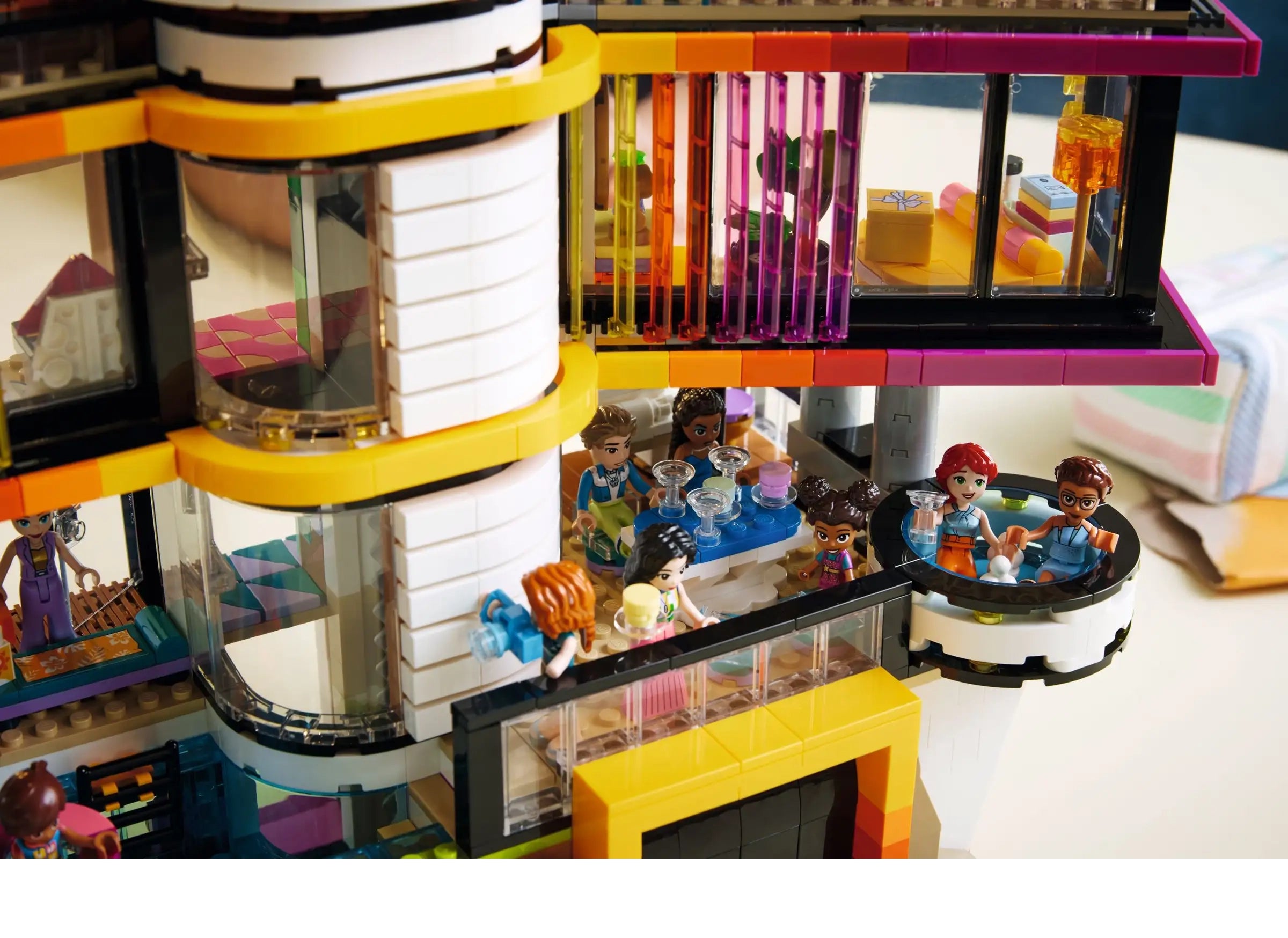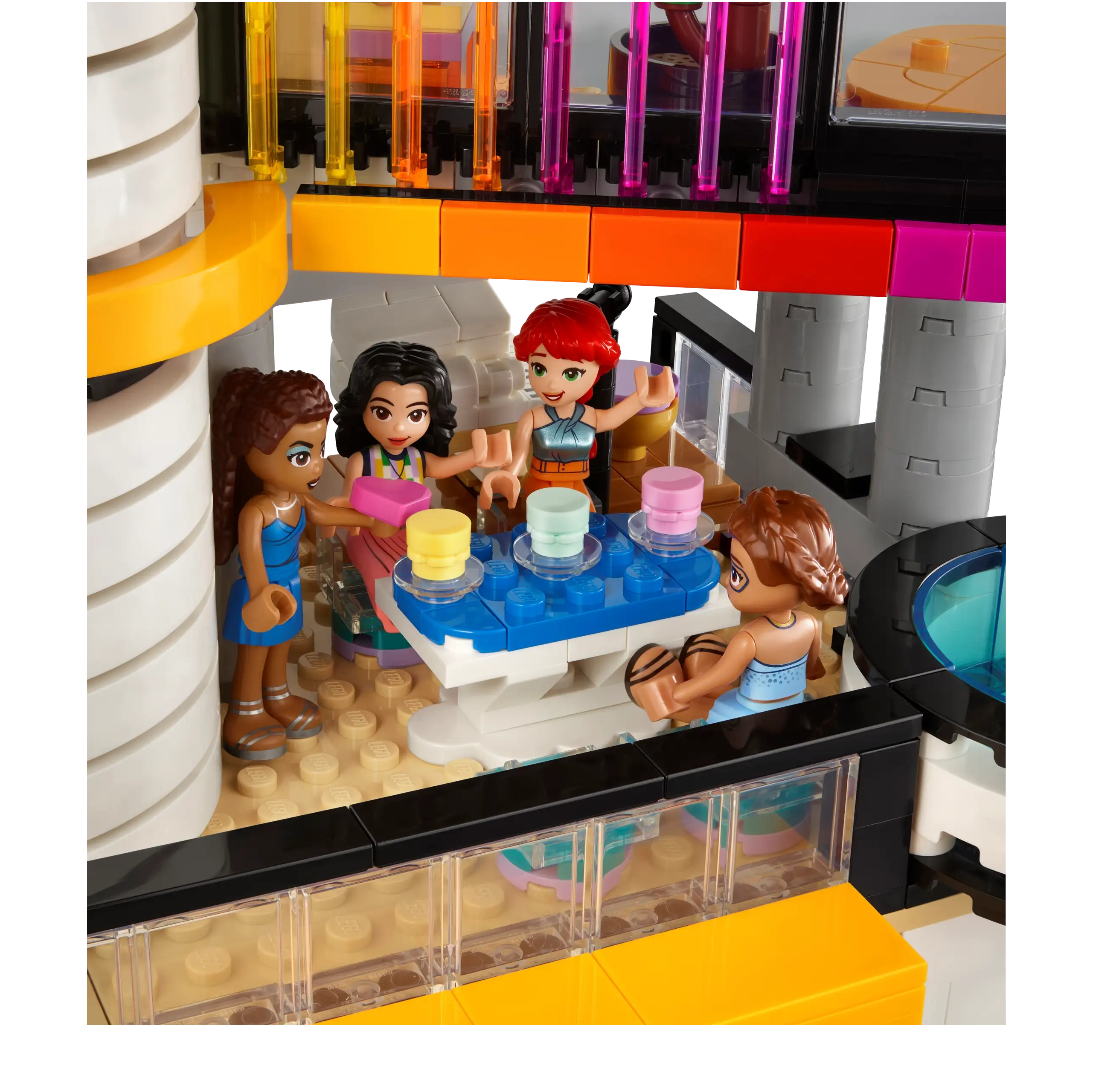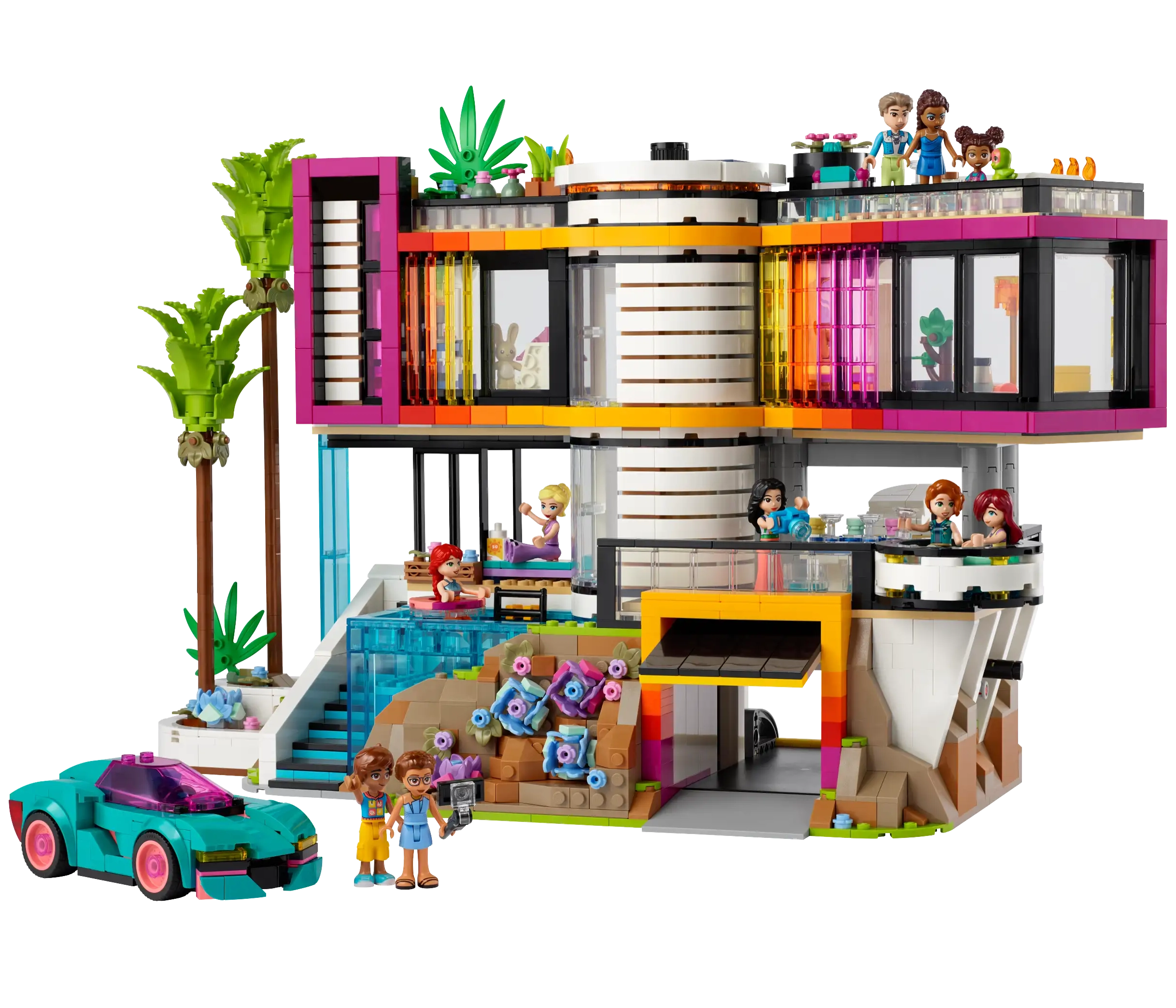 • Outdoor party zones – This four-story home is where LEGO® Friends character Andrea hosts parties for her friends and comes with a pool, hot tub, dining area, yoga, and music spaces and a waterfall