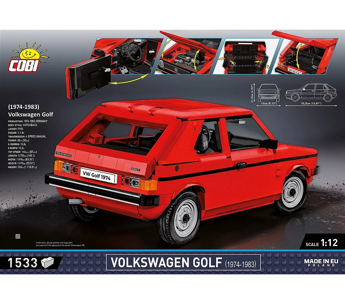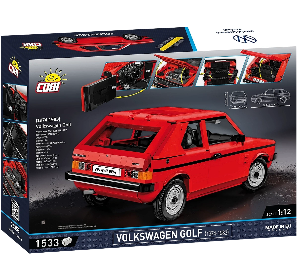 The COBI-Volkswagen Golf set in 1:12 scale is the perfect choice for all those who want to create a legendary car to expand their collection of unique models from COBI. These are models that will delight every motoring and building enthusiast.