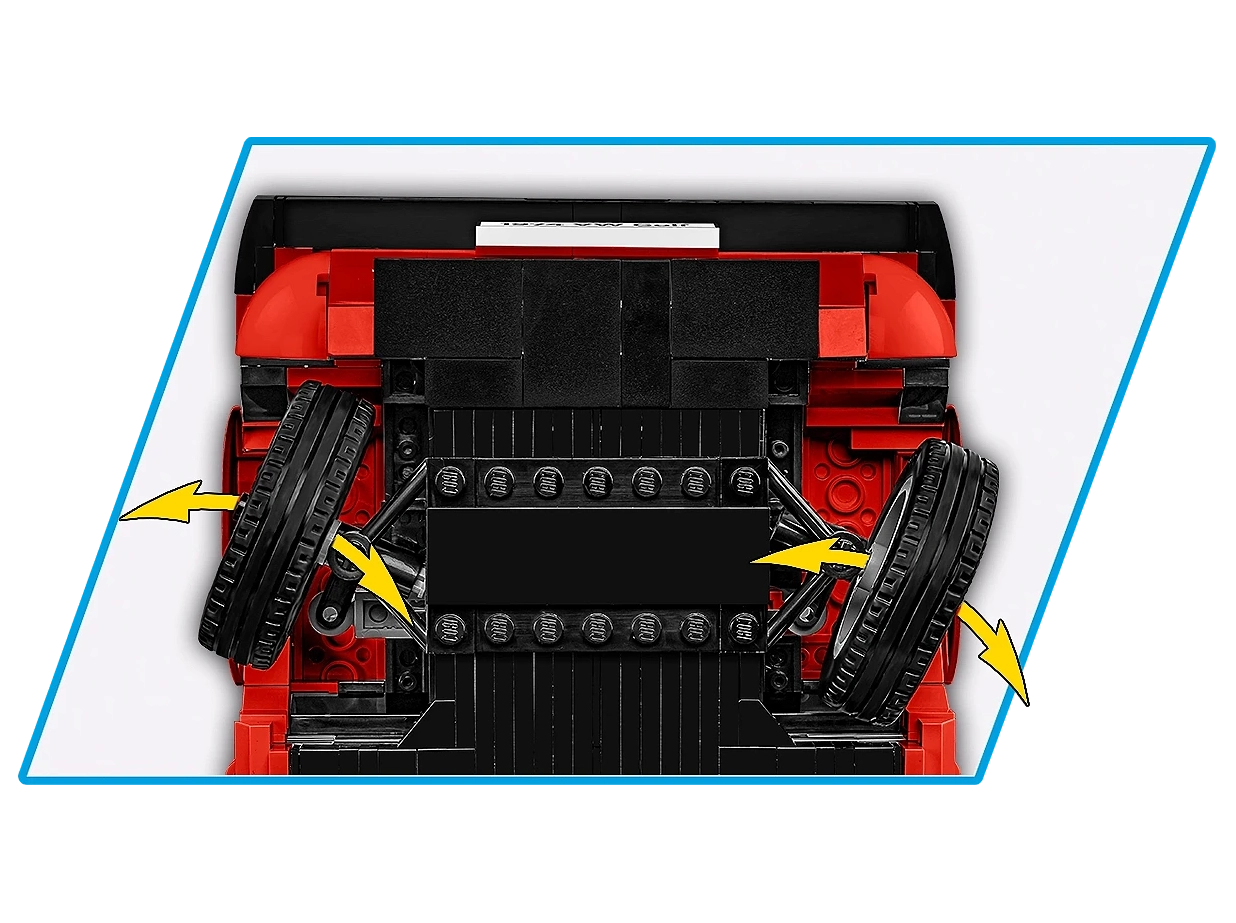 Movable steering wheel - The use of a movable steering wheel allows for interactive play and additional joy of construction, and also emphasizes the exceptional realism of the vehicle.