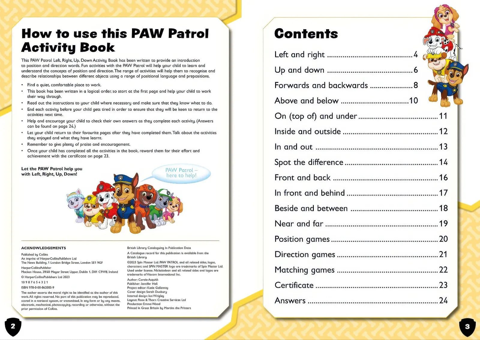 PAW Patrol Left, Right, Up, Down Activity Book: Learn About Position & Direction