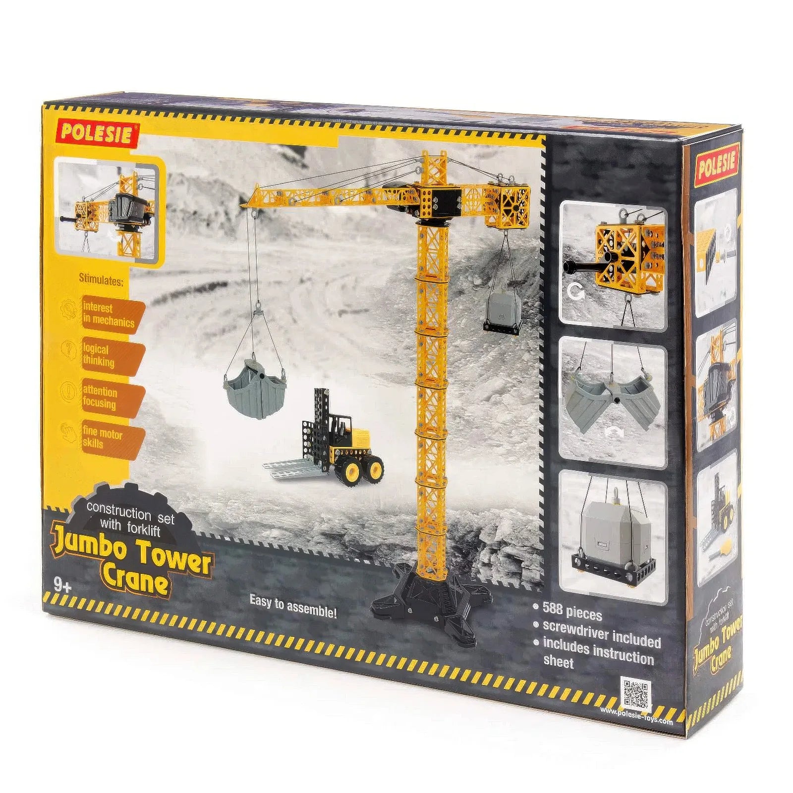 This action-packed crane and forklift set is ideal for children who love big machines and hands-on fun. Whether it's building an imaginary city or managing a mini construction site, the Jumbo Tower Toy Crane Construction Set brings big excitement to every play session.