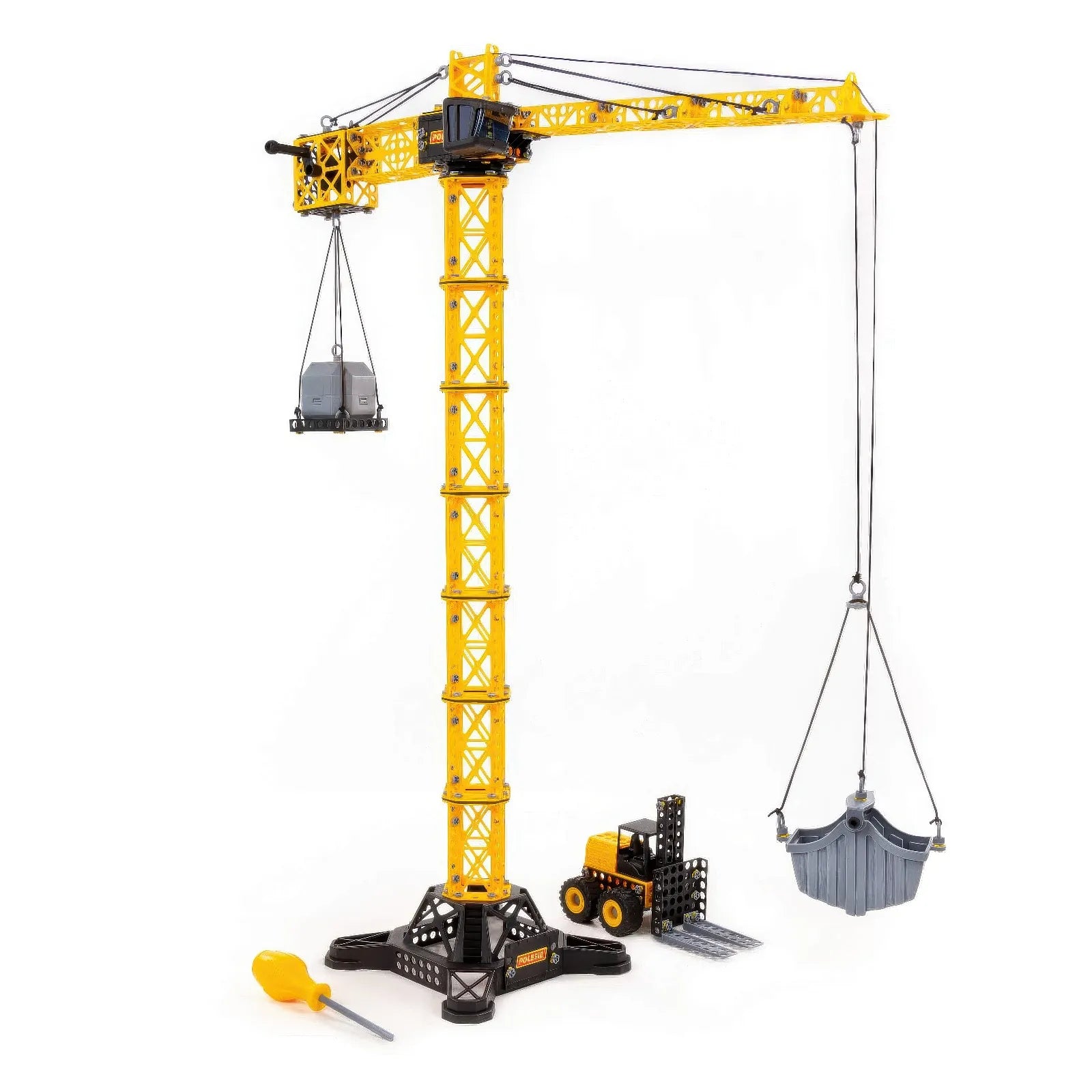 Polesie Mega Tower Toy Crane Construction Set with Forklift – 93cm Tall Playset