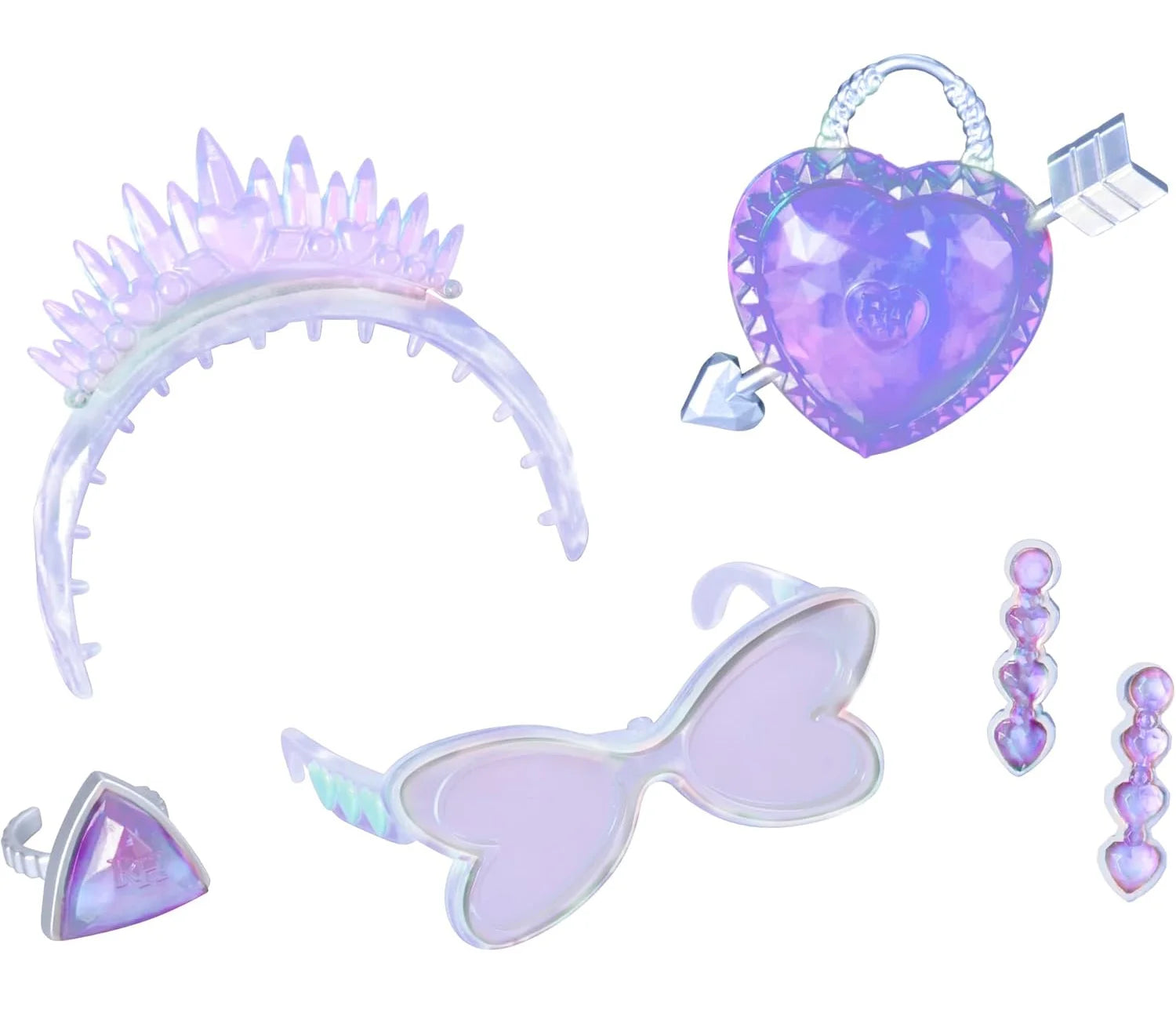 • 5 TO MAKE: Make sunglasses, earrings, a purse, and a headband crystal accessory for your doll. Also, create a ring for yourself. To make these, please follow the instructions that come with your doll.