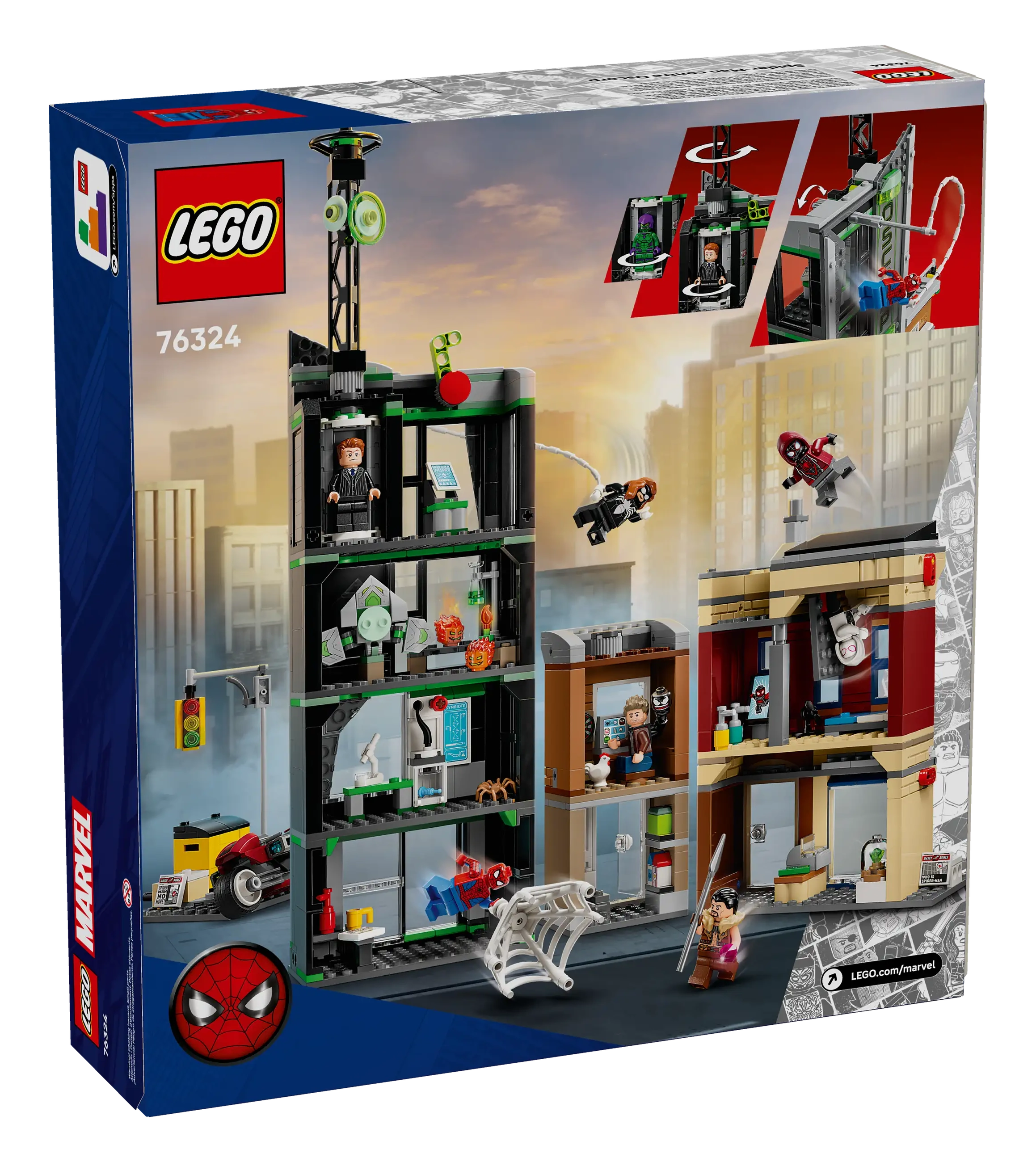 LEGO® ǀ Marvel Spider-Man vs. Oscorp (76324) is a premium build-play-and-display set that’s bursting with Super Hero action, iconic characters and famous locations. This multi-model city scene makes an impressive gift for fans of Super Heroes and Marvel collectibles aged 10 and up.