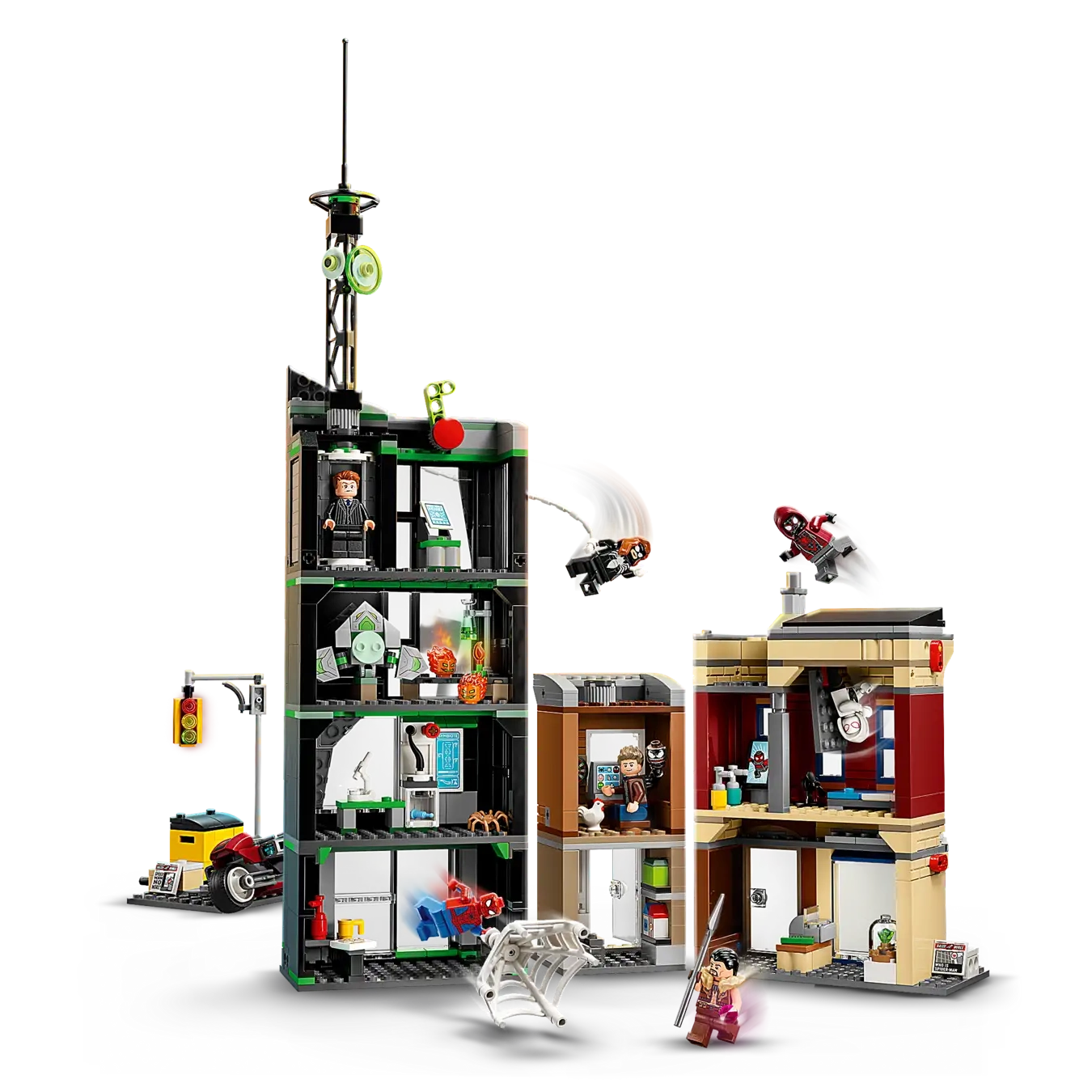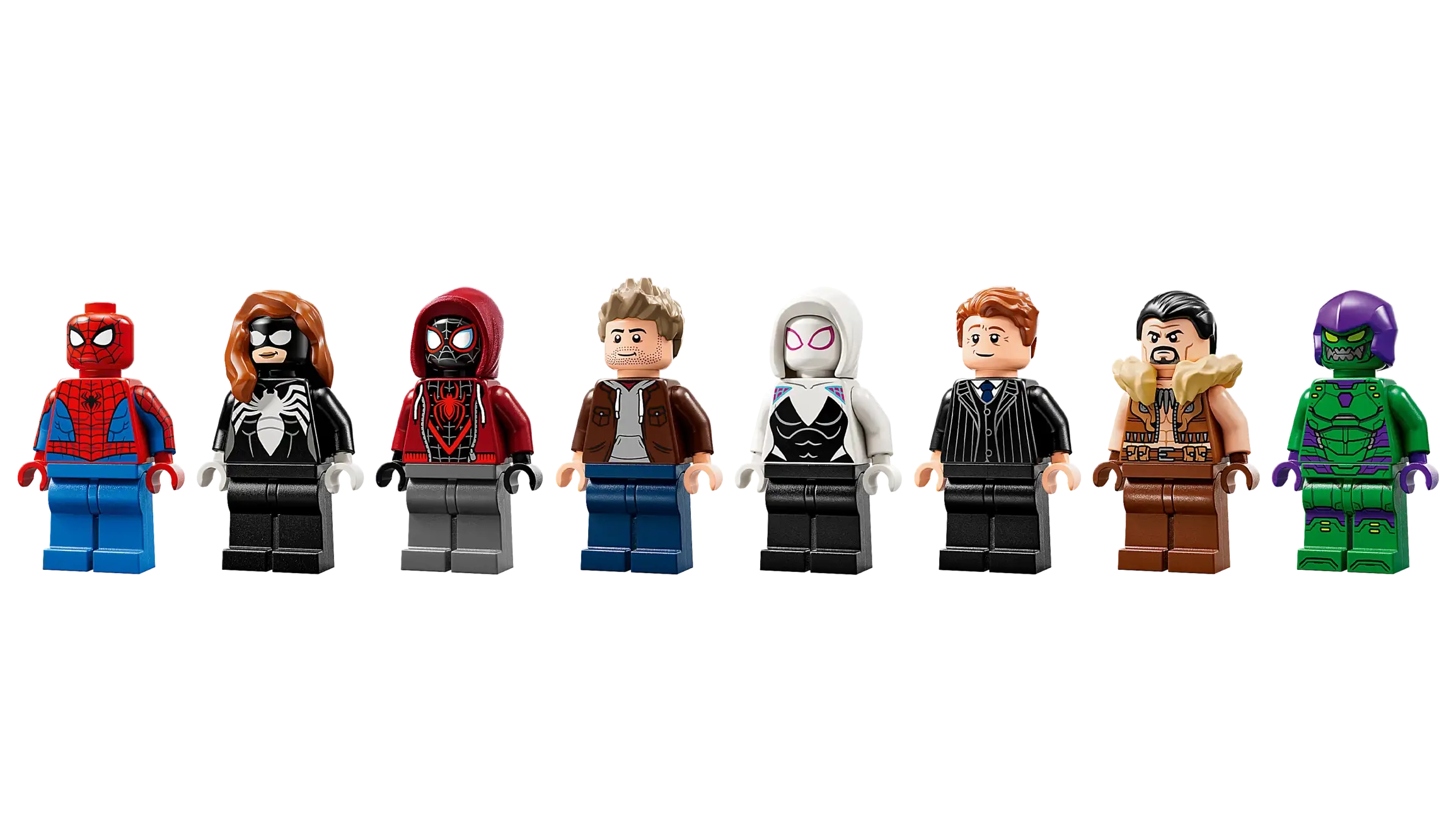 • Super Hero minifigures – The buildable set includes 8 LEGO® minifigures: Spider-Man, Spider-Woman, Miles Morales, Eddie Brock, Ghost-Spider, Norman Osborn, Kraven the Hunter and Green Goblin