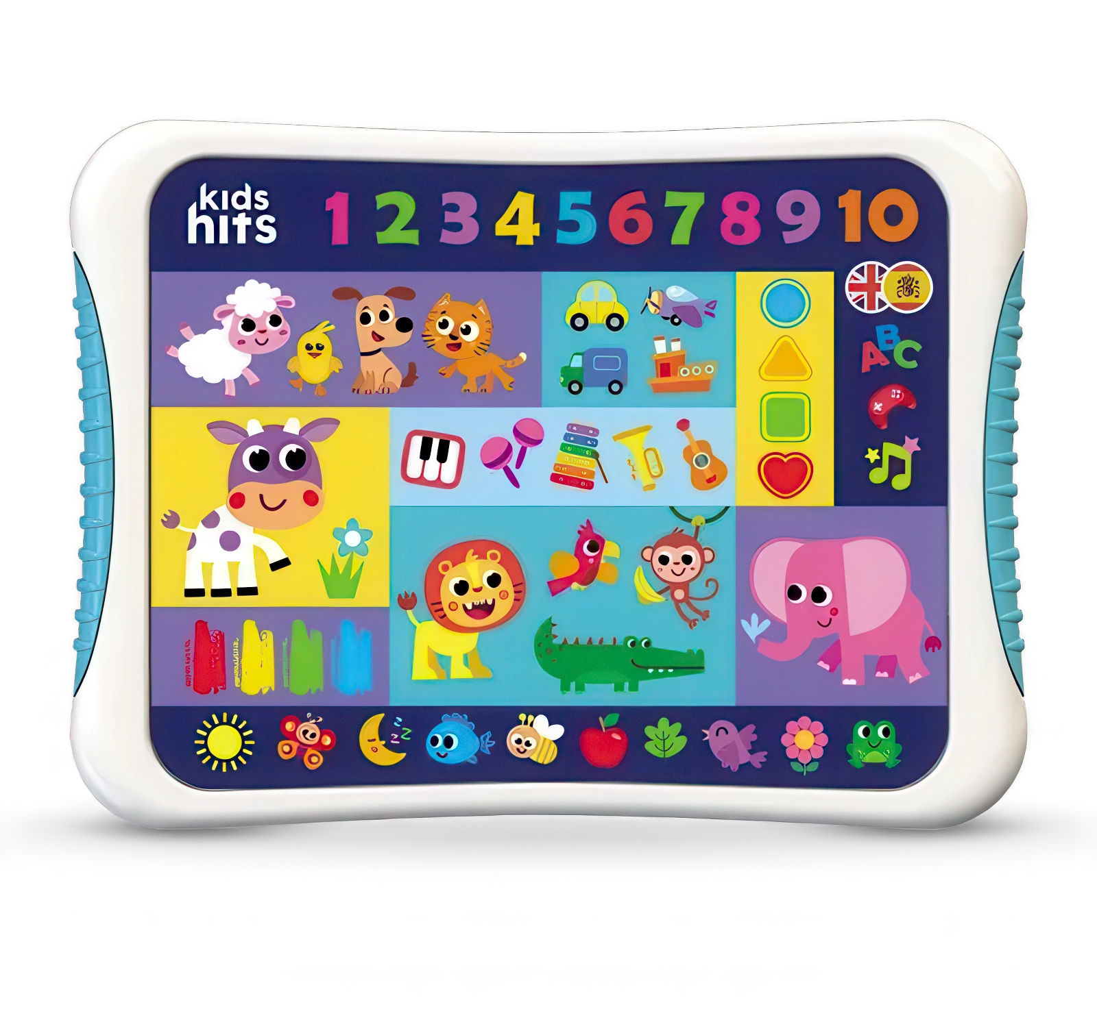 Happy Duolingvo is a great way to do first steps in language learning! Managing the language settings, kids will listen to the names of farm and zoo animals, learn the ABC, shapes, colours and numbers both in English and in Spanish. This wonderful tablet is 100% bilingual!