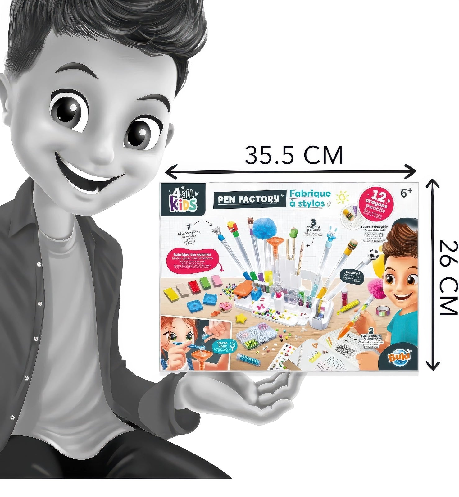 Transform ordinary stationery into extraordinary personalised treasures with the BUKI France Pen Factory, the ultimate creative workspace for budding artists and stationery enthusiasts aged 6 and above.