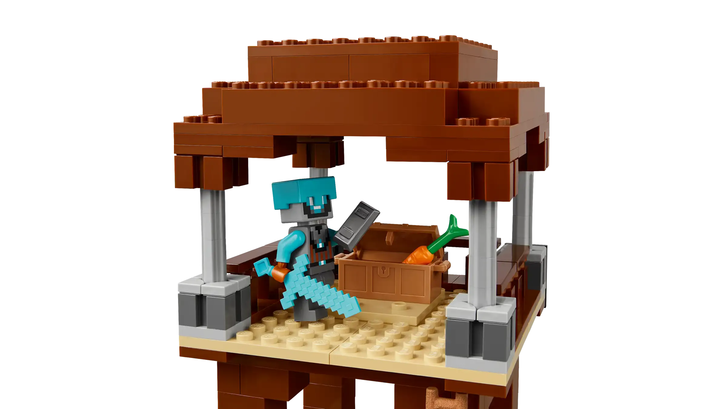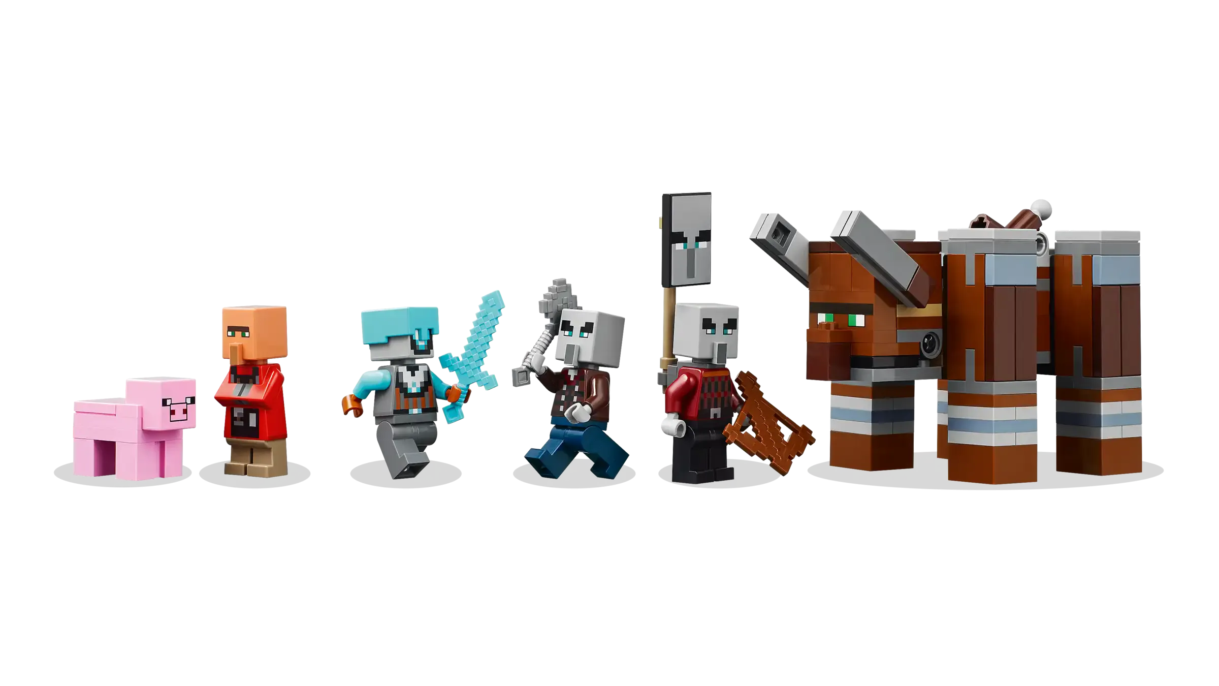 The set includes 4 LEGO Minecraft minifigures: a Space Sentinel, Raid Captain, mason villager and a Vindicator. A buildable ravager figure has a lever-operated function that lets kids make jaw-snapping and head-butting movements. A watchtower includes ladders to provide access between the three floors, banners showing pillager faces and a chest of precious loot. The mason’s house has an opening door and a furnished interior with a bed and a stonecutter. There’s also a LEGO Minecraft pig figure and accessories including a training dummy, torch, carrot, iron ingot, diamond helmet, diamond sword, crossbow and an iron axe. The LEGO Builder app gives kids the added fun of using their device to zoom in and rotate models in 3D. Contains 665 pieces.