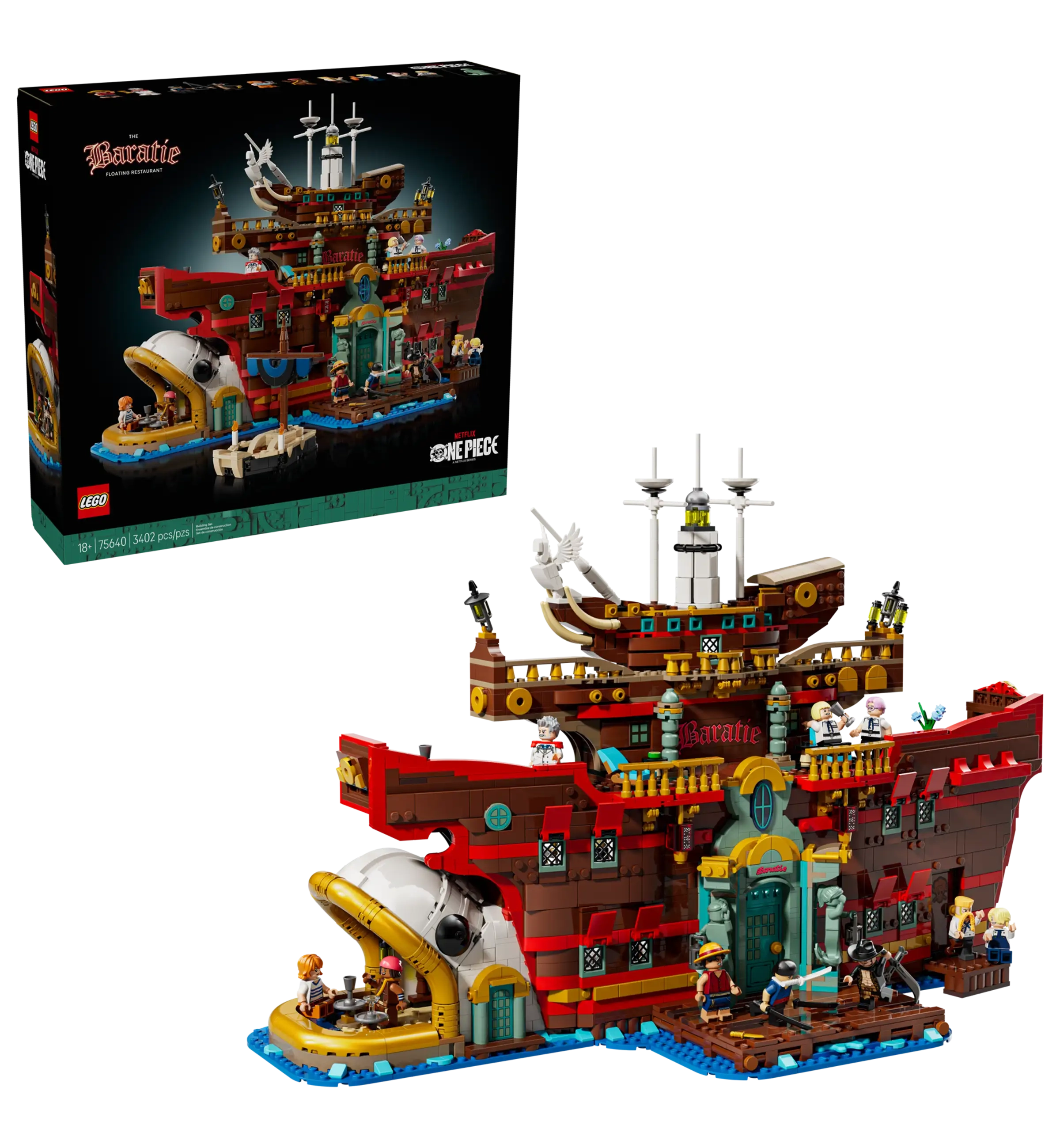 LEGO® ONE PIECE The Baratie Floating Restaurant (75640) re-creates the iconic setting of many ONE PIECE adventures. A great gift for adult fans of the ONE PIECE Netflix live action show, the model is packed with authentic details and an iconic cast of minifigures from the show.