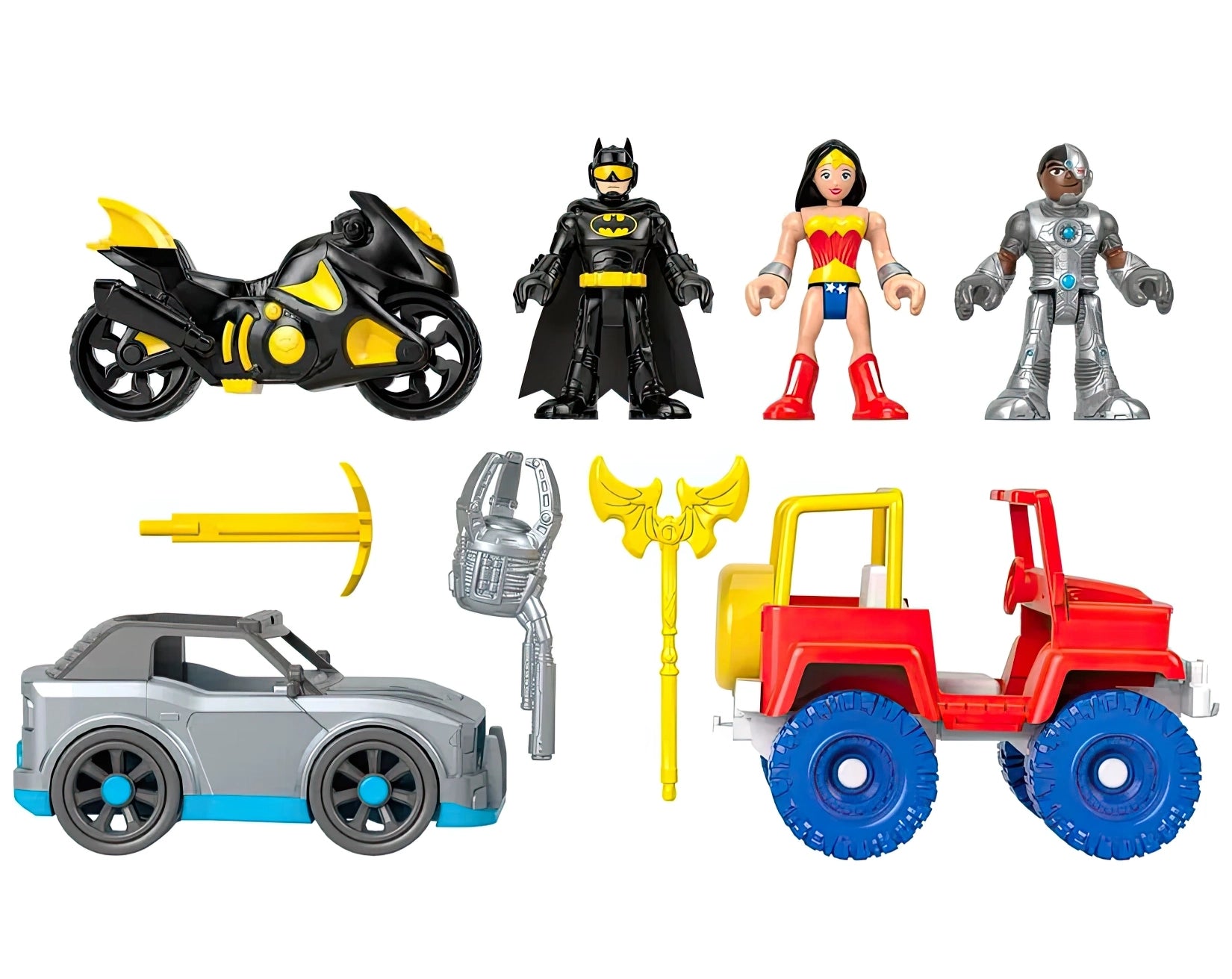 Τα παιδιά προσχολικής ηλικίας μπορούν να ζήσουν συναρπαστικές περιπέτειες καταπολέμησης του εγκλήματος με αυτό το σετ φιγούρας και οχήματος Imaginext DC Super Friends Heroes. Αυτό το σετ γεμάτο δράση περιλαμβάνει 3 φιγούρες με δυνατότητα κίνησης των Batman, Wonder Woman και Cyborg, η κάθε μία με το δικό της όχημα και αξεσουάρ. Τα παιδιά θα λατρέψουν να στέλνουν τους DC Super Heroes να τρέχουν για να σώσουν την ημέρα ξανά και ξανά!