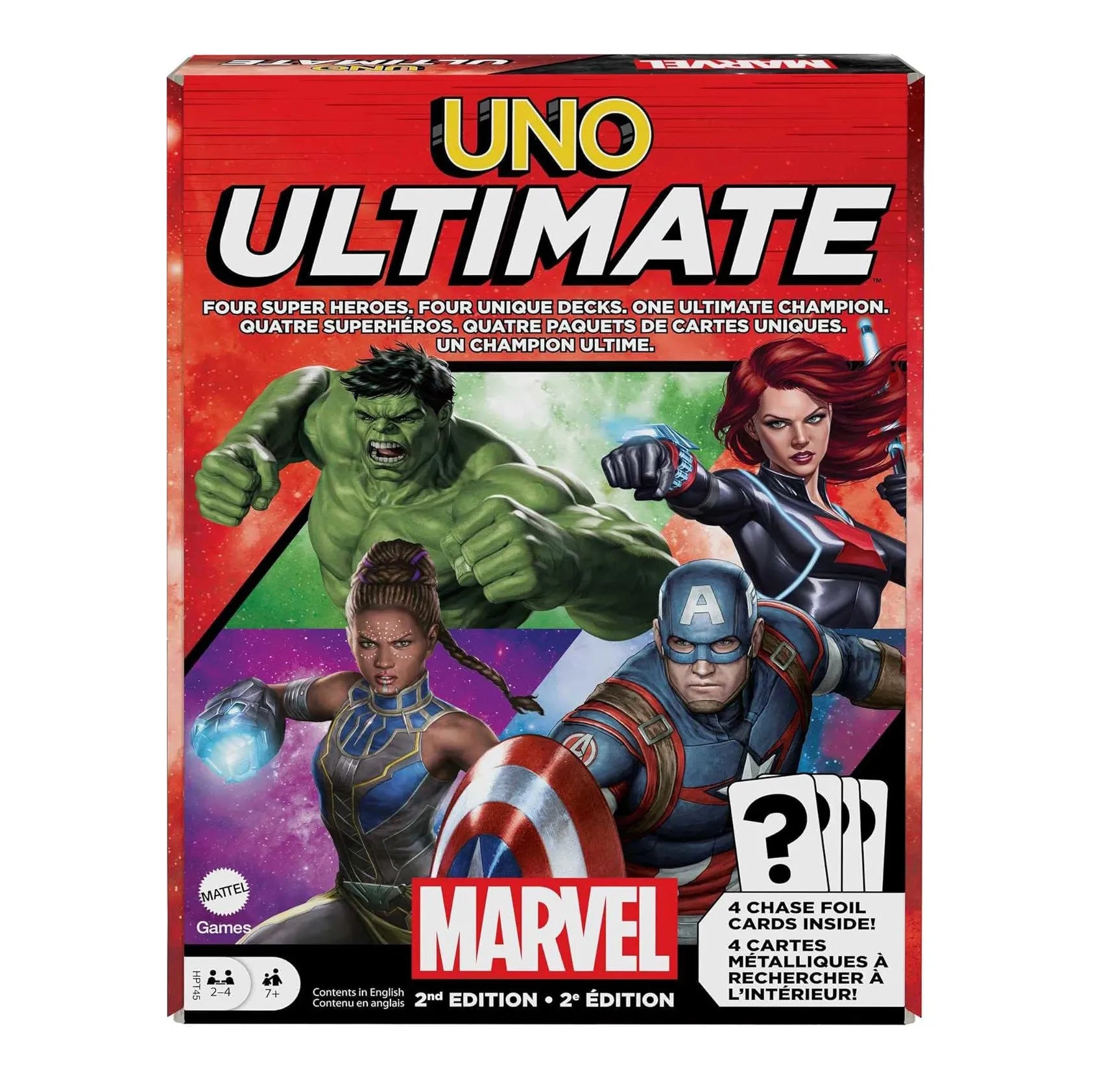 Mattel Games UNO Ultimate Marvel Card Game με 4 Character Decks, 4 Συλλεκτικές Foil Cards & Ειδικούς Κανόνες, 2–4 Παίκτες, 2η Έκδοση