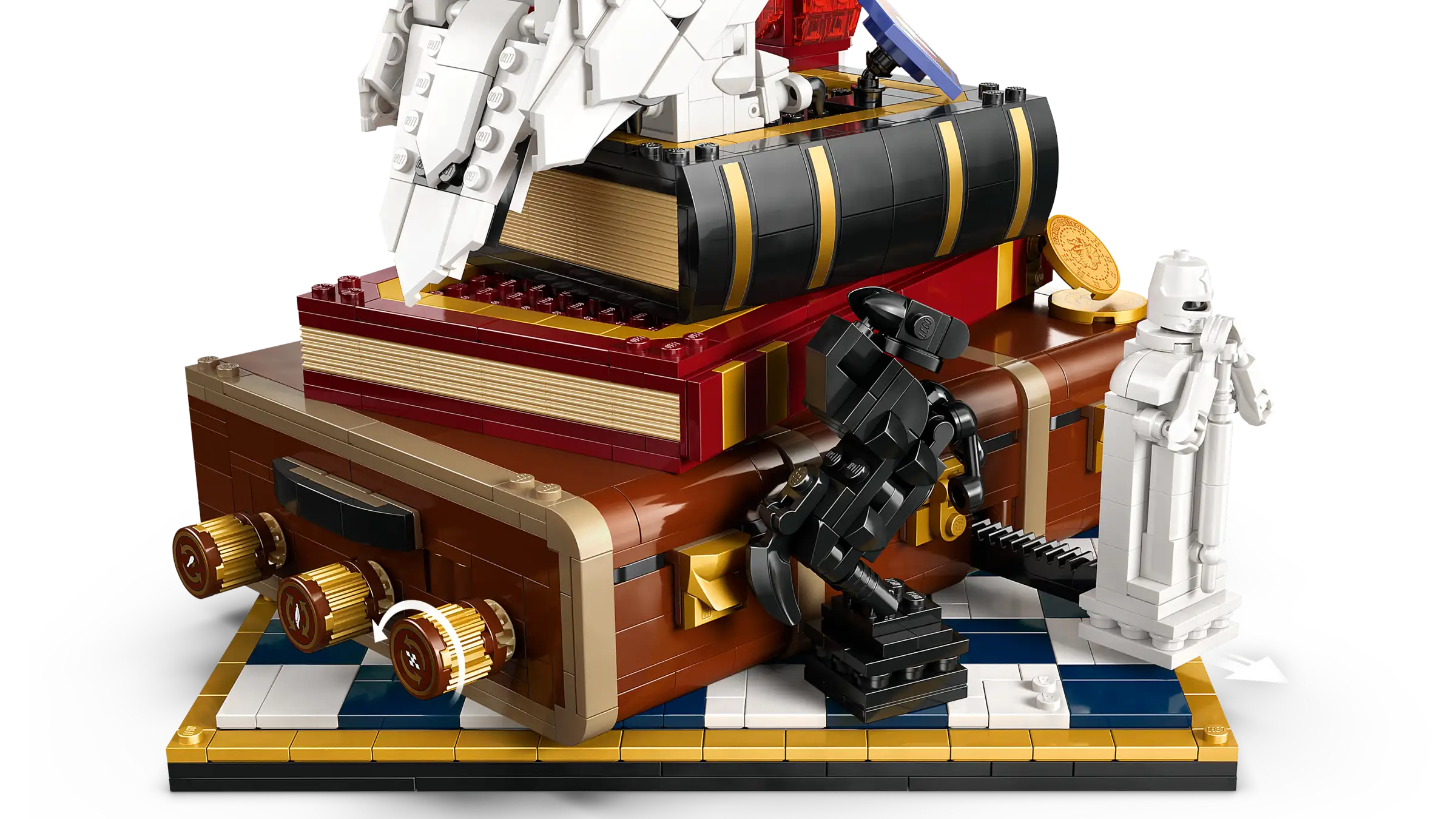 • ΔΙΑΣΚΕΔΑΣΤΙΚΕΣ ΛΕΙΤΟΥΡΓΙΕΣ – Περιστρέψτε τους 3 διακόπτες για να εκτοξεύσετε το πλάι από το μπαούλο του Harry Potter και να αποκαλύψετε μια μικρογραφική σκηνή από την ταινία· γυρίστε το κεφάλι της Hedwig· ή μετακινήστε τη Βασίλισσα στη σκακιέρα μάγων