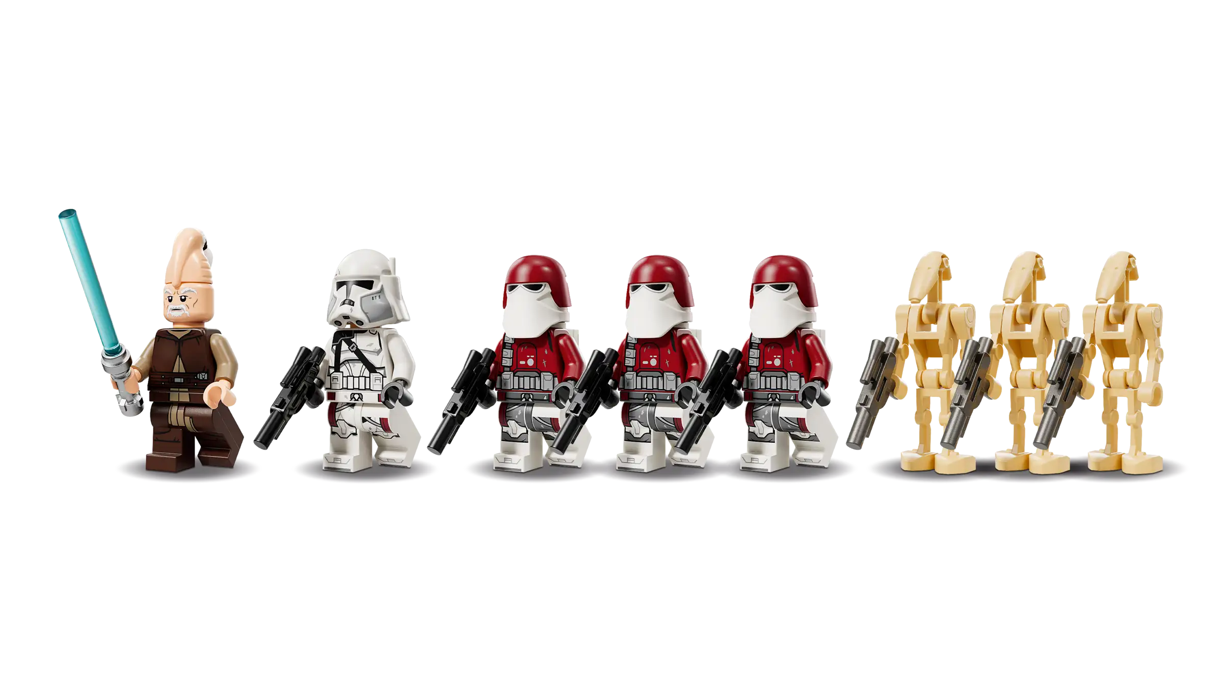 • 5 μινιφιγούρες LEGO® Star Wars™ – Ki-Adi-Mundi με Lightsaber™, Commander Bacara με blaster και 3 Galactic Marines με blasters, συν 3 φιγούρες Battle Droid LEGO με blasters για παιχνίδι μάχης.