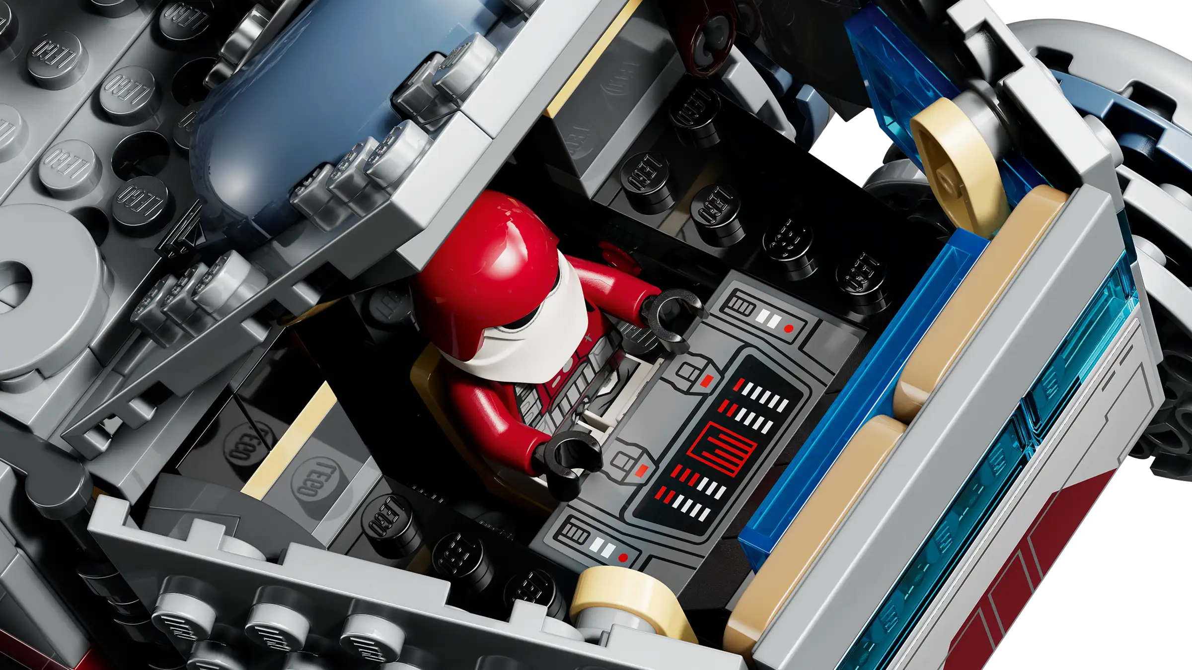 Το σετ περιλαμβάνει 5 μινιφιγούρες LEGO Star Wars: Ki-Adi-Mundi με Lightsaber™, Commander Bacara και 3 Galactic Marines, κάθε ένας με blasters, συν 3 φιγούρες Battle Droid LEGO με blasters. Τοποθετήστε τις μινιφιγούρες LEGO στα εμπρός και πίσω πιλοτήρια, στο κύριο διαμέρισμα (που έχει καθίσματα και ράφια όπλων), στο ανυψούμενο παρατηρητήριο και στον πίσω πύργο με όπλο με καρφίτσα.