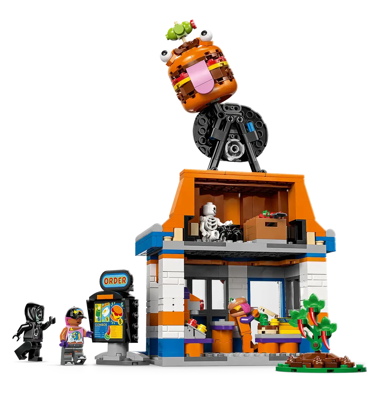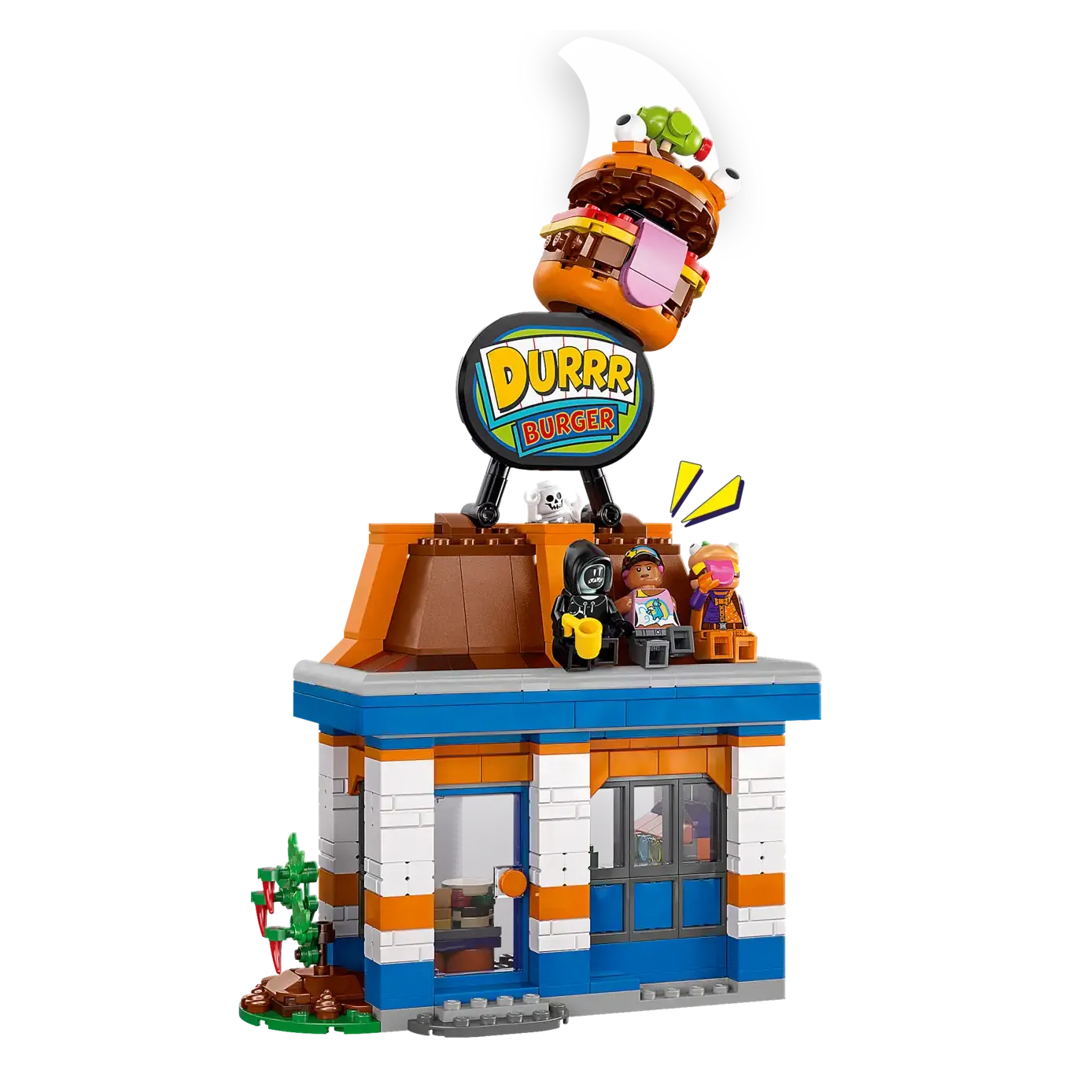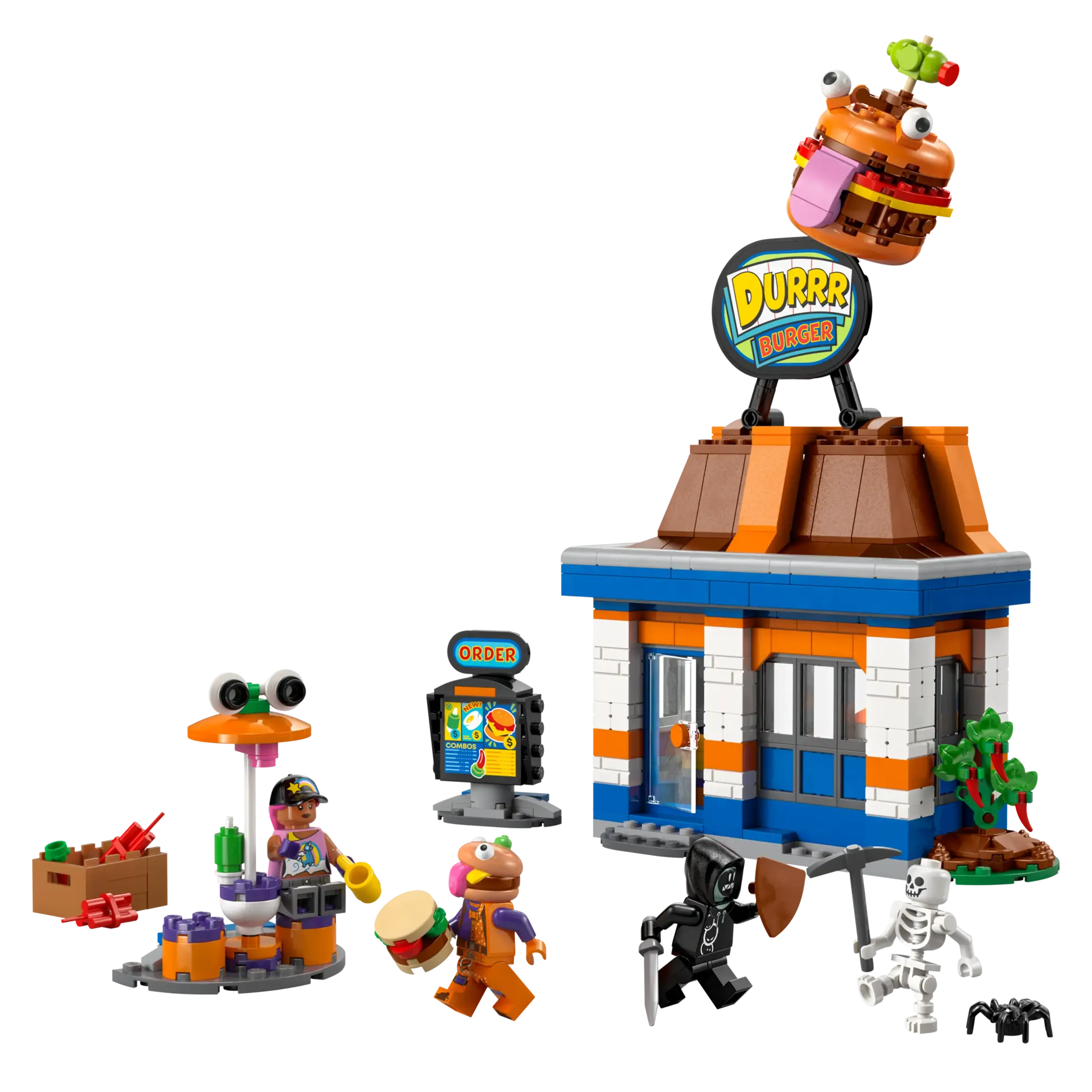 Οι gamers θα διασκεδάσουν συναρμολογώντας το μοντέλο εστιατορίου Durrr Burger, που είναι αρθρωτό για να ενθαρρύνει την προσαρμογή, πριν ανακαλύψουν όλες τις απολαυστικά διασκεδαστικές λεπτομέρειες. Στο εσωτερικό, τα παιδιά θα βρουν σταθμό καρυκευμάτων, μηχανή αναψυκτικών και ταμειακή μηχανή, ενώ έξω υπάρχει χώρος καθιστικού με κούπα και τηγανητό αυγό. Υπάρχει επίσης ένα αφαιρούμενο πατάρι με φιγούρα αράχνης και αρκετός χώρος για άλλα αξεσουάρ, όπως φτυάρι και δυναμίτη. Οι μινιφιγούρες Beach Bomber, Beef Boss, Grimey και skeleton ζωντανεύουν τη δράση και ενθαρρύνουν το δημιουργικό παιχνίδι ρόλων.