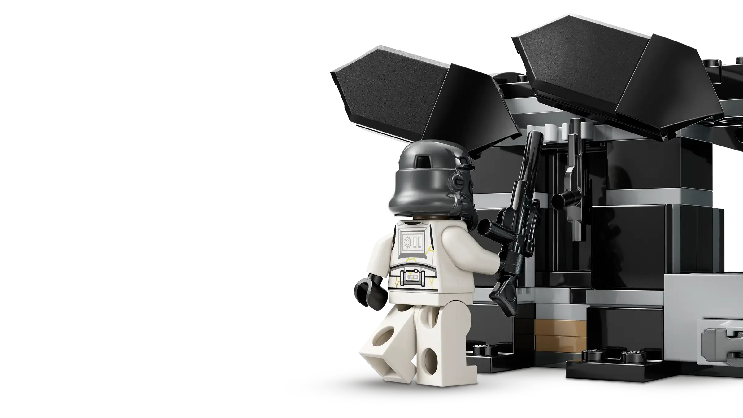 • Αποθηκεύστε τους blasters LEGO® Star Wars™ – Κρεμάστε τα blasters των στρατιωτών δίπλα τους στο πίσω μέρος του dropship, έτοιμα για φανταστικές μάχες