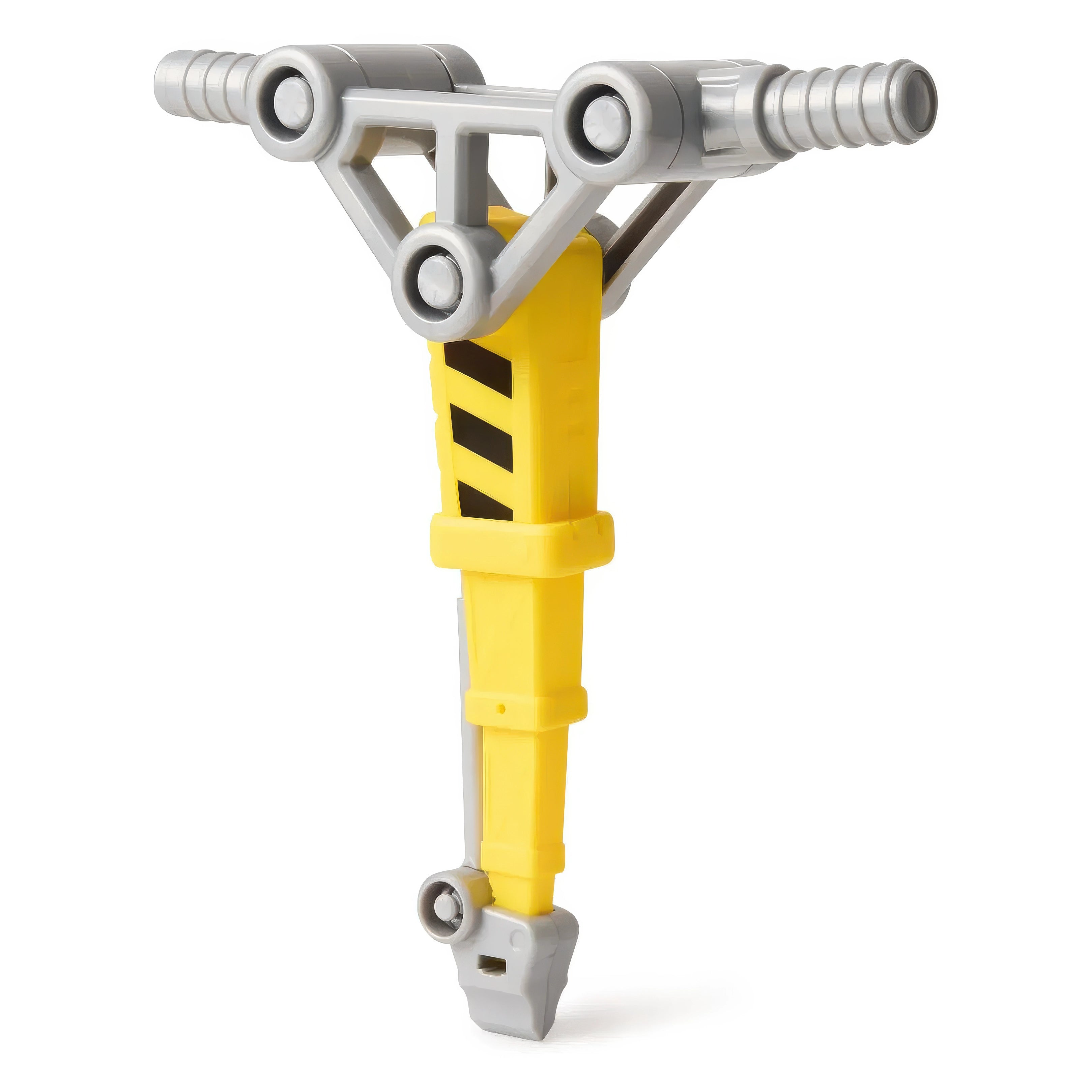 • Διαδραστικά Εργαλεία Κατασκευής: Δύο αποσπώμενα εργαλεία που προσαρμόζονται εύκολα και αφαιρούνται από το βραχίονα του γερανού, επιτρέποντας στα παιδιά να εναλλάσσονται μεταξύ λαβής γάντζου και δράσης σφυριού τρυπανιού