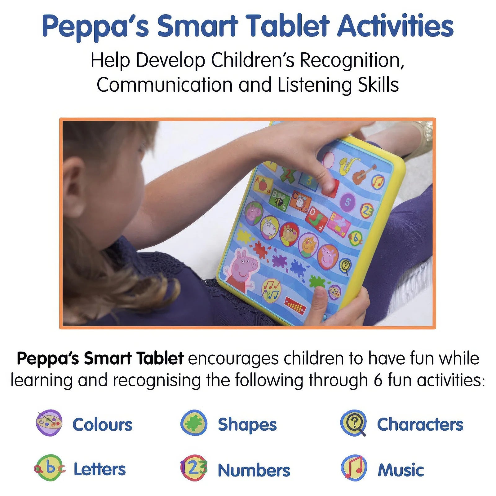 Διασκεδάστε και μάθετε με τις 6 δραστηριότητες στο Έξυπνο Tablet. Μάθετε για μουσικά όργανα, ήχους, χρώματα, αριθμούς & σχήματα καθώς και για τους φίλους της Peppa. Οθόνη αφής και διαδραστική λειτουργία κουίζ.