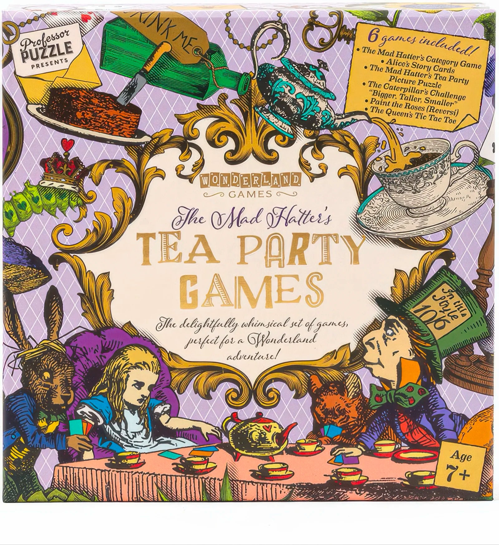 • ΠΕΡΙΛΑΜΒΑΝΟΝΤΑΙ 6 ΠΑΙΧΝΙΔΙΑ ΕΜΠΝΕΥΣΜΕΝΑ ΑΠΟ ΤΗΝ ALICE IN WONDERLAND - Το παιχνίδι κατηγορίας Mad Hatter, οι κάρτες ιστοριών της Alice, το Puzzle εικόνας του τσαγιού του Mad Hatter, η πρόκληση του Caterpillar «Μεγαλύτερο, Ψηλότερο, Μικρότερο», Βάψτε τα Τριαντάφυλλα (Reversi) και το Tic-tac-toe της Βασίλισσας.